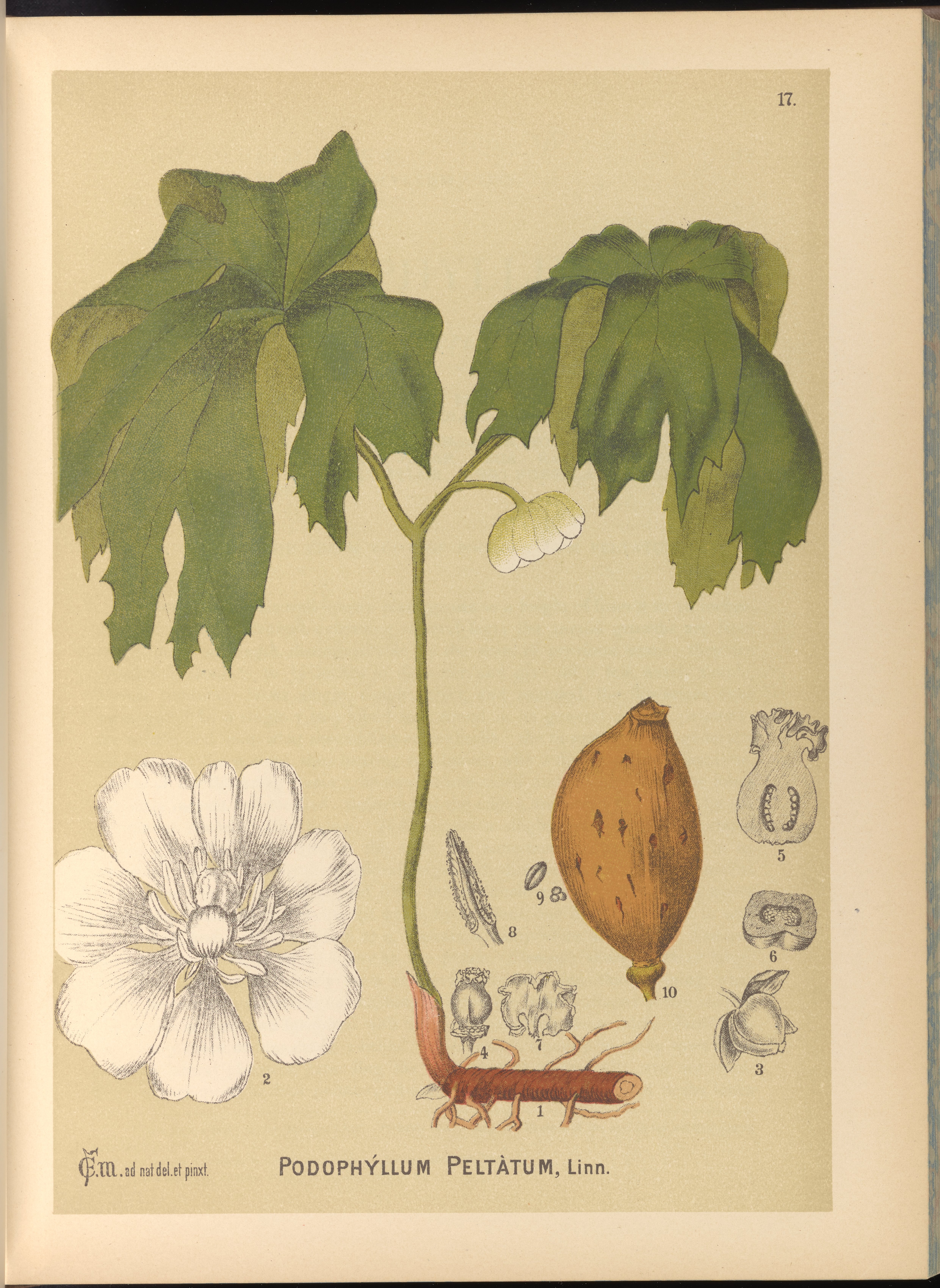 Small JPG1200 x 1665px — 296 KBLarge JPG2880 x 3995px — 1.8 MBFull-sized JPG4919 x 6823px — 5.0 MBOriginal fileTIFF — 4919 x 6823px — 96.0 MBFirst of two volumes detailing a variety of plant species and their medicinal properties. The works contain 180 chromolithographic plates, originally drawn and hand-colored by the author. The illustrations depict the characteristic portions of each plant, and include detailed enlargements of each plant's fruits, seeds, or dissected floral organs when applicable.