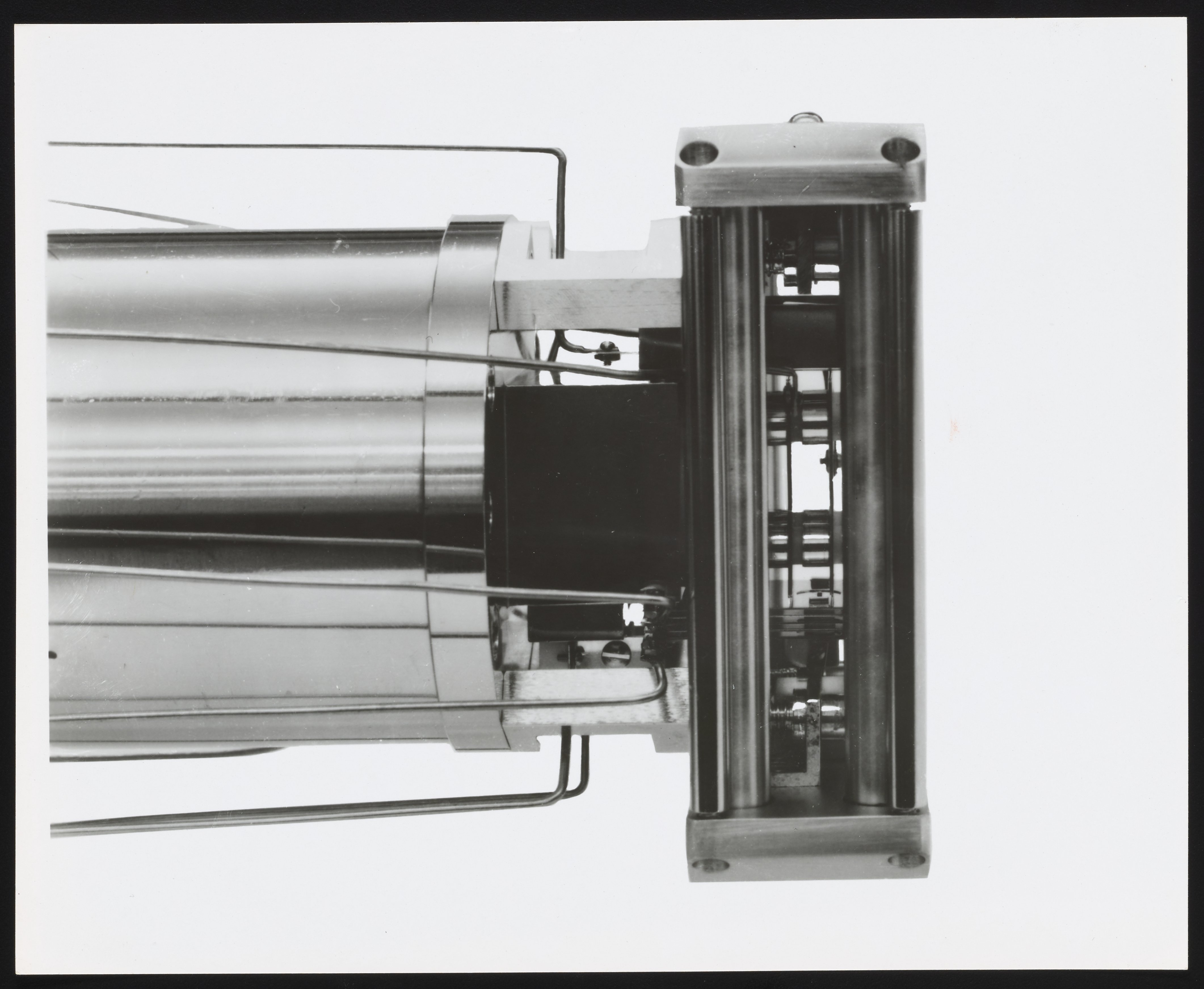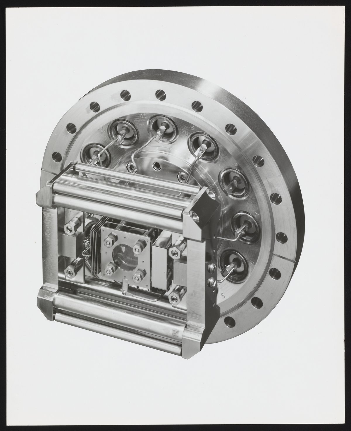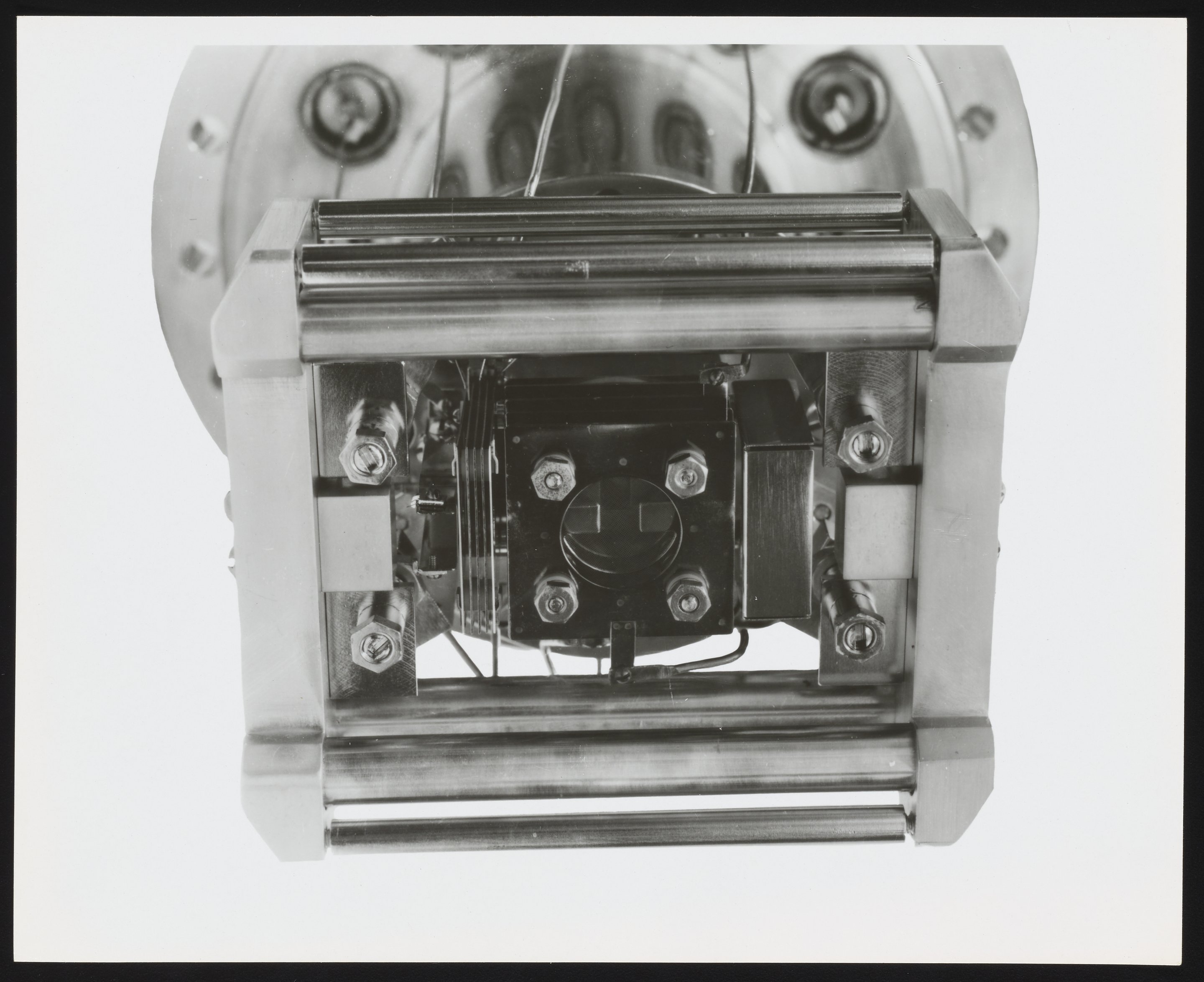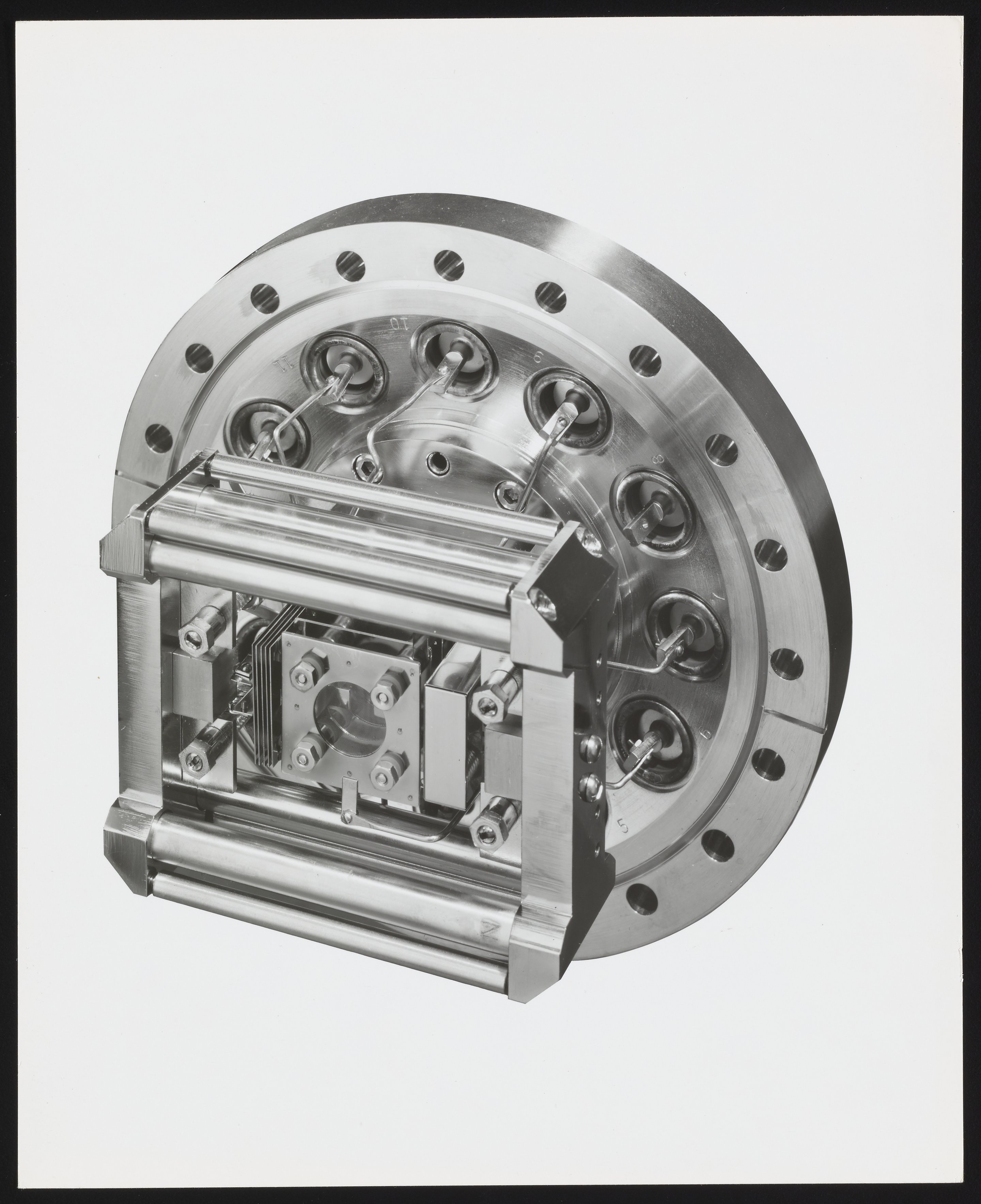 Small JPG1200 x 981px — 150 KBLarge JPG2880 x 2353px — 724 KBFull-sized JPG4244 x 3468px — 1.4 MBOriginal fileTIFF — 4244 x 3468px — 42.1 MBAssorted views of the ion source and oscilloscope designed for use with the Bendix Time-of-Flight Mass Spectrometer. One of four component parts of a mass spectrometer, the ion source produces a beam of particles characteristic of the sample material for qualitative and quantitative analysis. An oscilloscope is a laboratory instrument commonly used to display and analyze the waveform of electronic signals, in effect drawing a graph of the instantaneous signal voltage as a function of time. The Time-of-Flight Mass Spectrometer (TOFMS) was the flagship analytical instrument of the Bendix Corporation.
