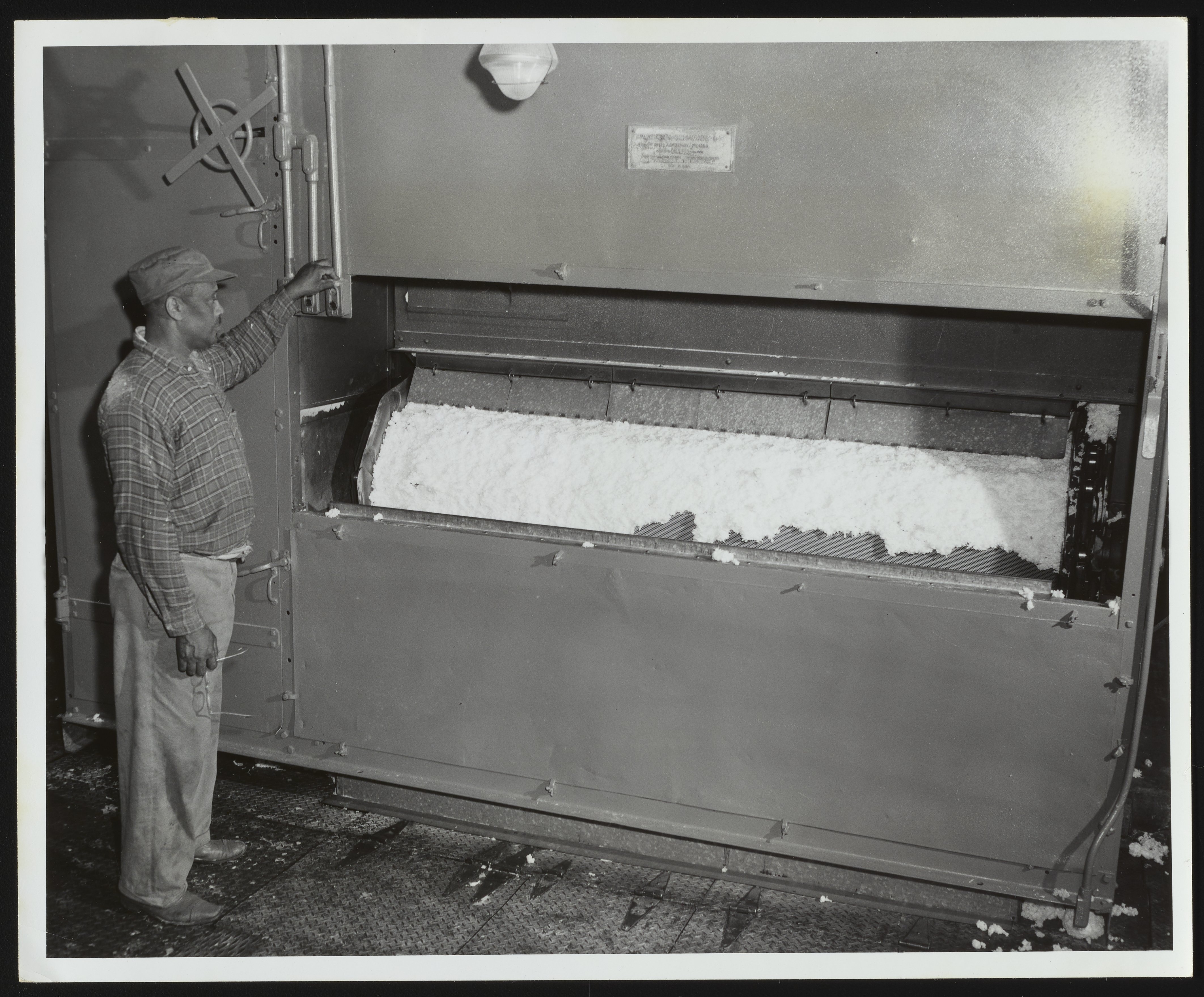 Hercules Incorporated. “Employee Operating Loose Pulp Dryer at Hercules Hopewell Plant,” 1957. Photographs from the Records & Ephemera of Hercules Incorporated, Box 1, Folder 37. Science History Institute. Philadelphia. https://digital.sciencehistory.org/works/k643b196k.