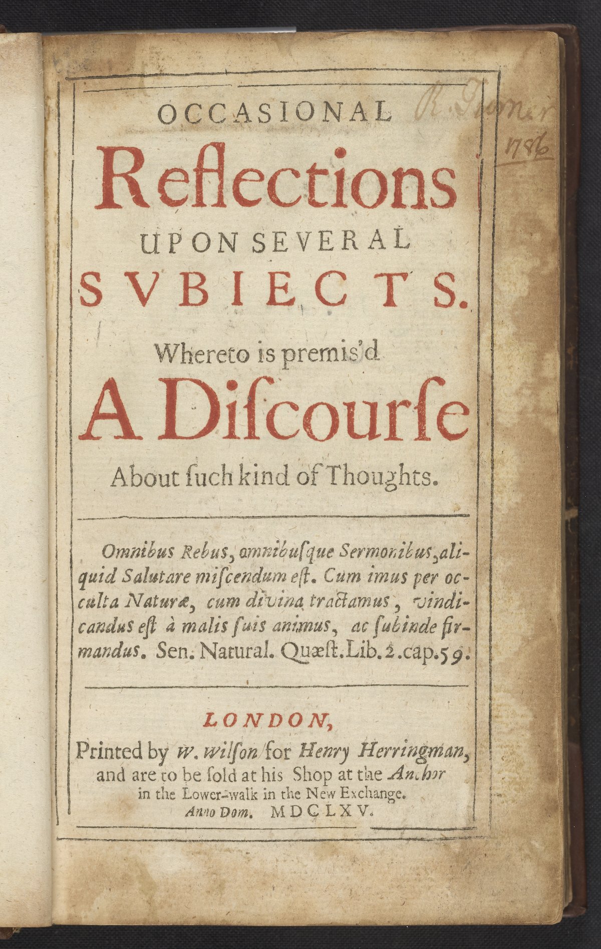 Occasional Reflections upon Several Subjects. Whereto is premis'd a Discourse About such kind of Thoughts.