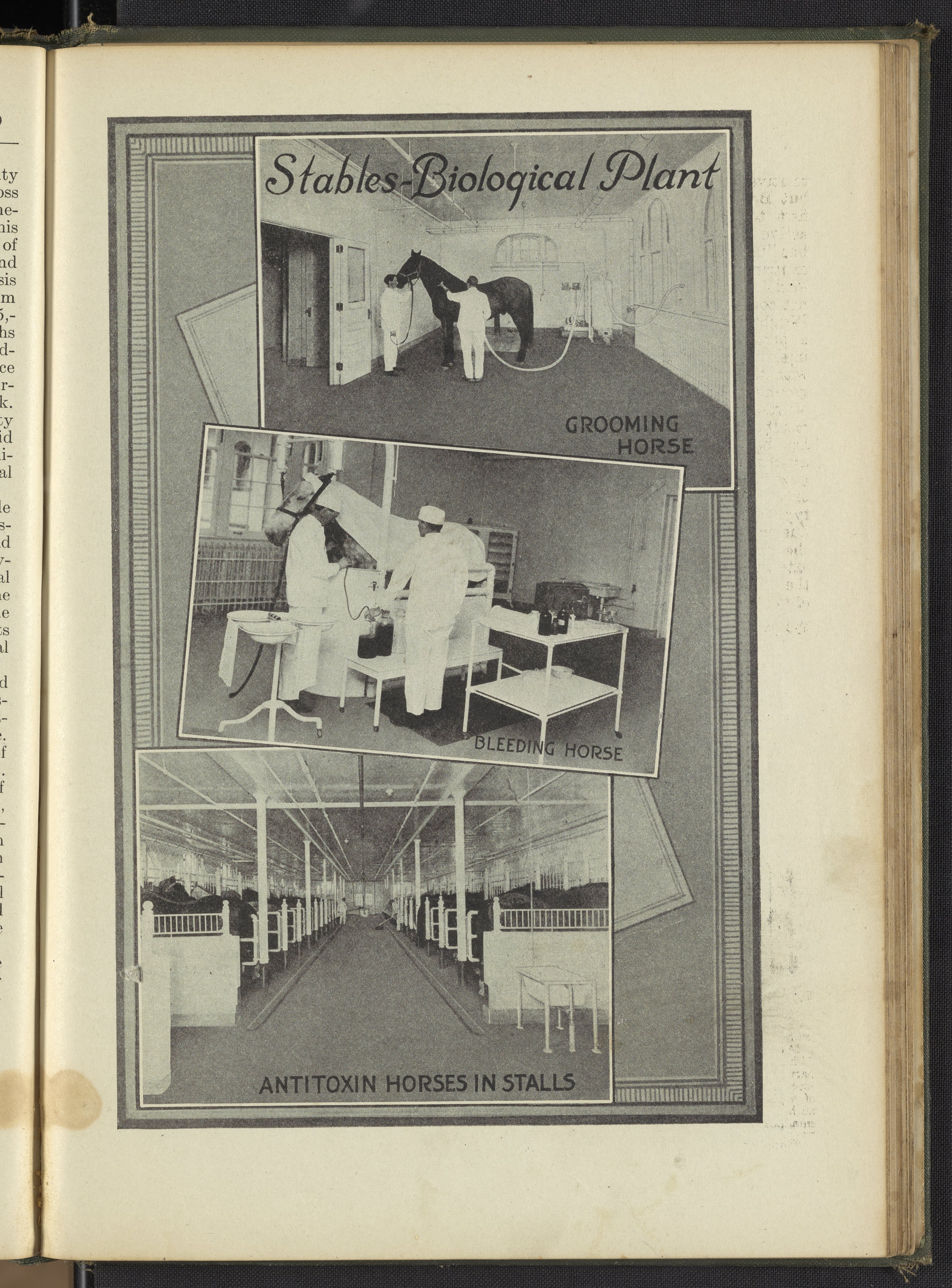 Eli Lilly and Company. “Stables at the Biological Plant.” Hand Book of Pharmacy and Therapeutics. Indianapolis, Indiana, circa 1919. https://digital.sciencehistory.org/works/k643b2484.