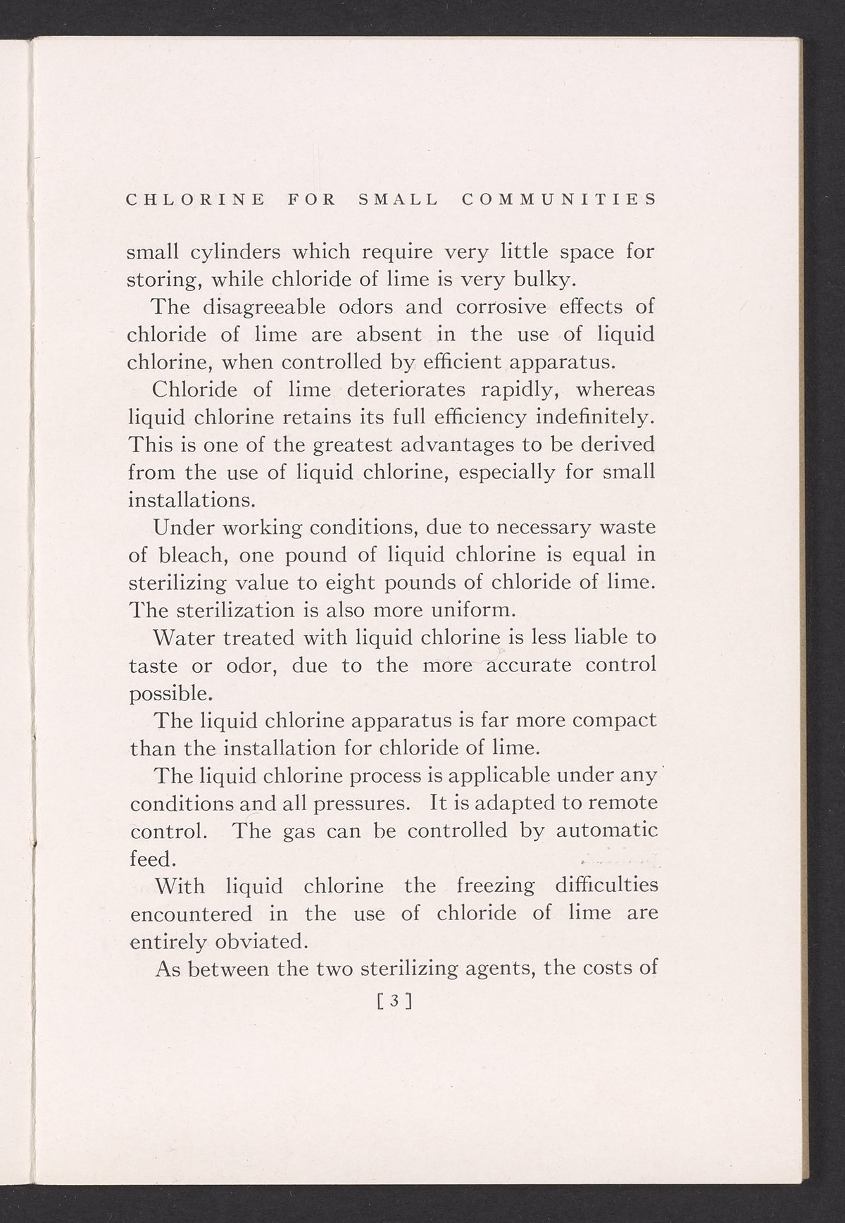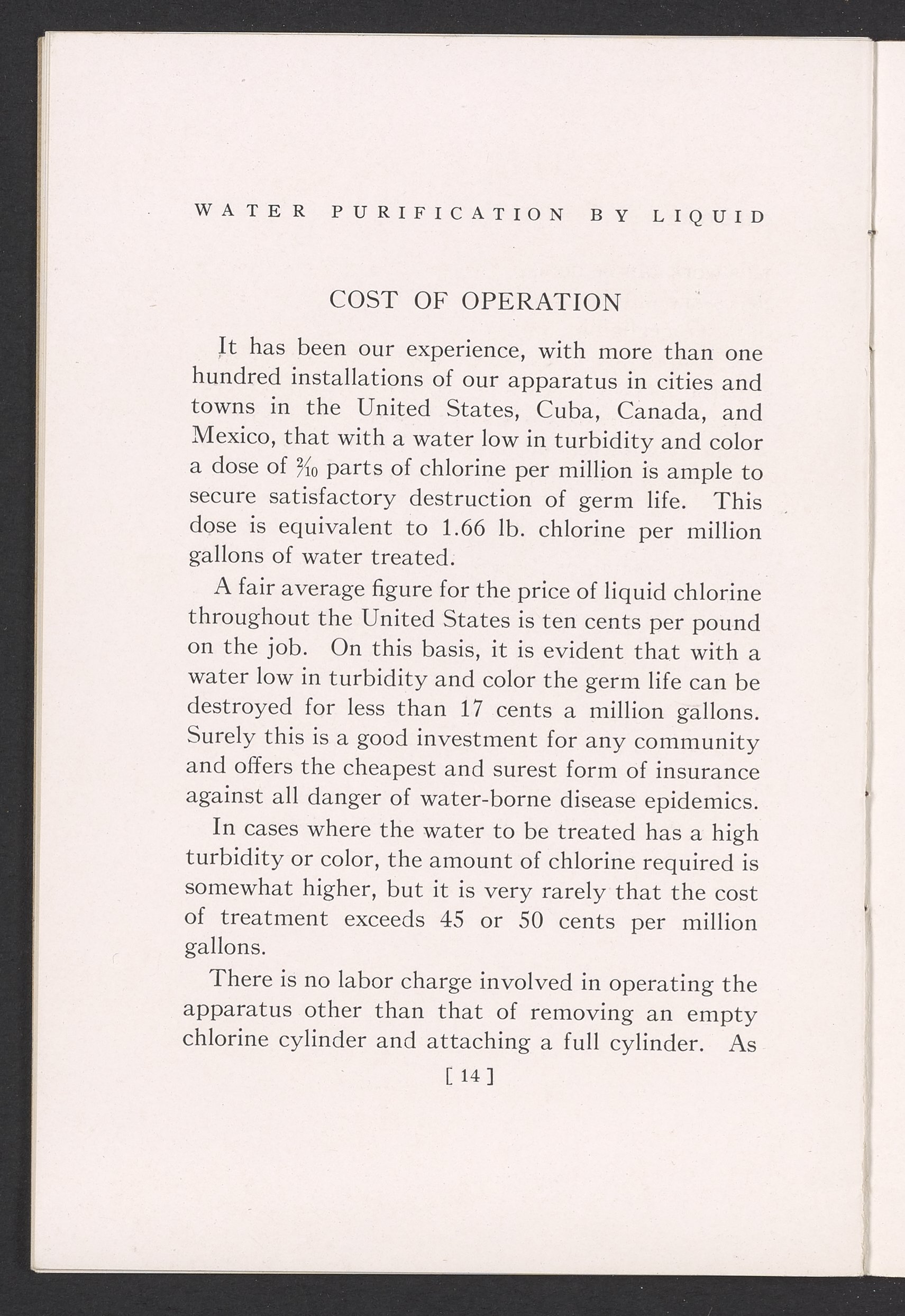 Water Purification by Liquid Chlorine for Small Communities