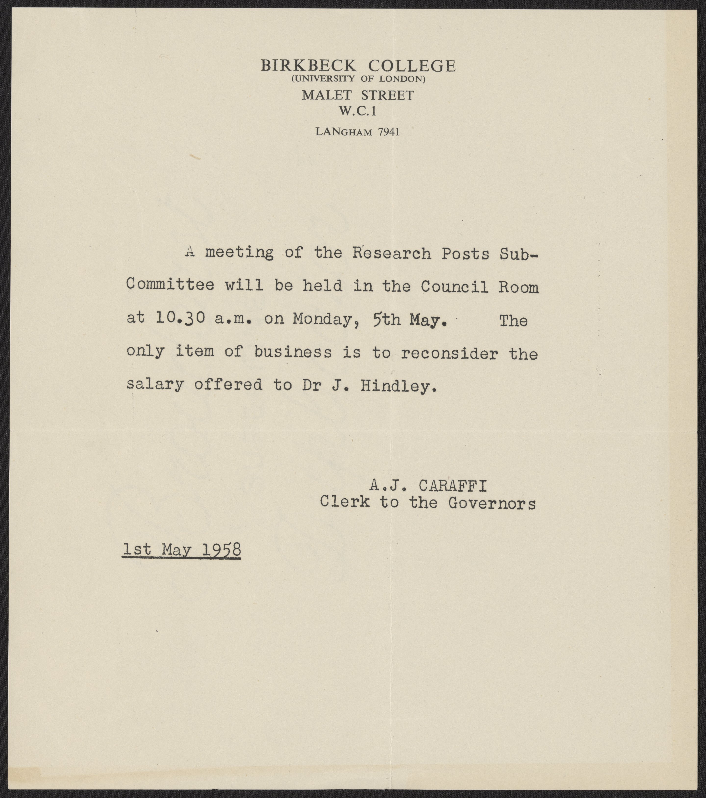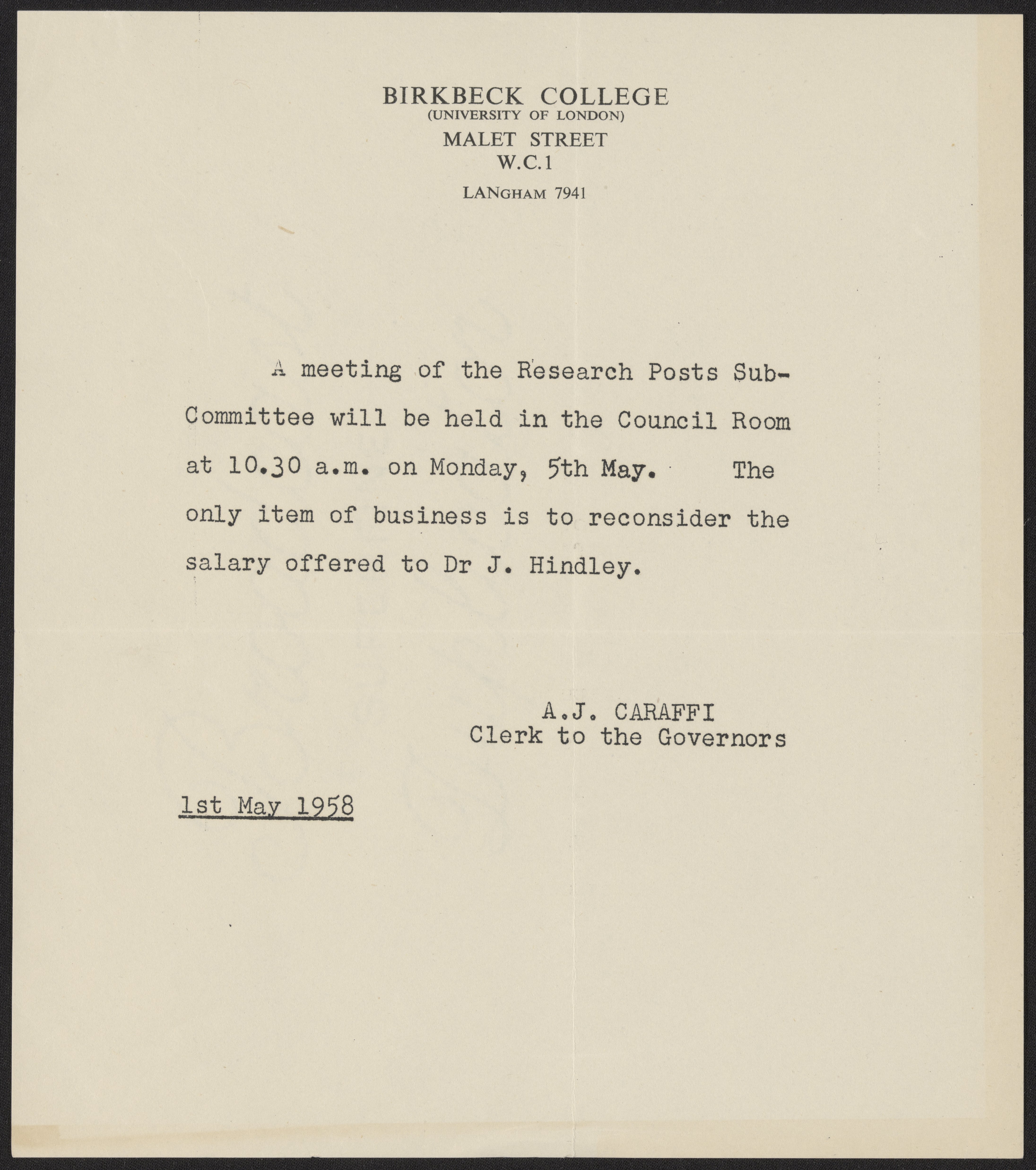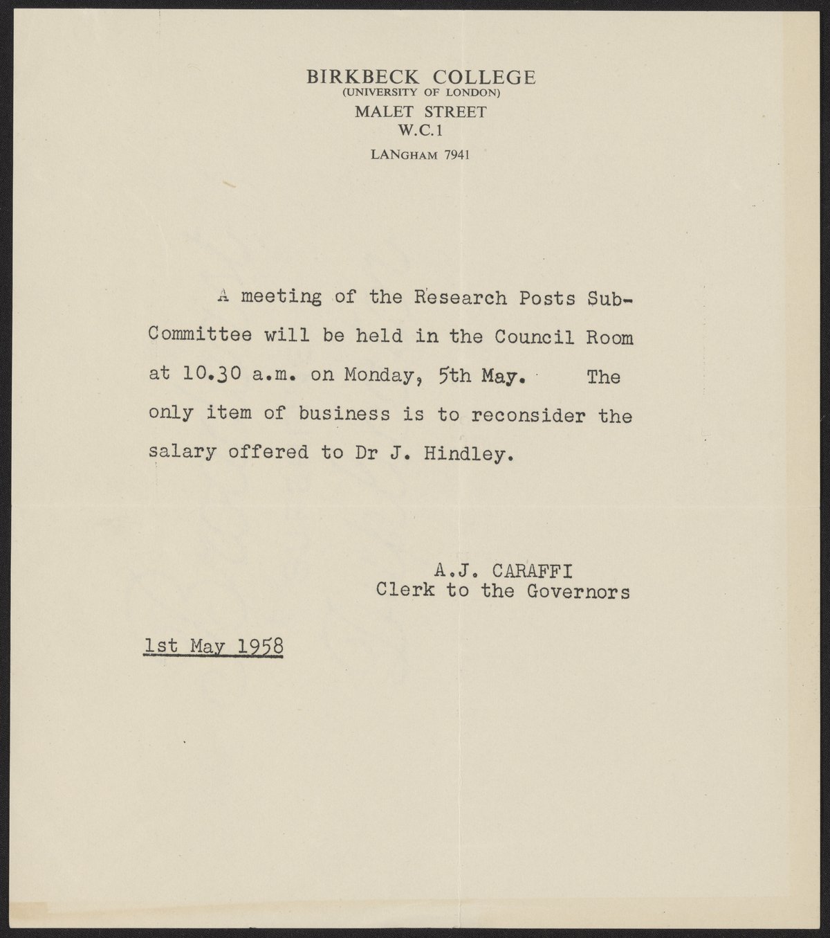 Caraffi, A. J., 1952–1979. “Memo from A. J. Caraffi, May 1, 1958,” May 1, 1958. History of Molecular Biology Collection, Box 17, Folder 12. Science History Institute. Philadelphia. https://digital.sciencehistory.org/works/k7i3b19.