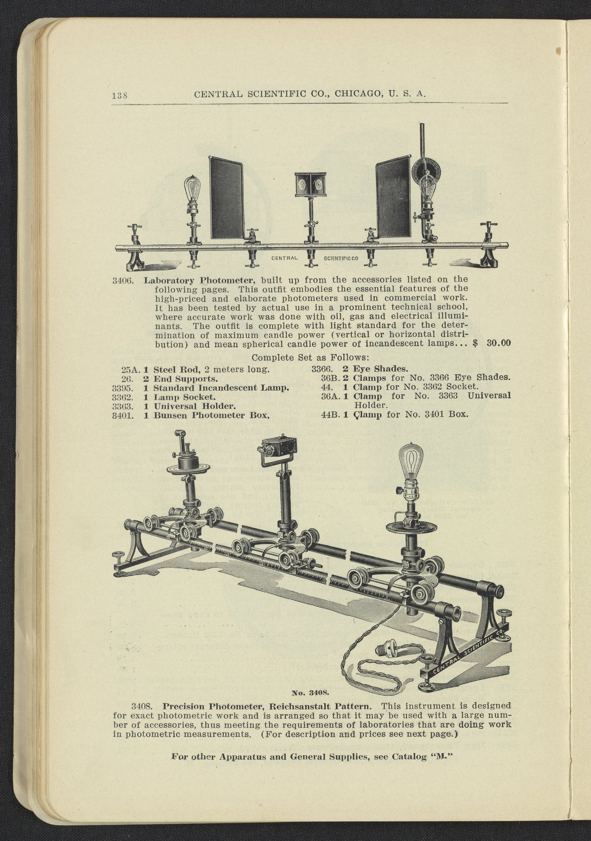 Central Scientific Company. “Precision Photometers.” Physical Apparatus for Universities and Colleges Manufactured and Imported by Central Scientific Co. Chicago, Illinois: Central Scientific Company, 1912. Q185.7 .C46 1912. Science History Institute. Philadelphia. https://digital.sciencehistory.org/works/ka67mzj.