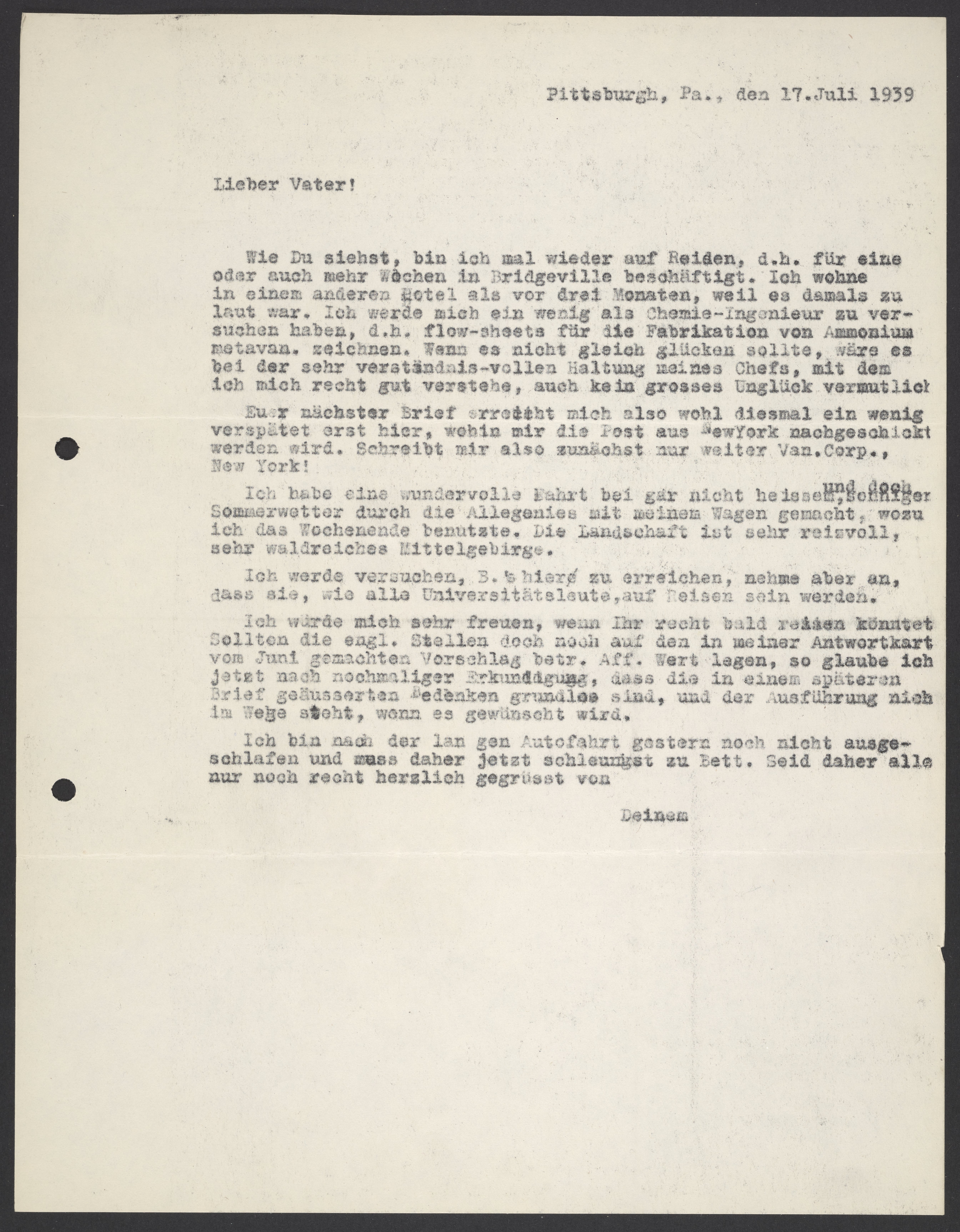 Letter from Max Bredig to Georg Bredig, July 17, 1939