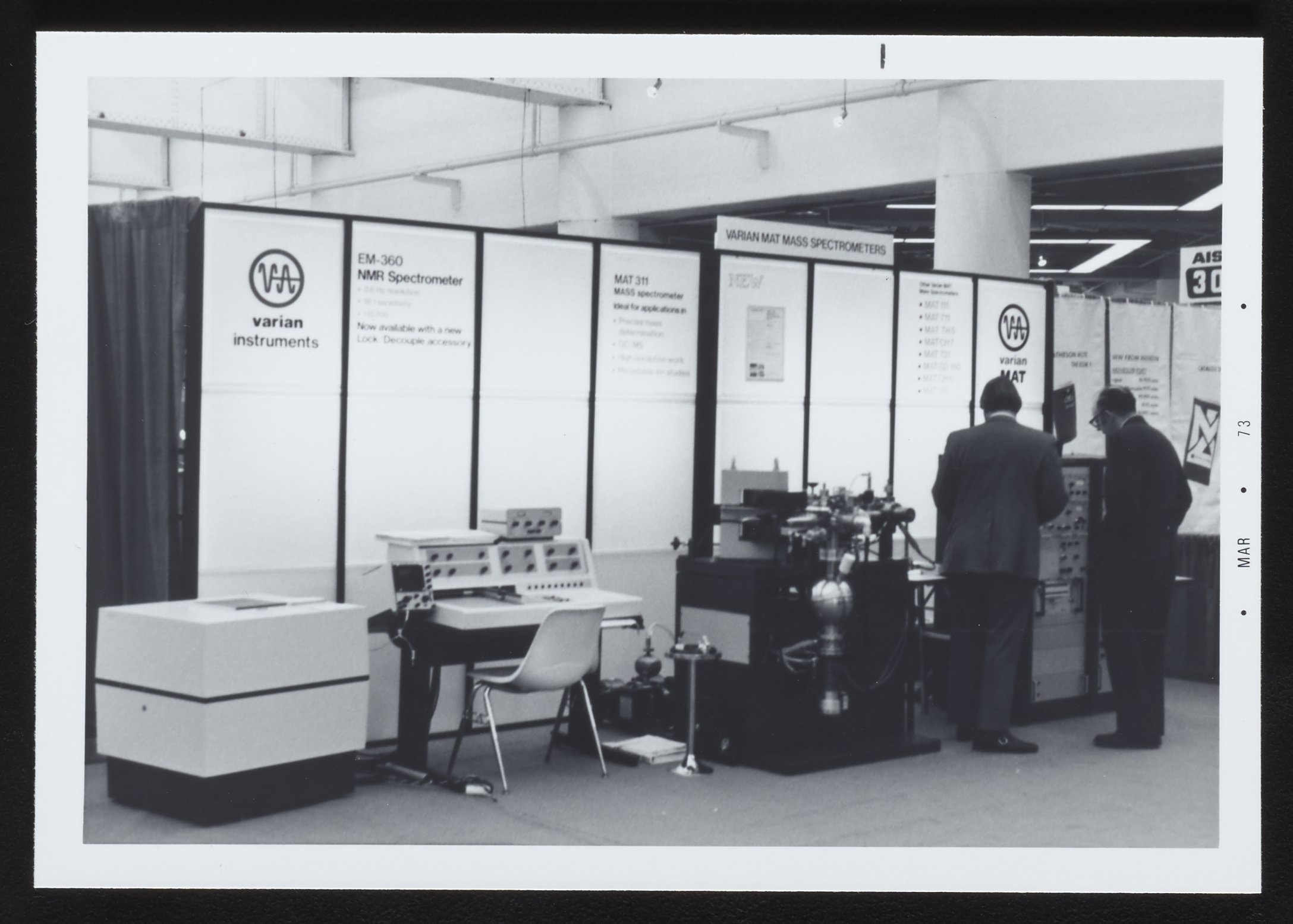 Bendix Corporation. “Varian Instruments Display Booth,” March 5, 1973. Photographs from the Bendix Time-of-Flight Mass Spectrometer Collection, Box 3. Science History Institute. Philadelphia. https://digital.sciencehistory.org/works/kh04dq22m.