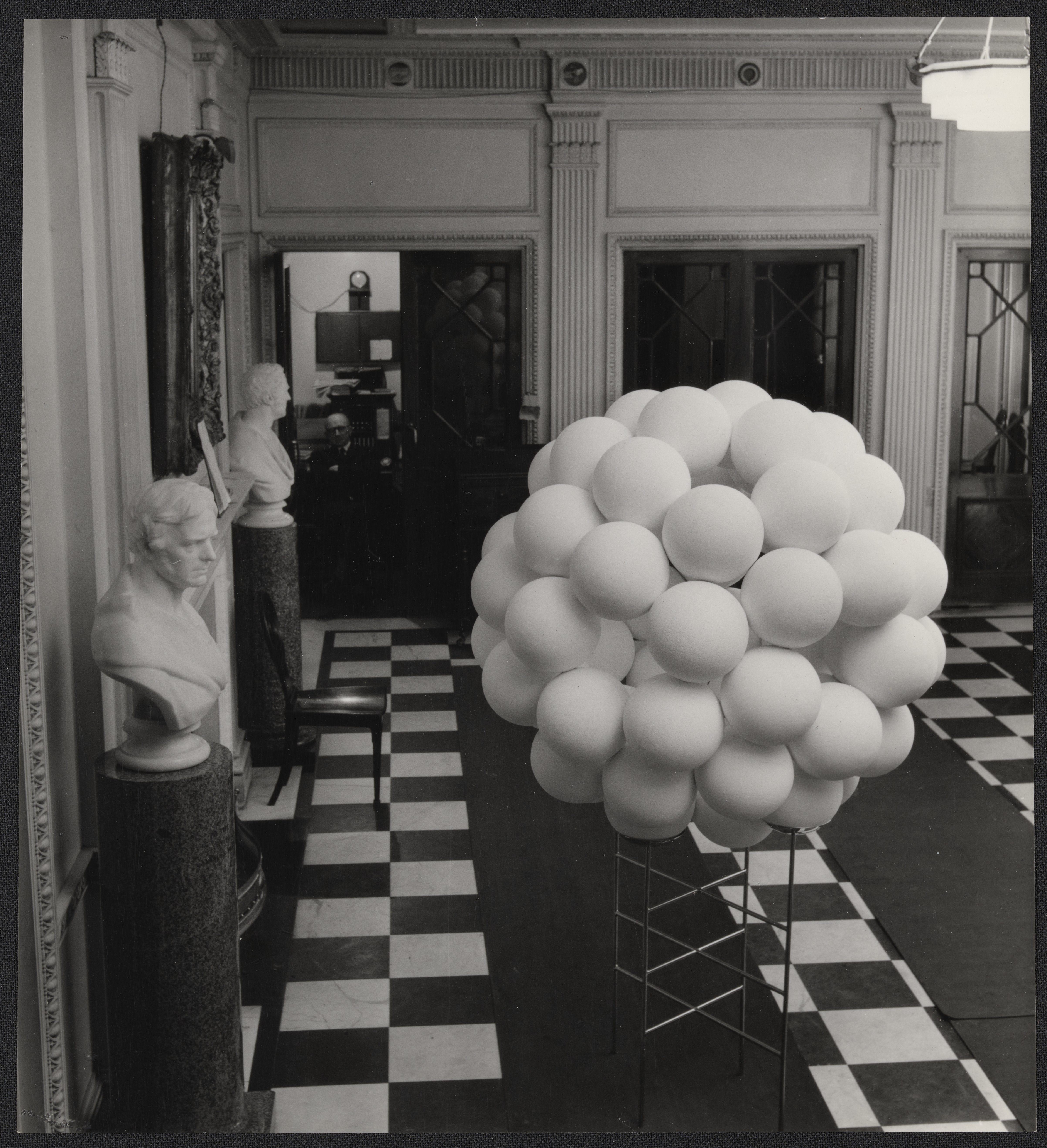 Small JPG1200 x 1315px — 206 KBLarge JPG2880 x 3157px — 1.0 MBFull-sized JPG4808 x 5270px — 2.6 MBOriginal fileTIFF — 4808 x 5270px — 72.5 MBBlack and white photograph of the Poliomyelitis structure model exhibited at the Brussels World's Fair in 1958. This structure was created by sculptor John Ernest (1922-1994).