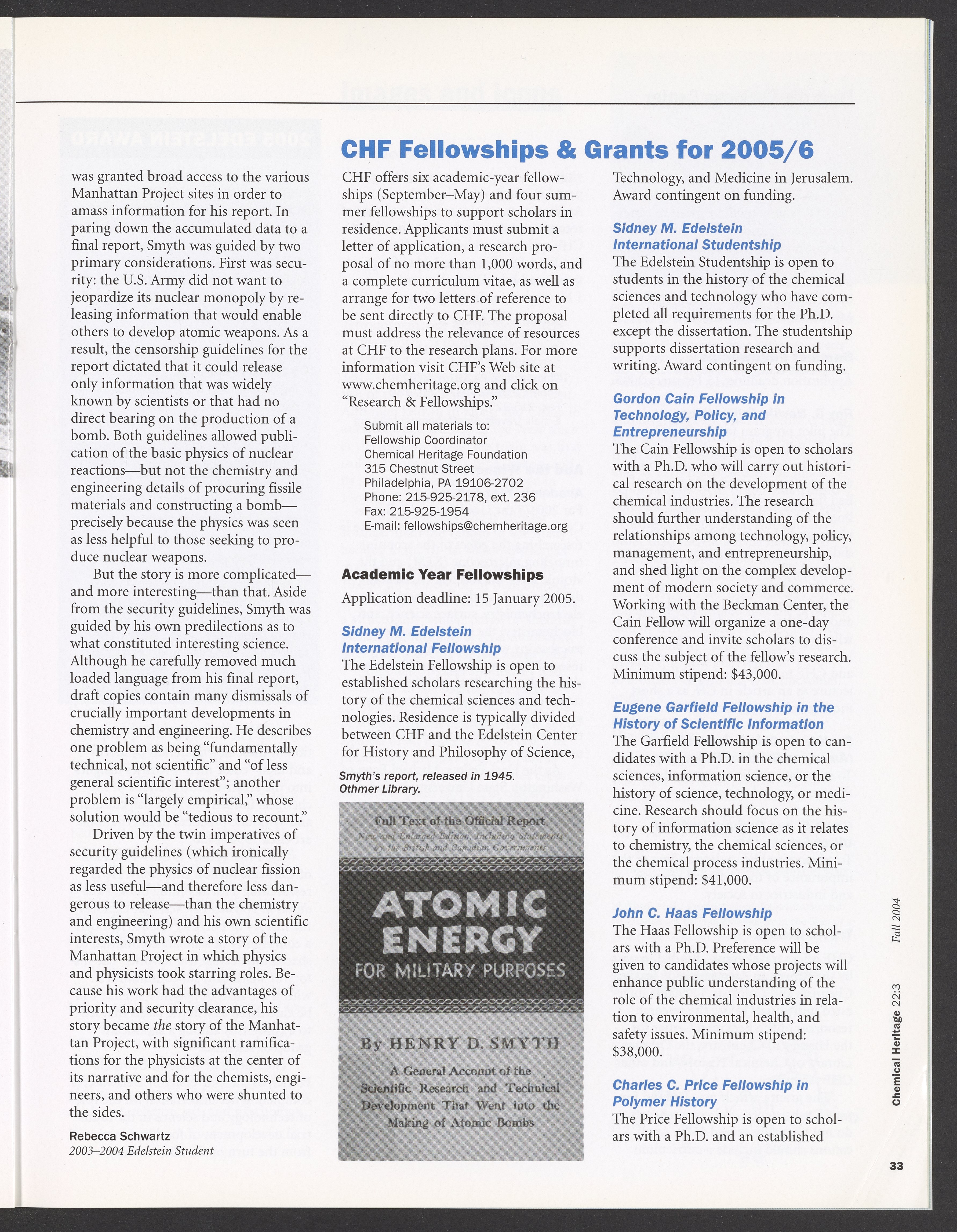 “Chemical Heritage, Volume 22 Number 3.” Philadelphia, Pennsylvania: Chemical Heritage Foundation, 2004. 099C001. Science History Institute. Philadelphia. https://digital.sciencehistory.org/works/kk6zz3v.