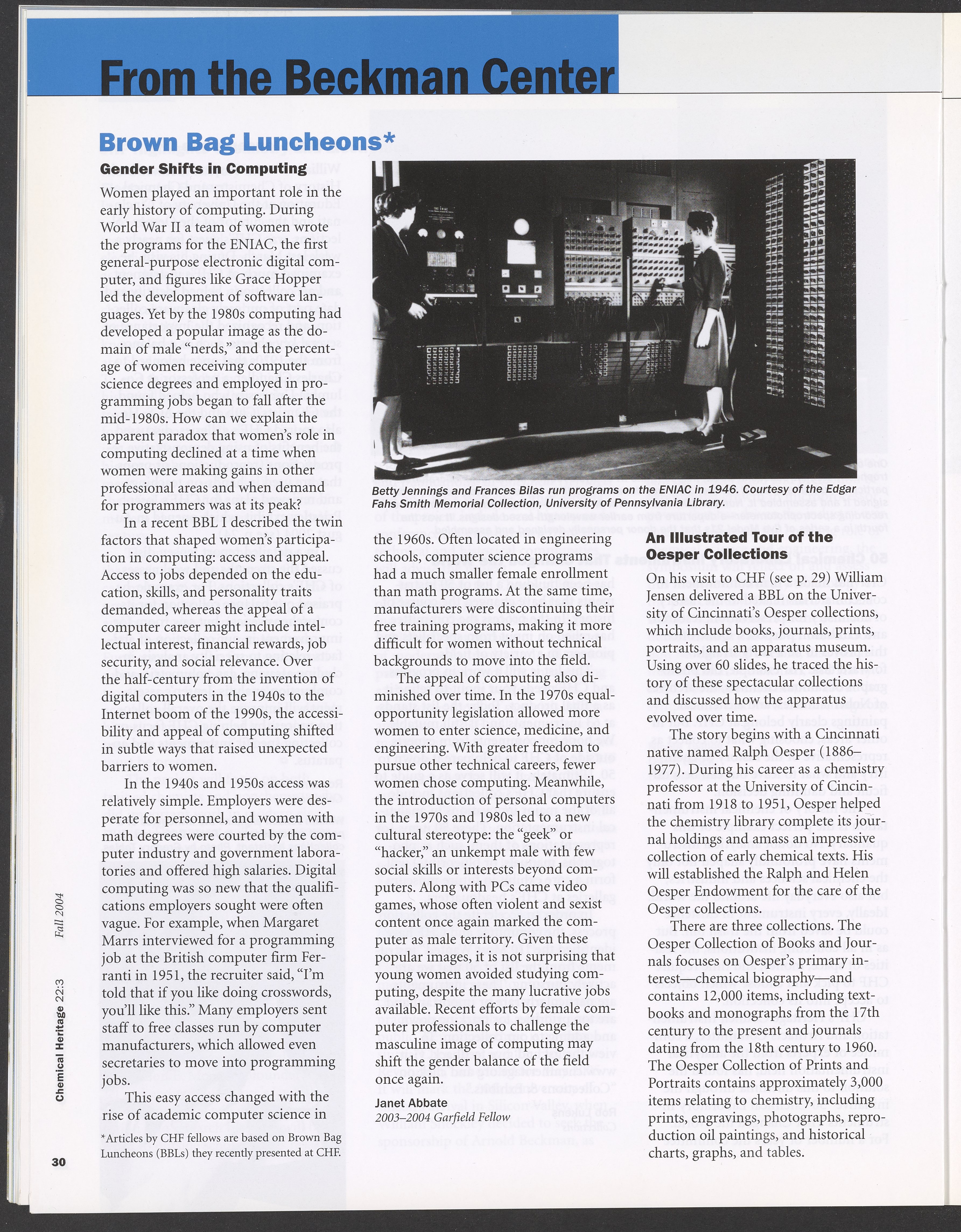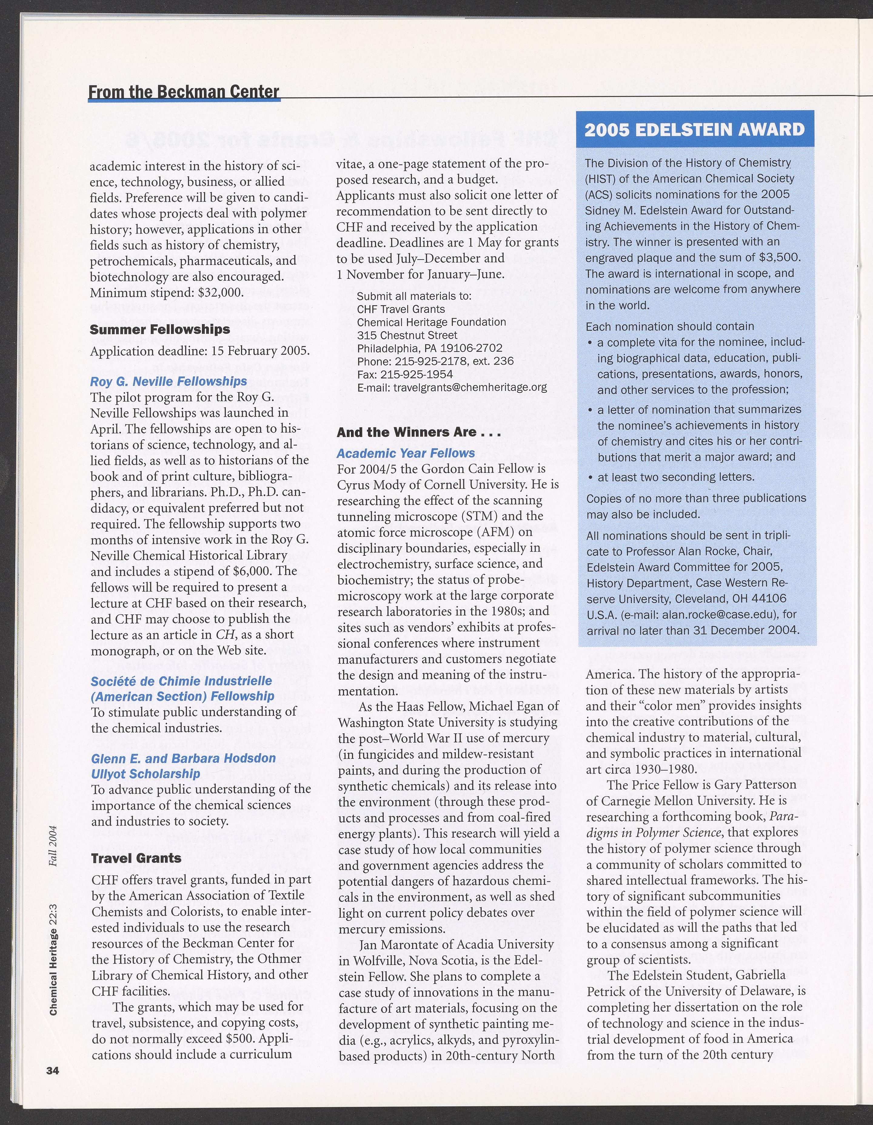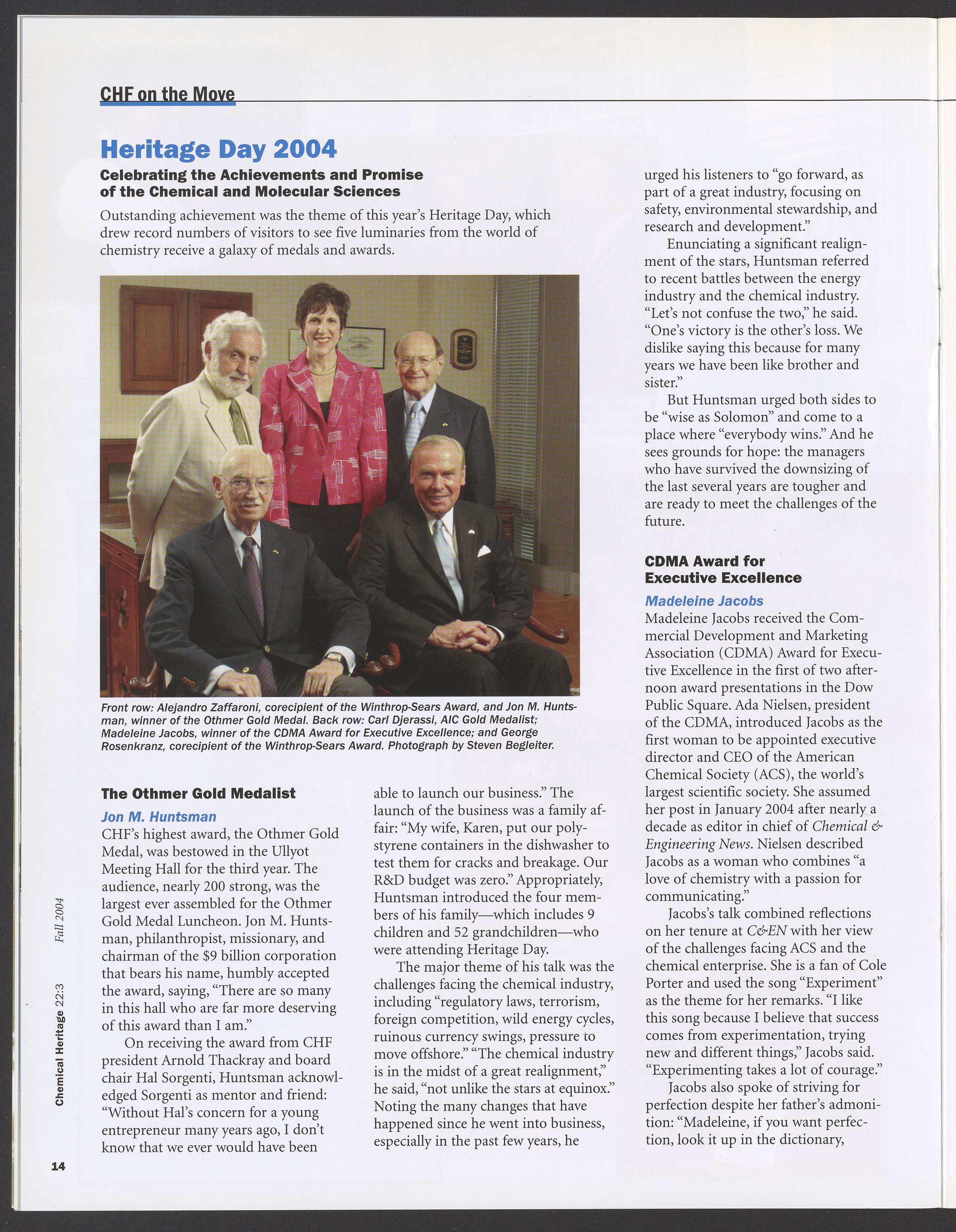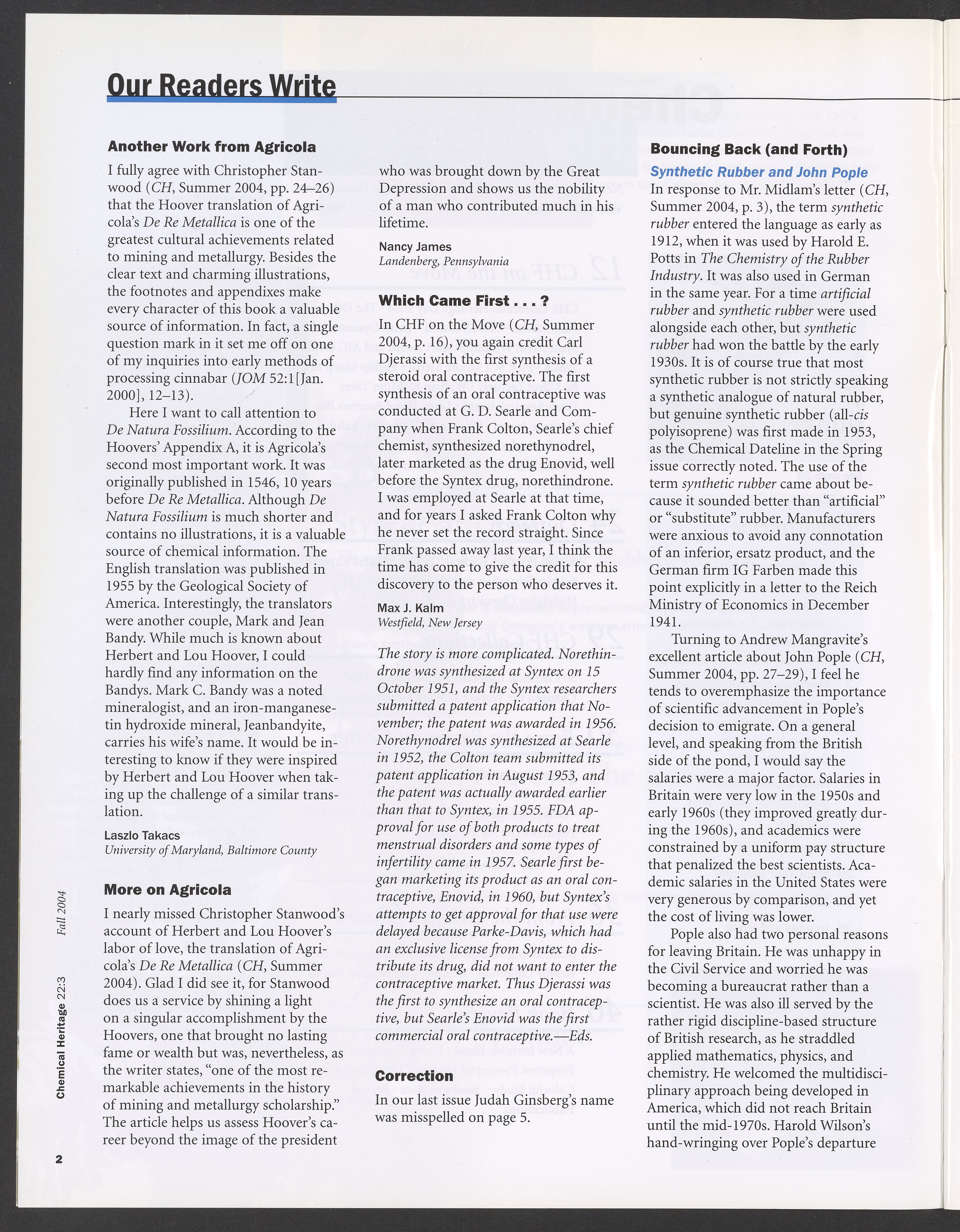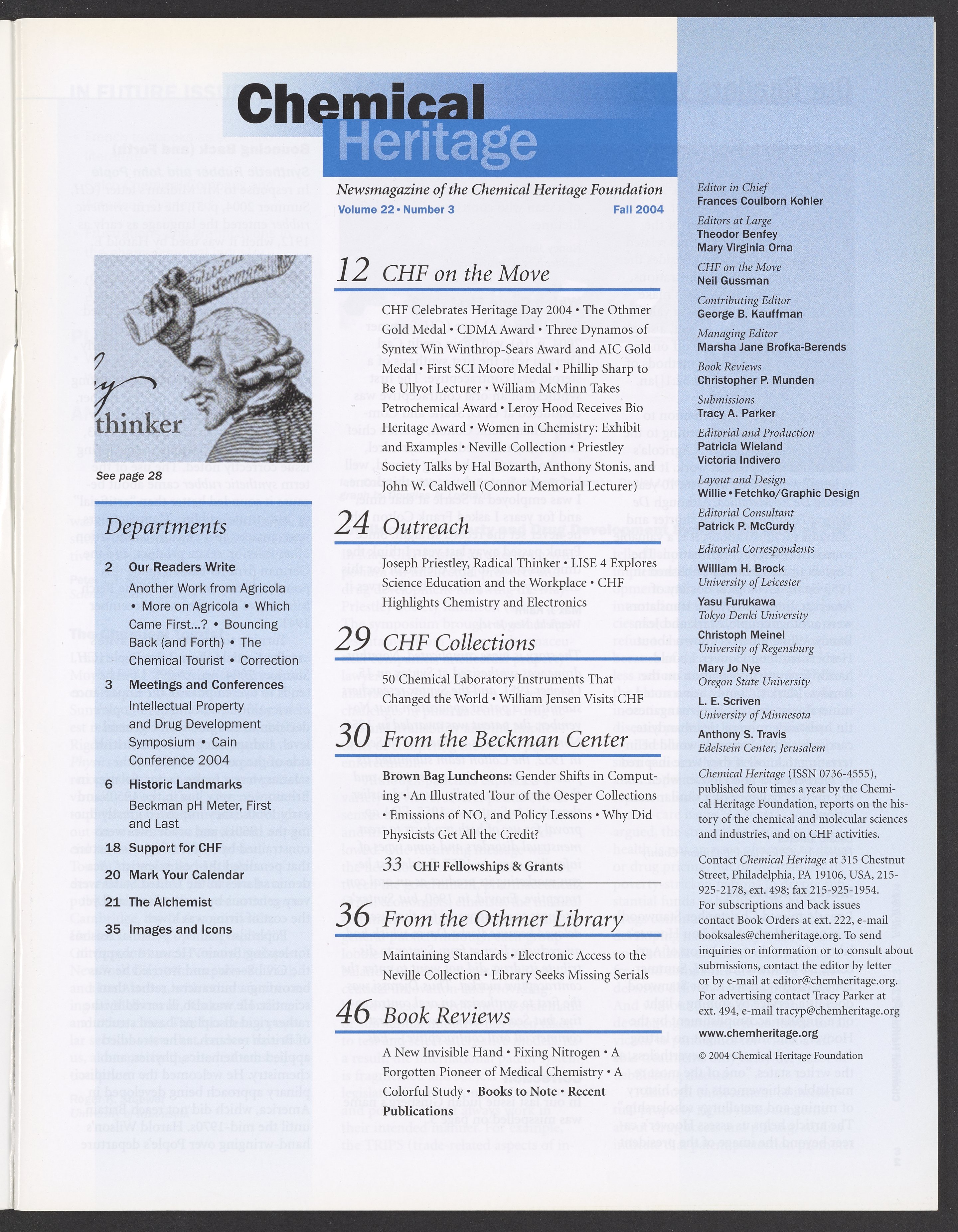 “Chemical Heritage, Volume 22 Number 3.” Philadelphia, Pennsylvania: Chemical Heritage Foundation, 2004. 099C001. Science History Institute. Philadelphia. https://digital.sciencehistory.org/works/kk6zz3v.