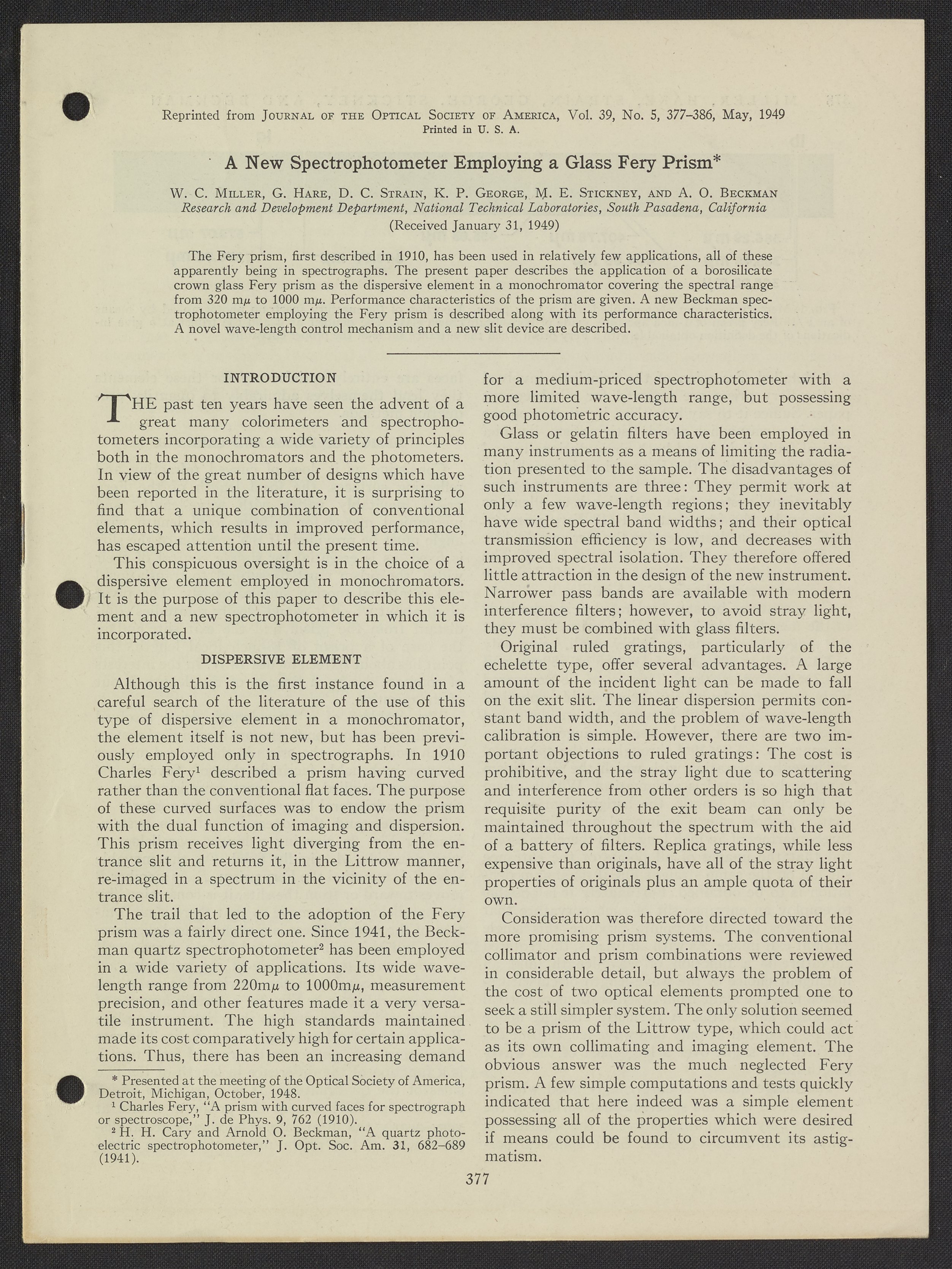 A New Spectrophotometer Employing a Glass Fery Prism