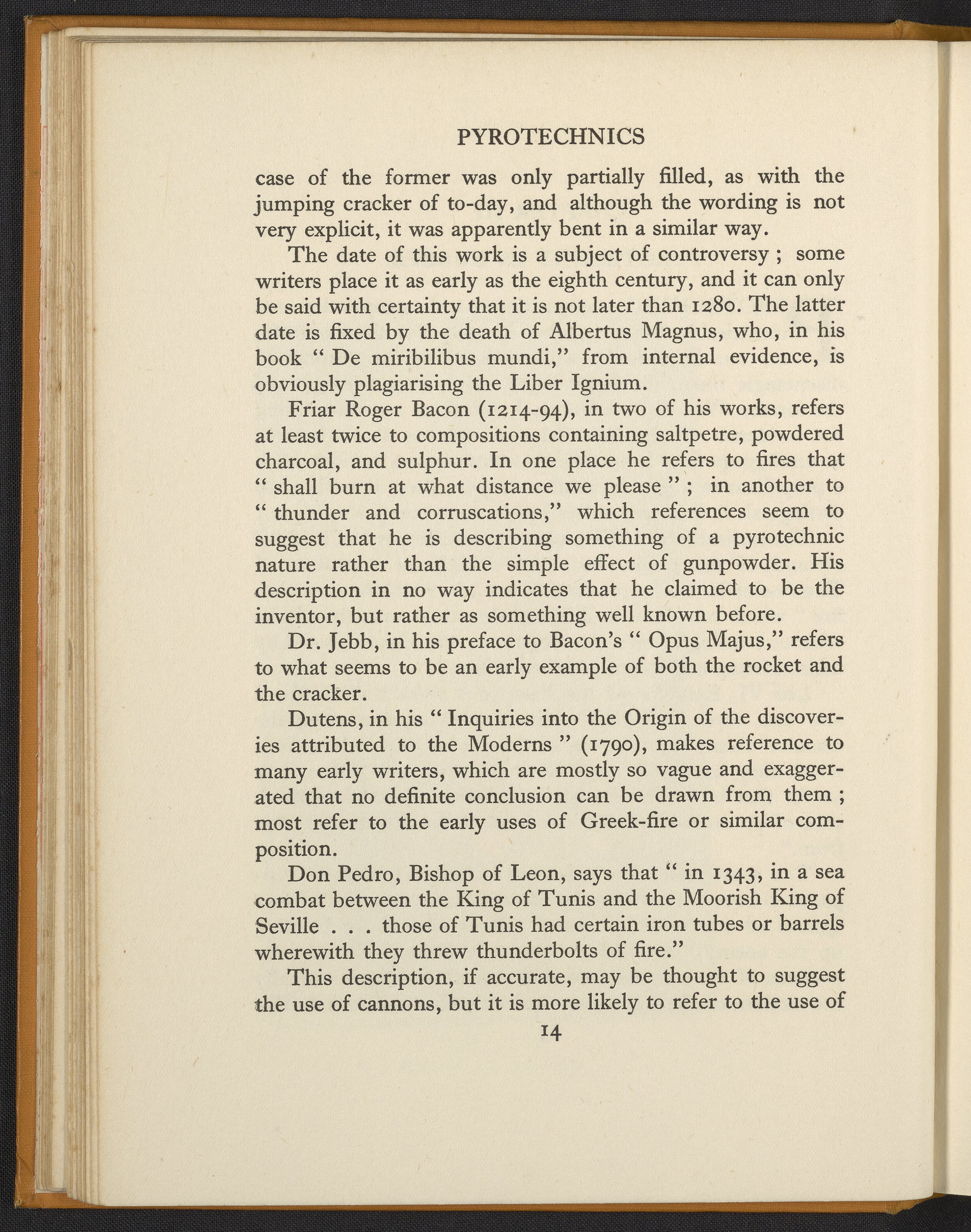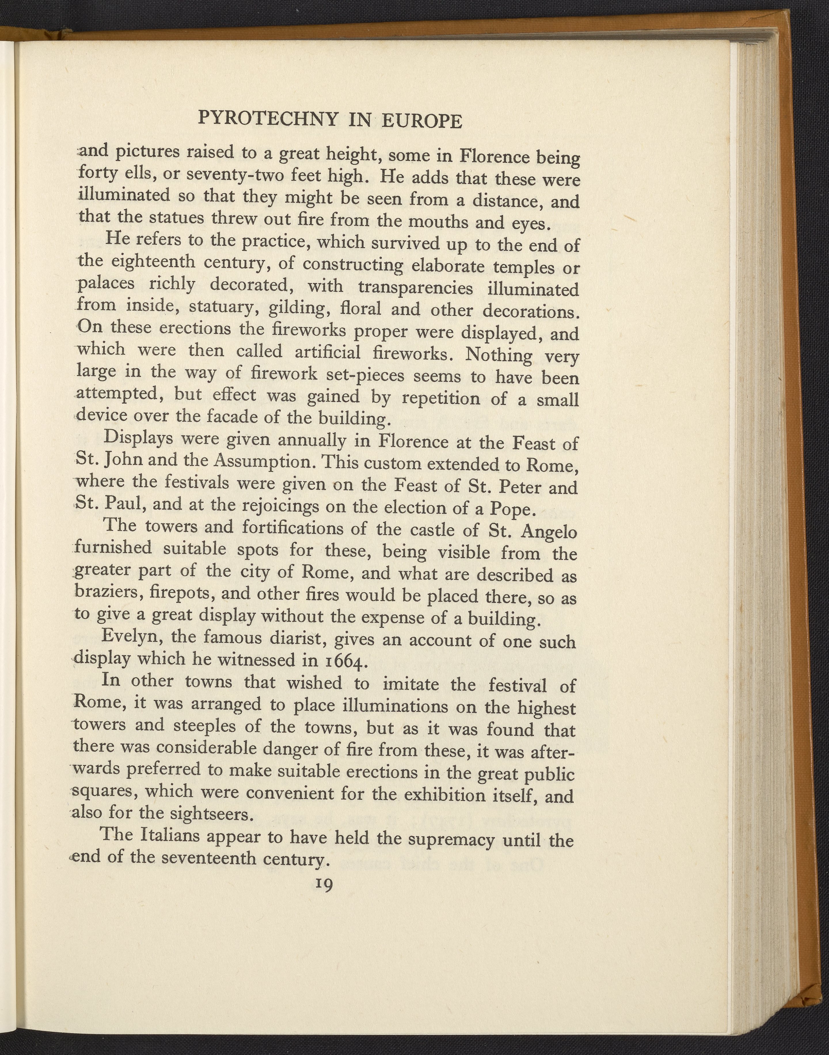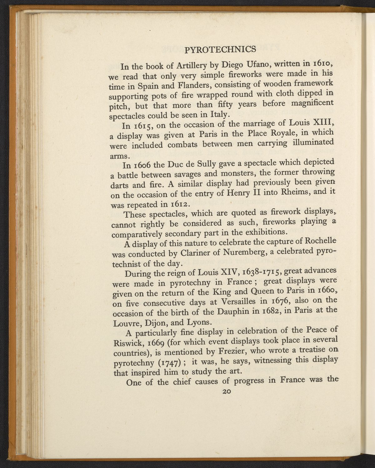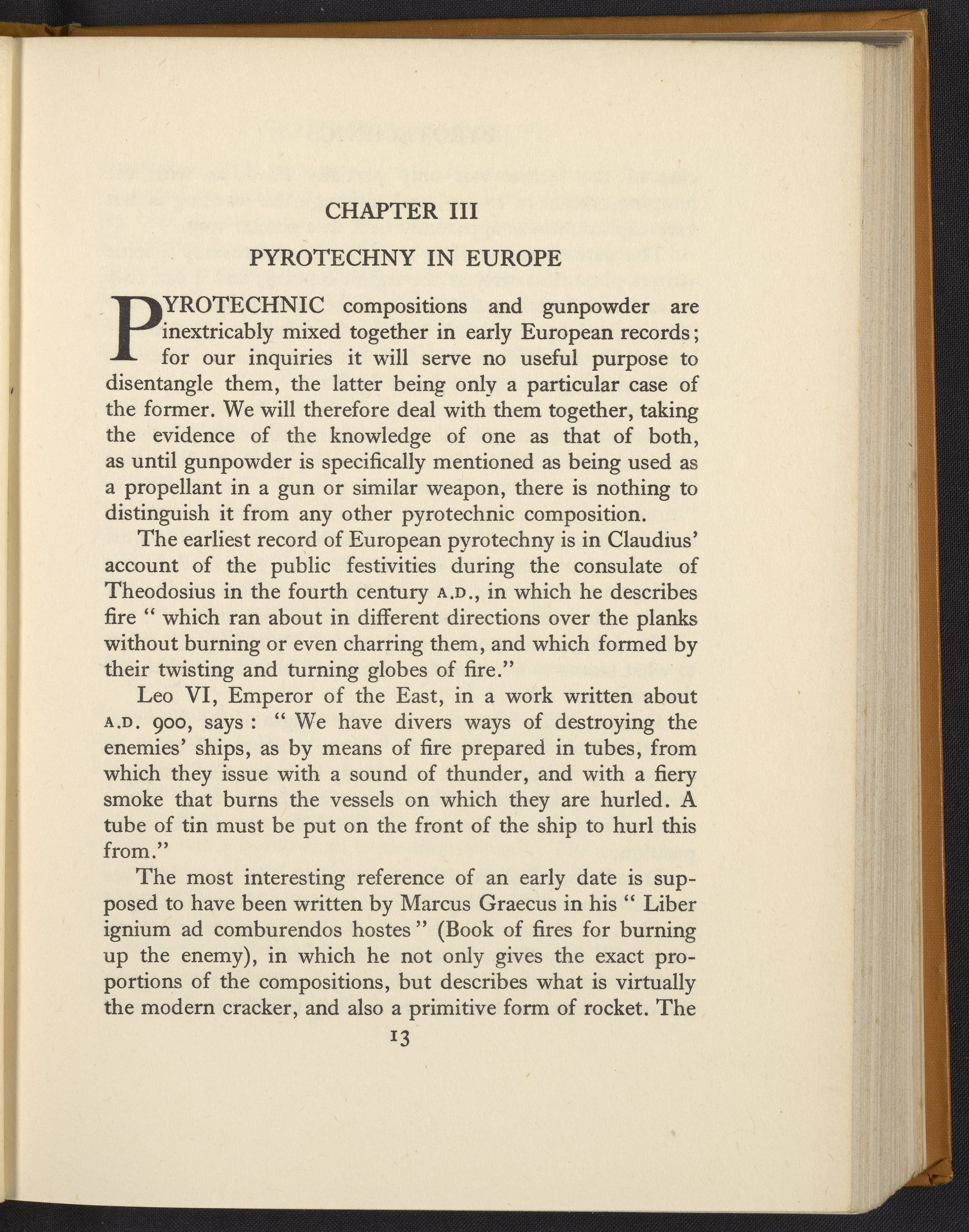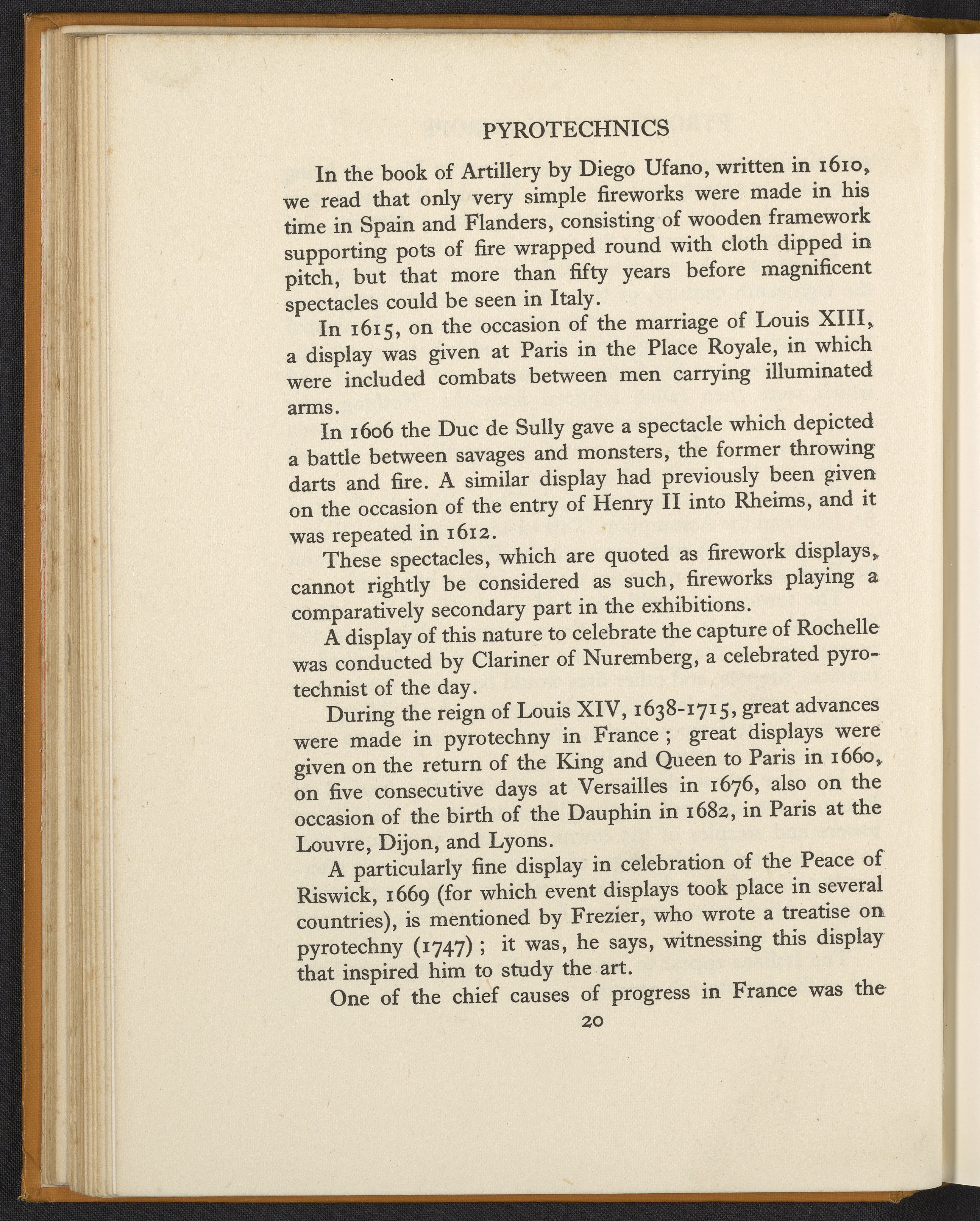 Brock, Alan St. H. (Alan St. Hill). “Pyrotechnics: The History and Art of Firework Making.” D. O'Connor, 1922. TP300 .B76 1922. Science History Institute. Philadelphia. https://digital.sciencehistory.org/works/kp0n53g.