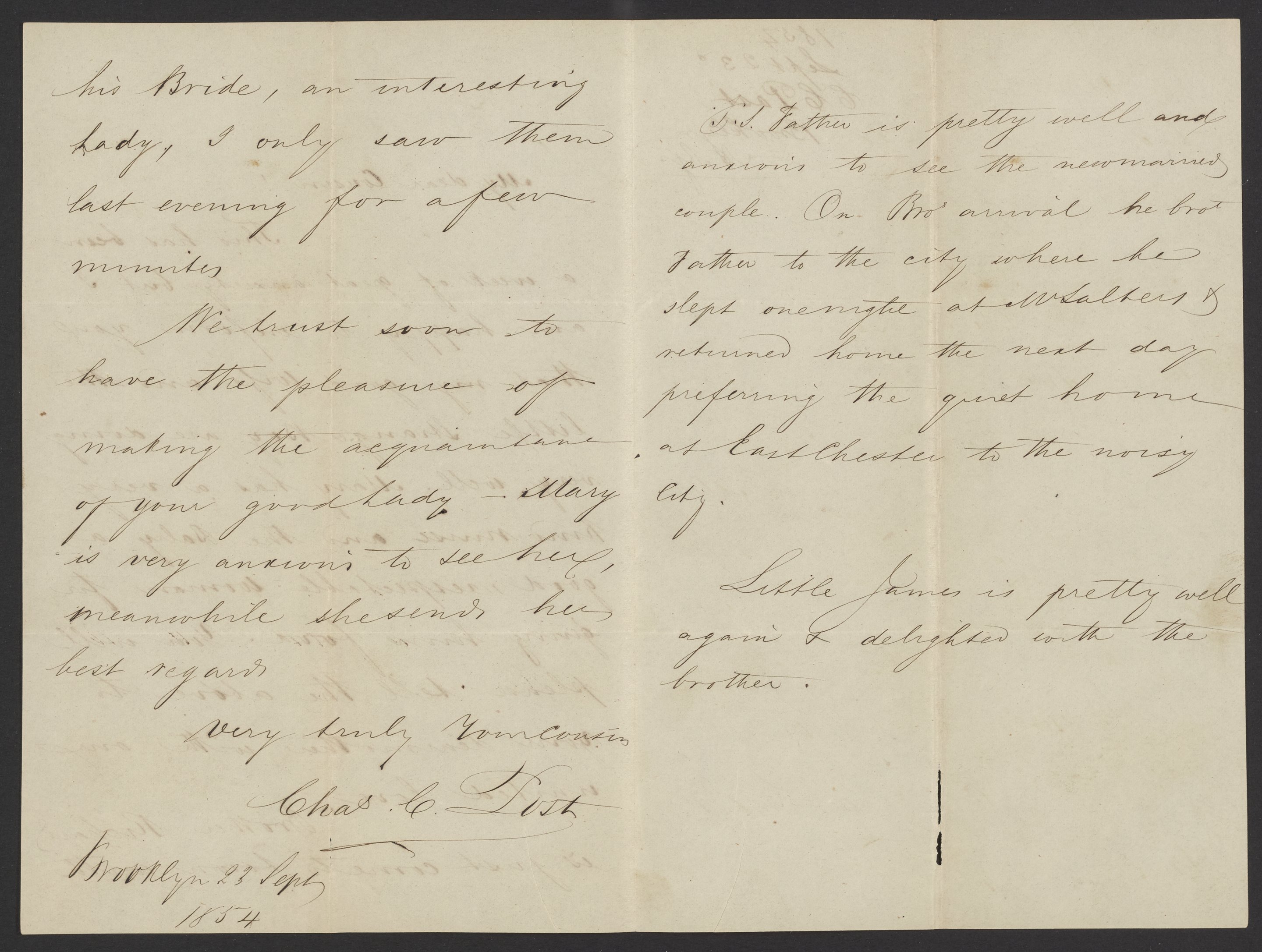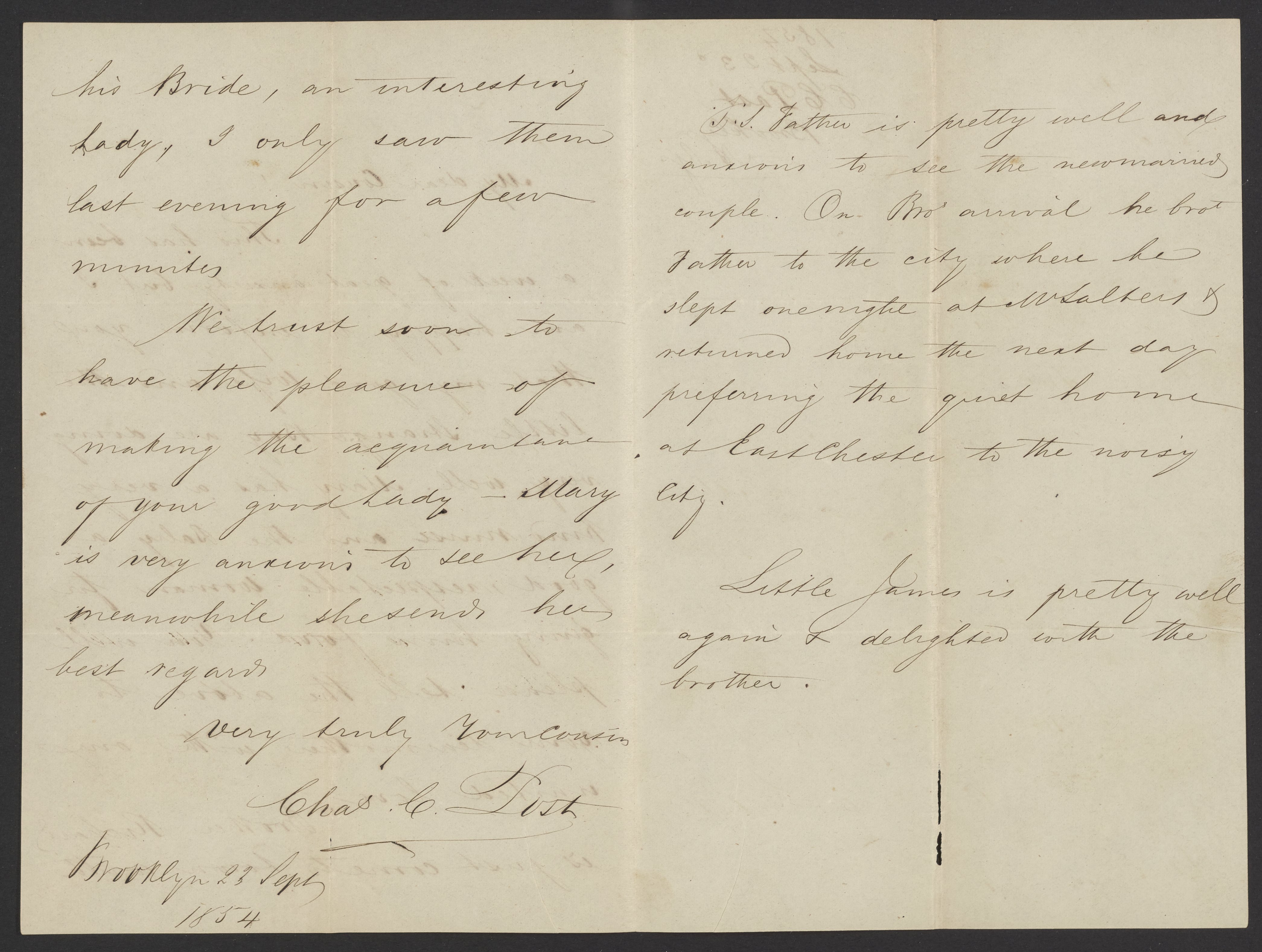 Letter from Charles C. Post to James Curtis Booth, September 23, 1854
