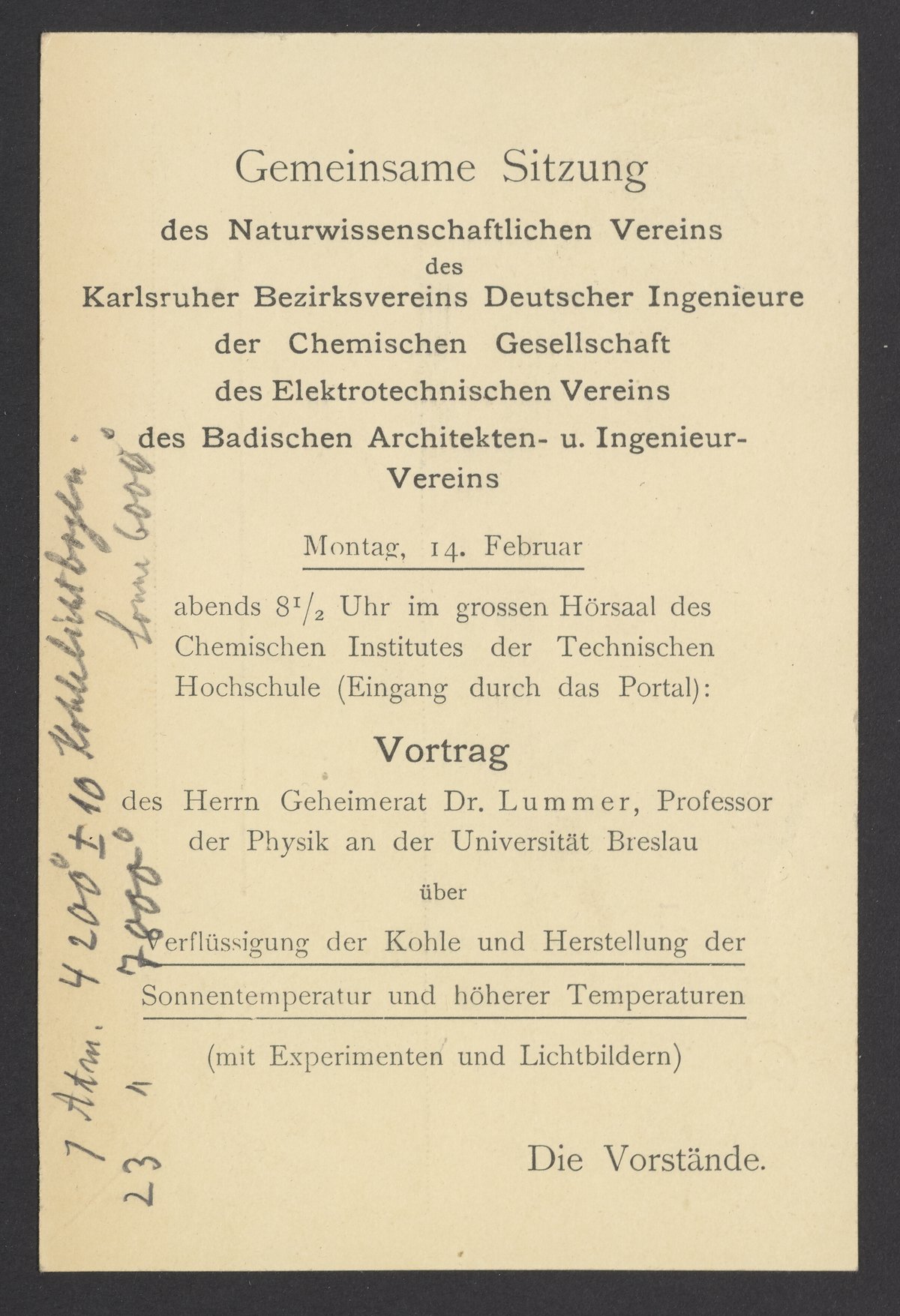 Invitation to the joint meeting of the Natural Sciences Association and the Karlsruhe District Association of German Engineers