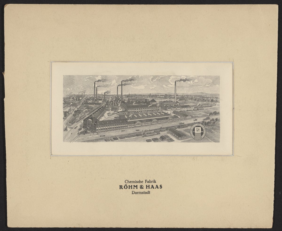 “Rohm & Haas Chemische Fabrik, Darmstadt, Germany,” circa 1919. Rohm & Haas Company Archives, Box 1, Folder 8. Science History Institute. Philadelphia. https://digital.sciencehistory.org/works/lgsb77o.