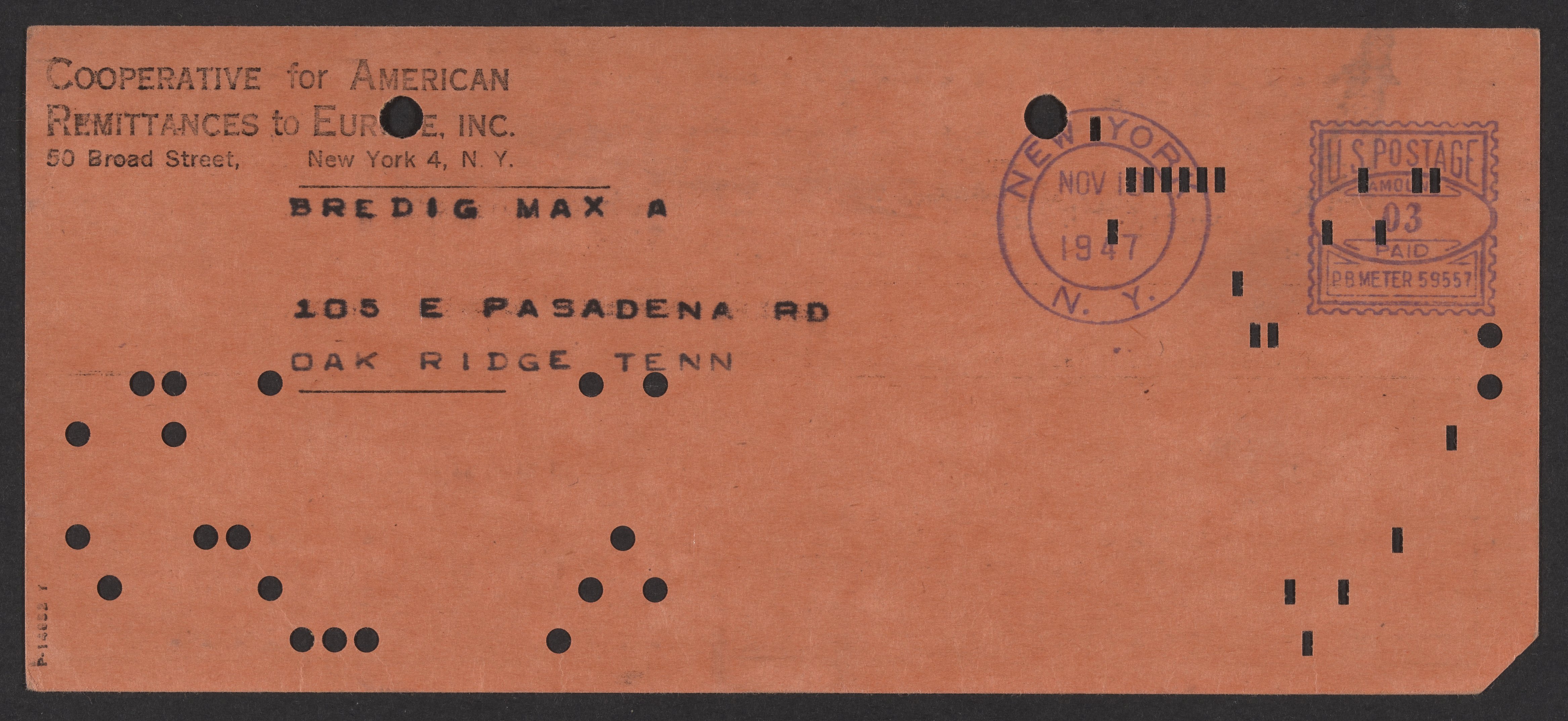 CARE/International. “C. A. R. E. Receipts,” 1947. Papers of Max Bredig, Box 3, Folder 8. Science History Institute. Philadelphia. https://digital.sciencehistory.org/works/lit2v6j.