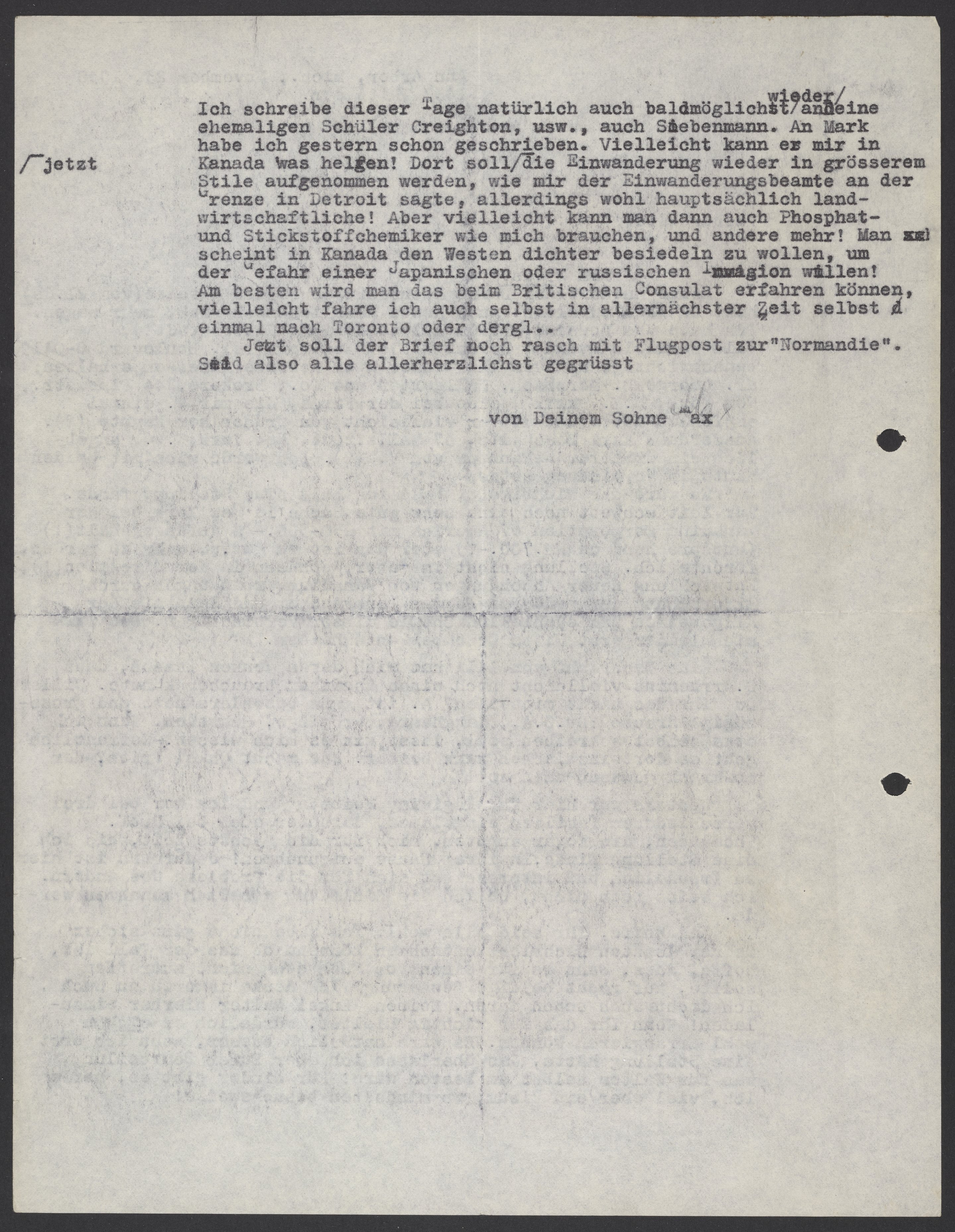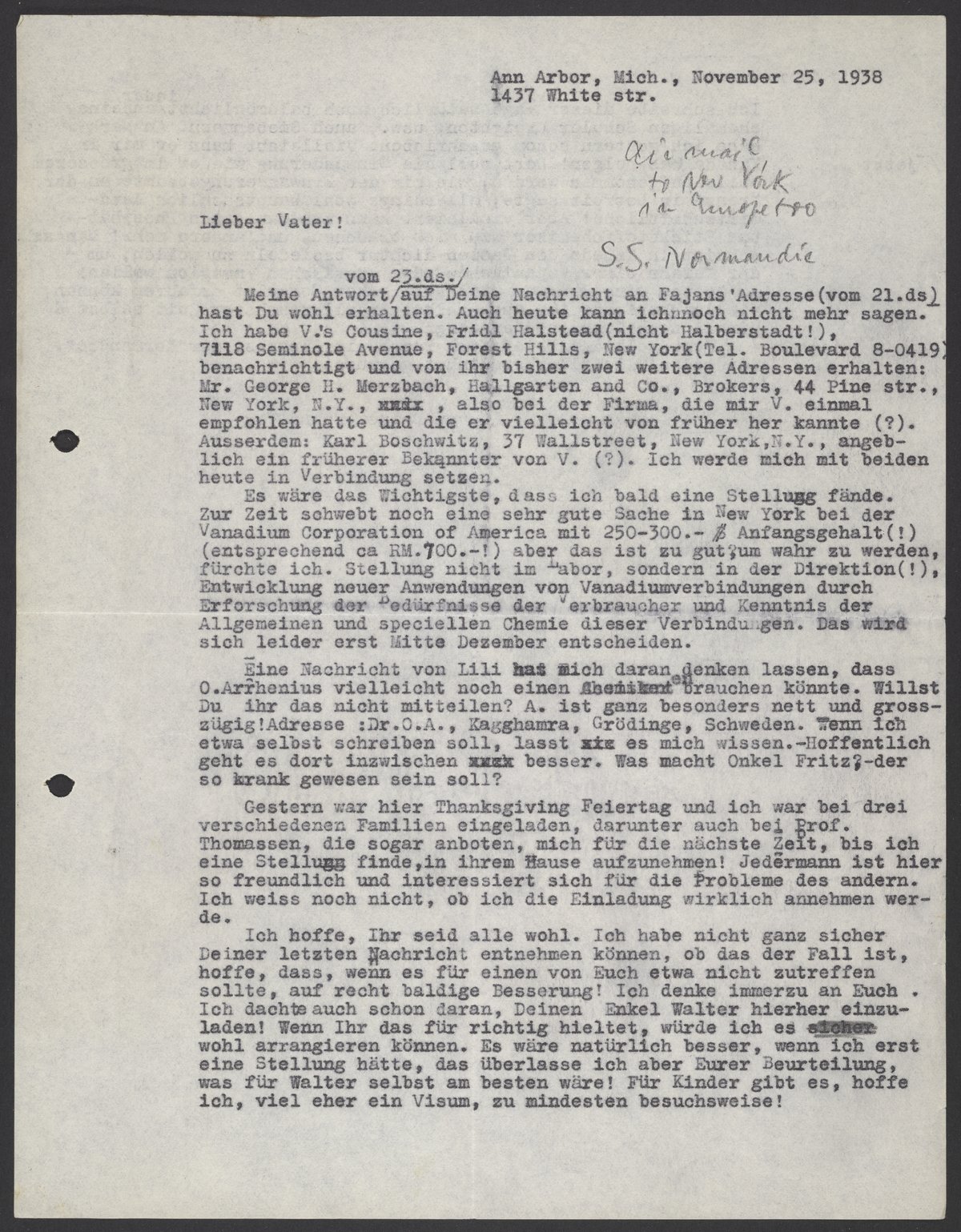 Letter from Max Bredig to Georg Bredig, November 25, 1938