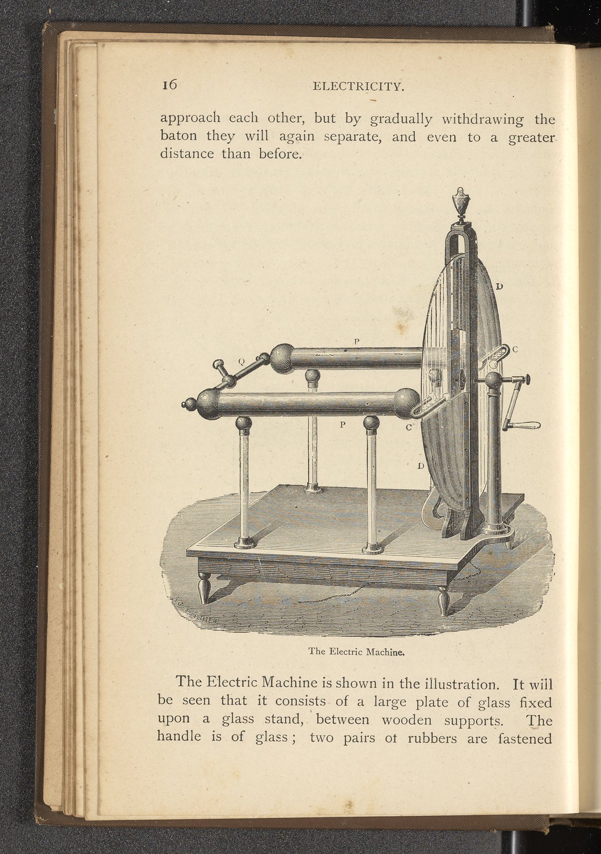 “The Electric Machine.” Wonders of Electricity and the Elements, Being a Popular Account of Modern Electrical and Magnetic Discoveries, Magnetism and Electric Machines, the Electric Telegraph and the Electric Light, and the Metal Bases, Salt, and Acids. London, England: Lock Ward, 1870–1900. https://digital.sciencehistory.org/works/lnyv0kn.