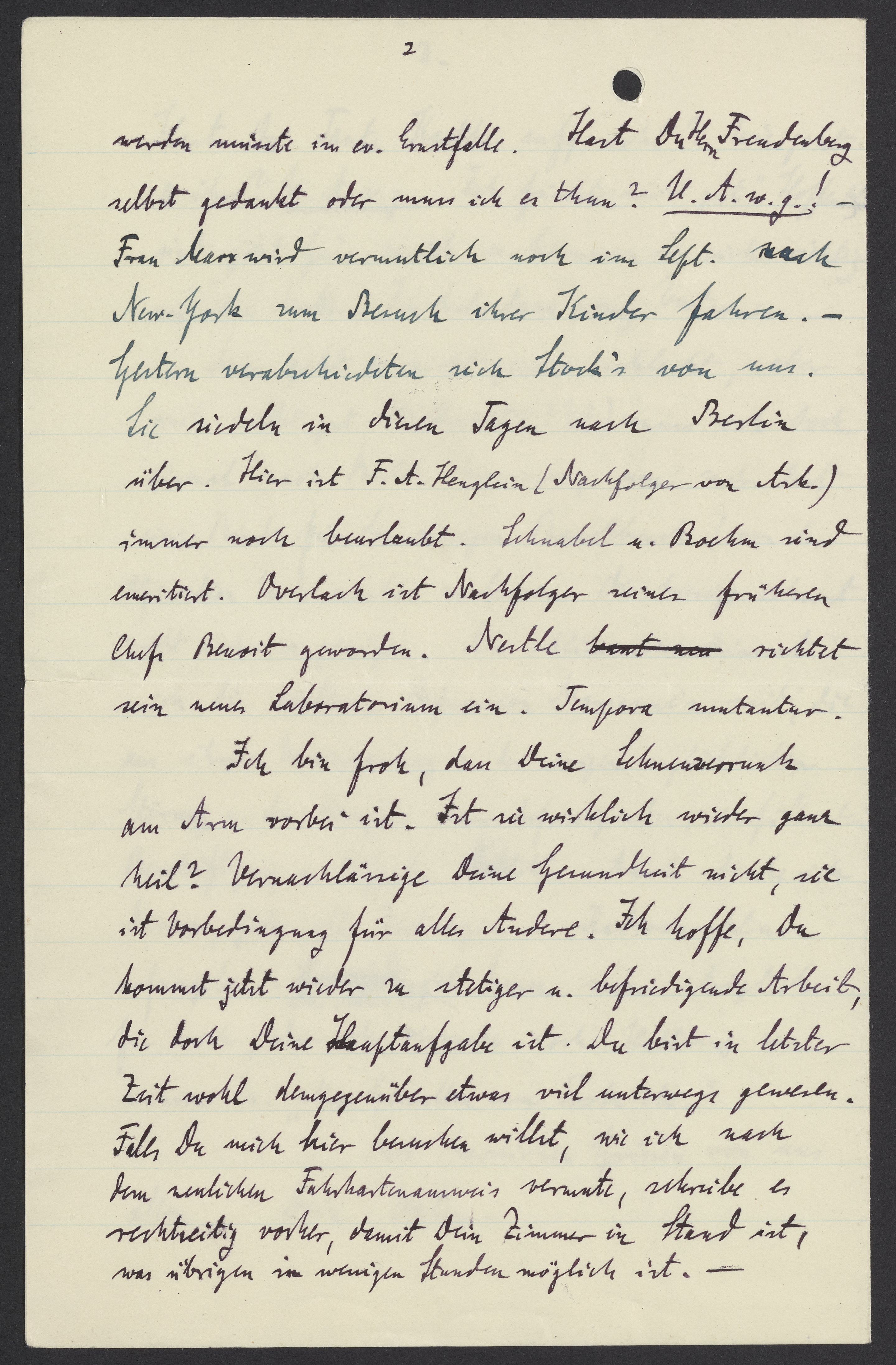 Did you thank Mr. Freudenberg personally or do I have to do it? Please let me know! Mrs. Marx will probably travel to New York in September to visit her children. Yesterday, the Stock family said goodbye to us. They are moving to Berlin soon. F.A. Henglein (successor to Azk.) is still on leave here. Schnabel and Boehm have retired. Overlach has succeeded his former boss Benoit. Nestle is setting up its new laboratory. Tempora mutantur – the times change and we change with them.