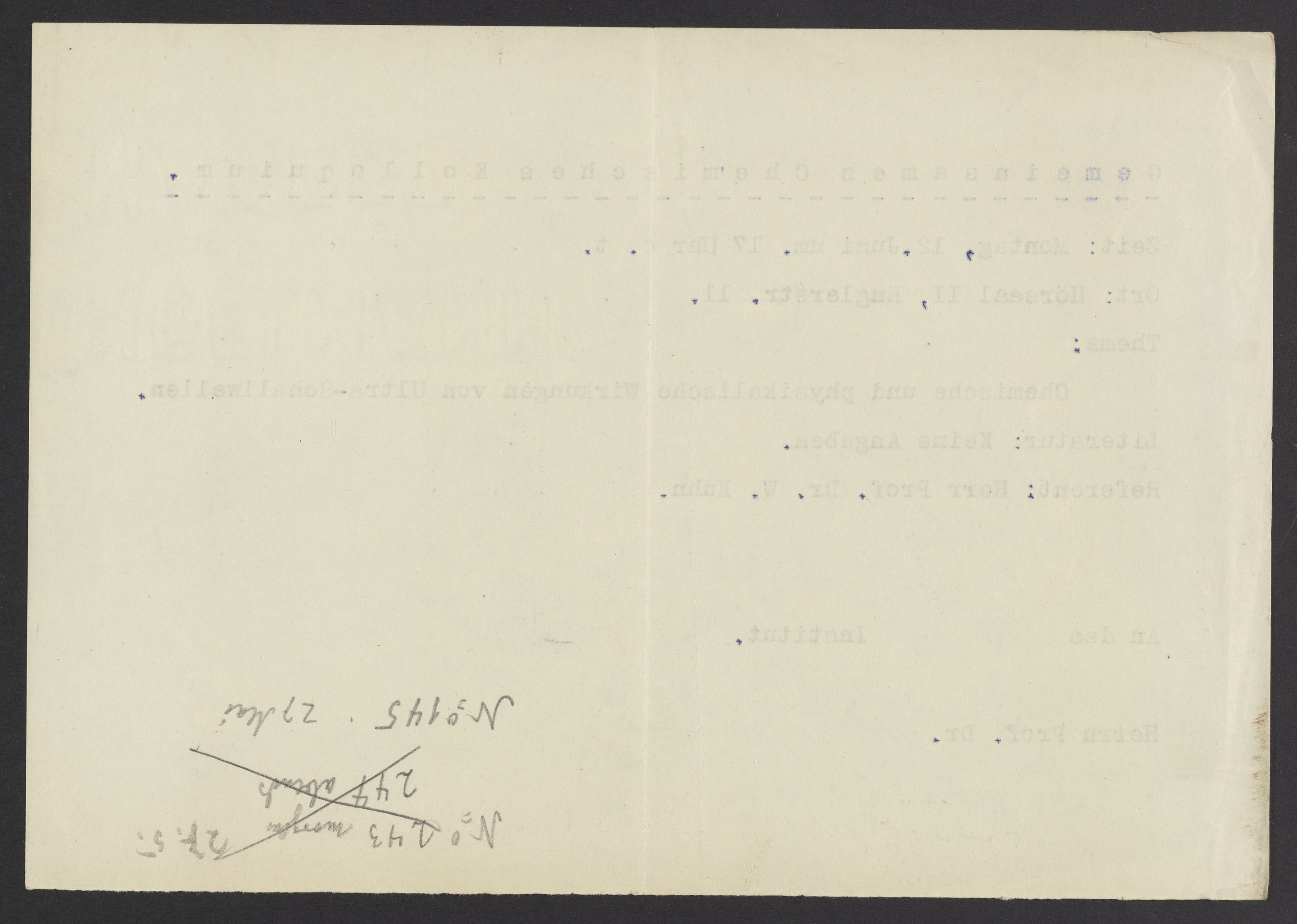 “Invitation to a Chemistry Lecture,” circa 1925. Papers of Georg and Max Bredig, Box 4, Folder 22. Science History Institute. Philadelphia. https://digital.sciencehistory.org/works/lt51xsm.
