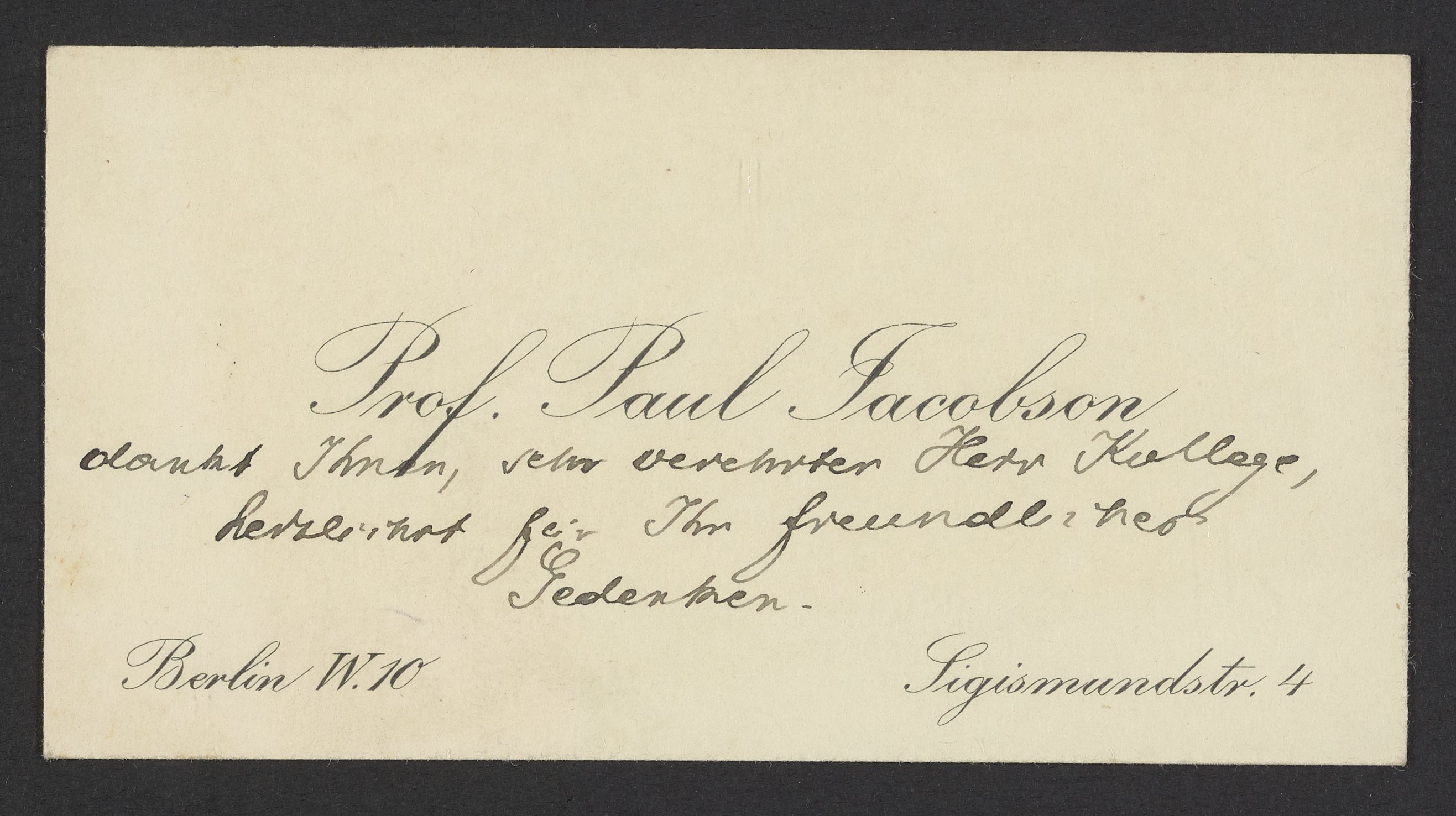 Calling card belonging to Paul Jacobson (1859-1923), an organic chemist known for being the general secretary of the German Chemical Society.