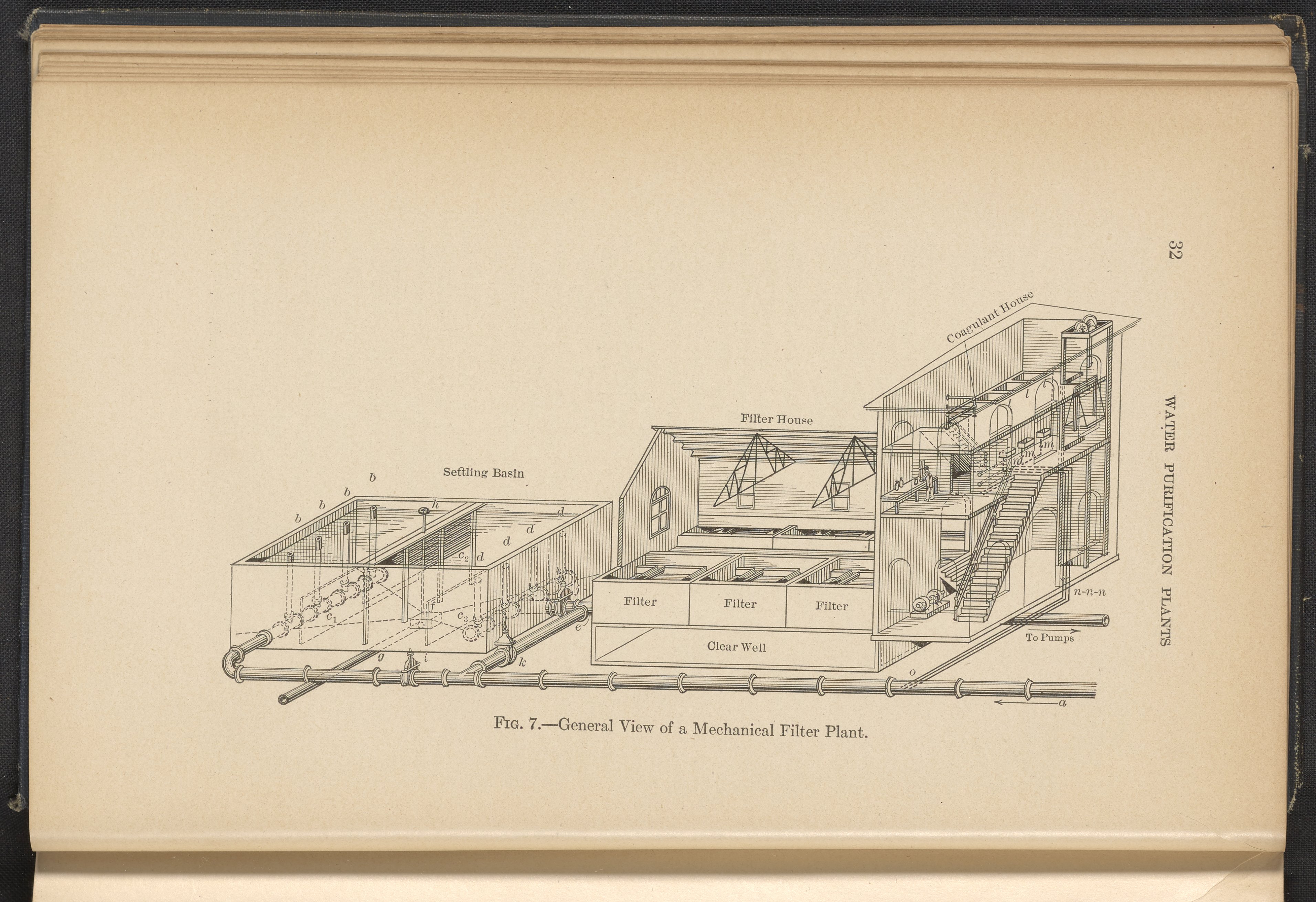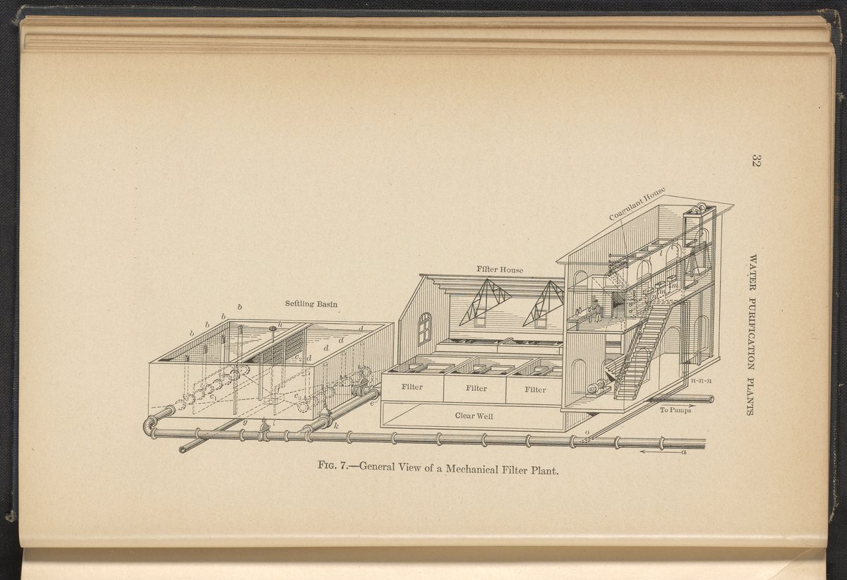 Stein, Milton F. “Figure 7. General View of a Mechanical Filter Plant.” Water Purification Plants and Their Operation. New York (State): John Wiley & Sons, 1915. TD430 .S45 1915. Science History Institute. Philadelphia. https://digital.sciencehistory.org/works/m1y2jmm.