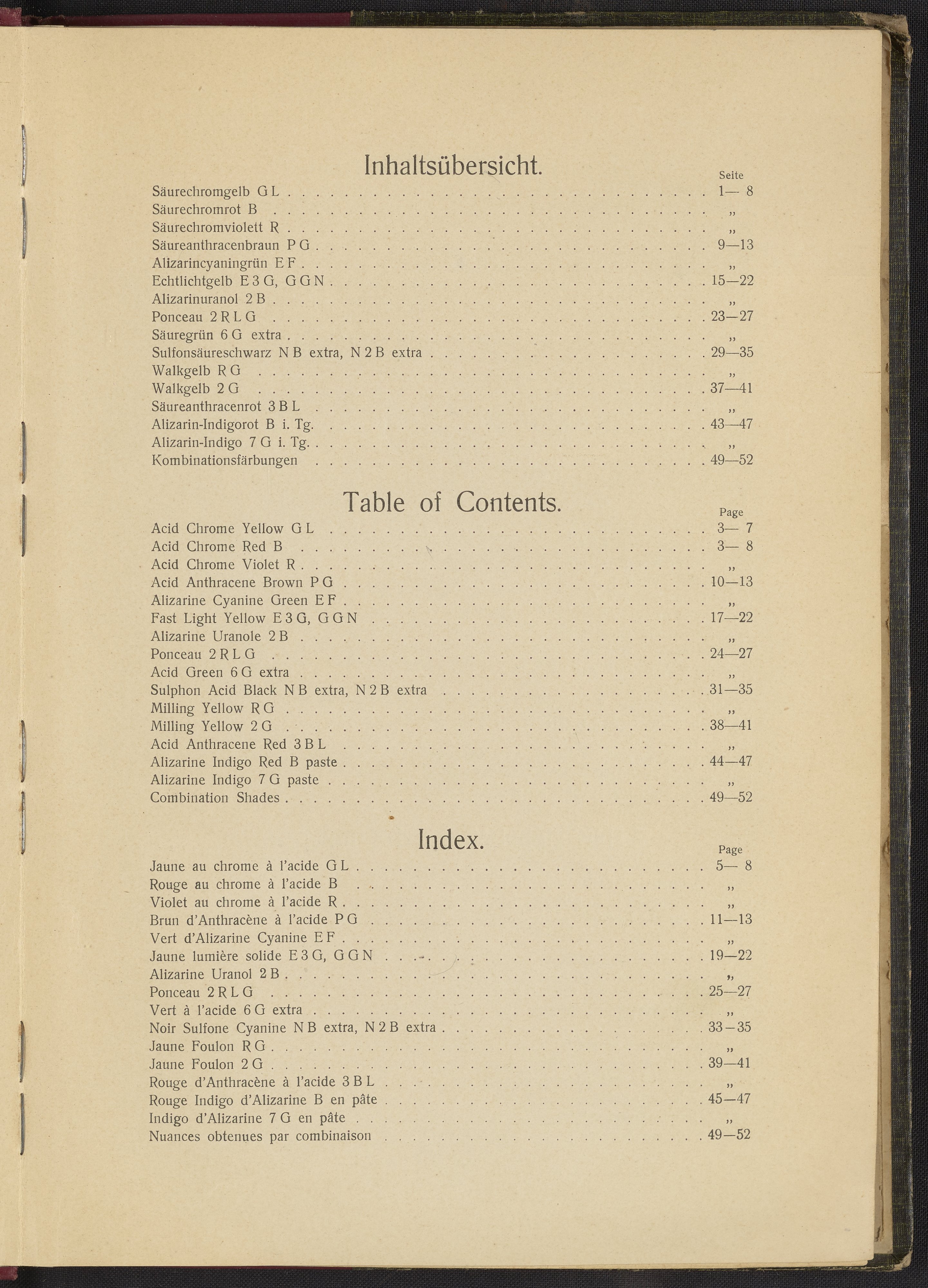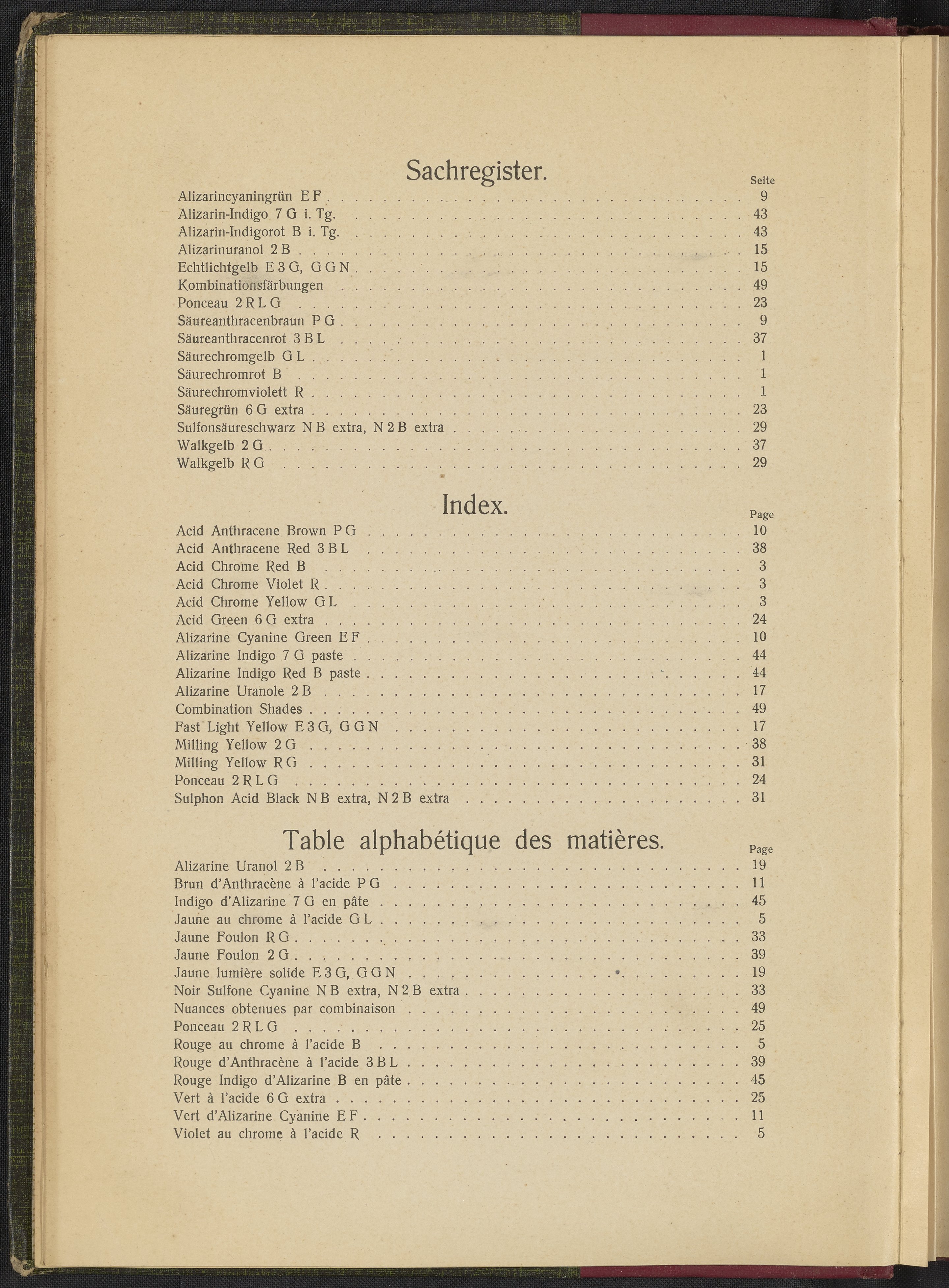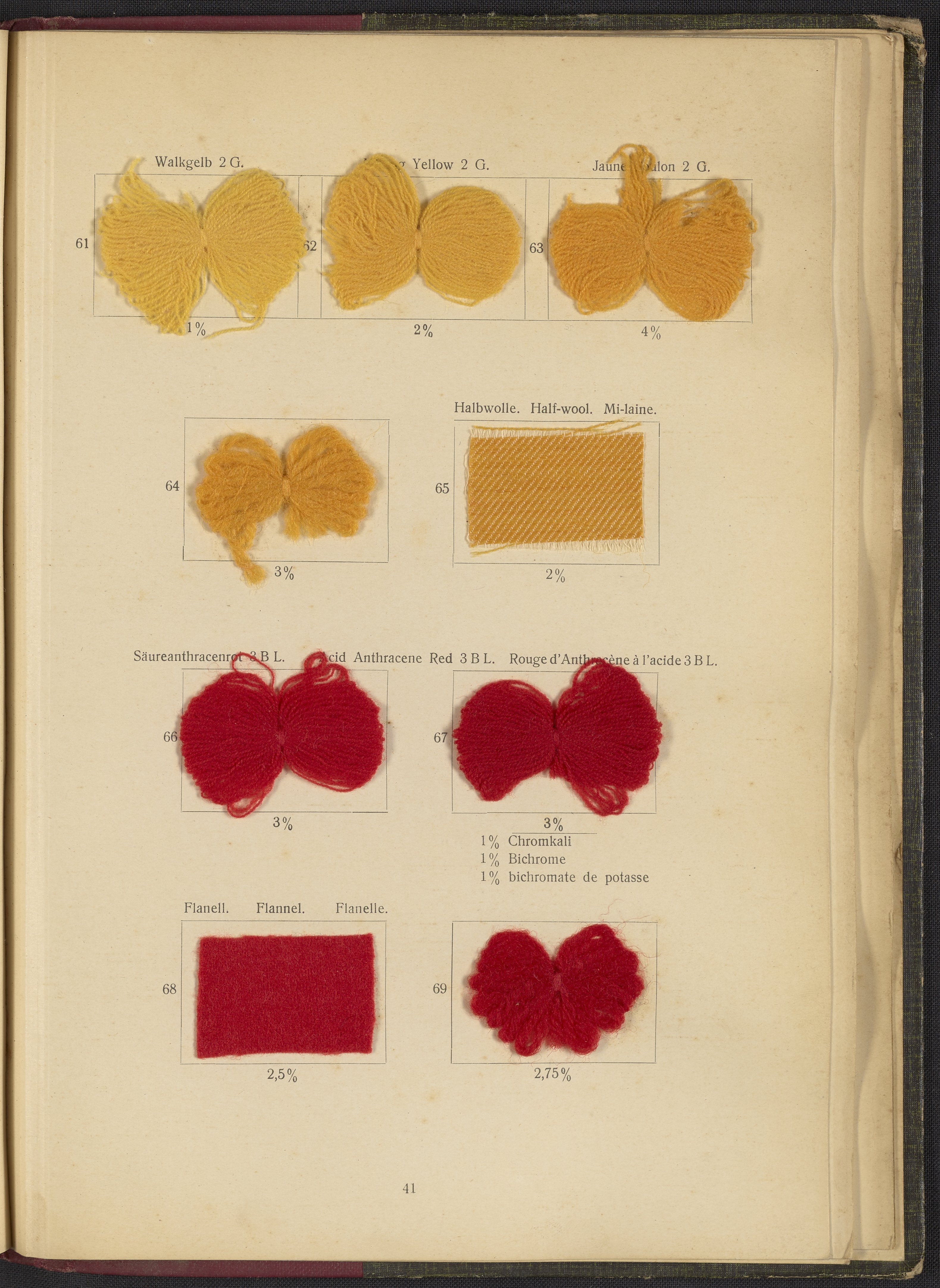 This tri-lingual work, digitized in full, contains dyeing instructions and 101 dyes textile samples.