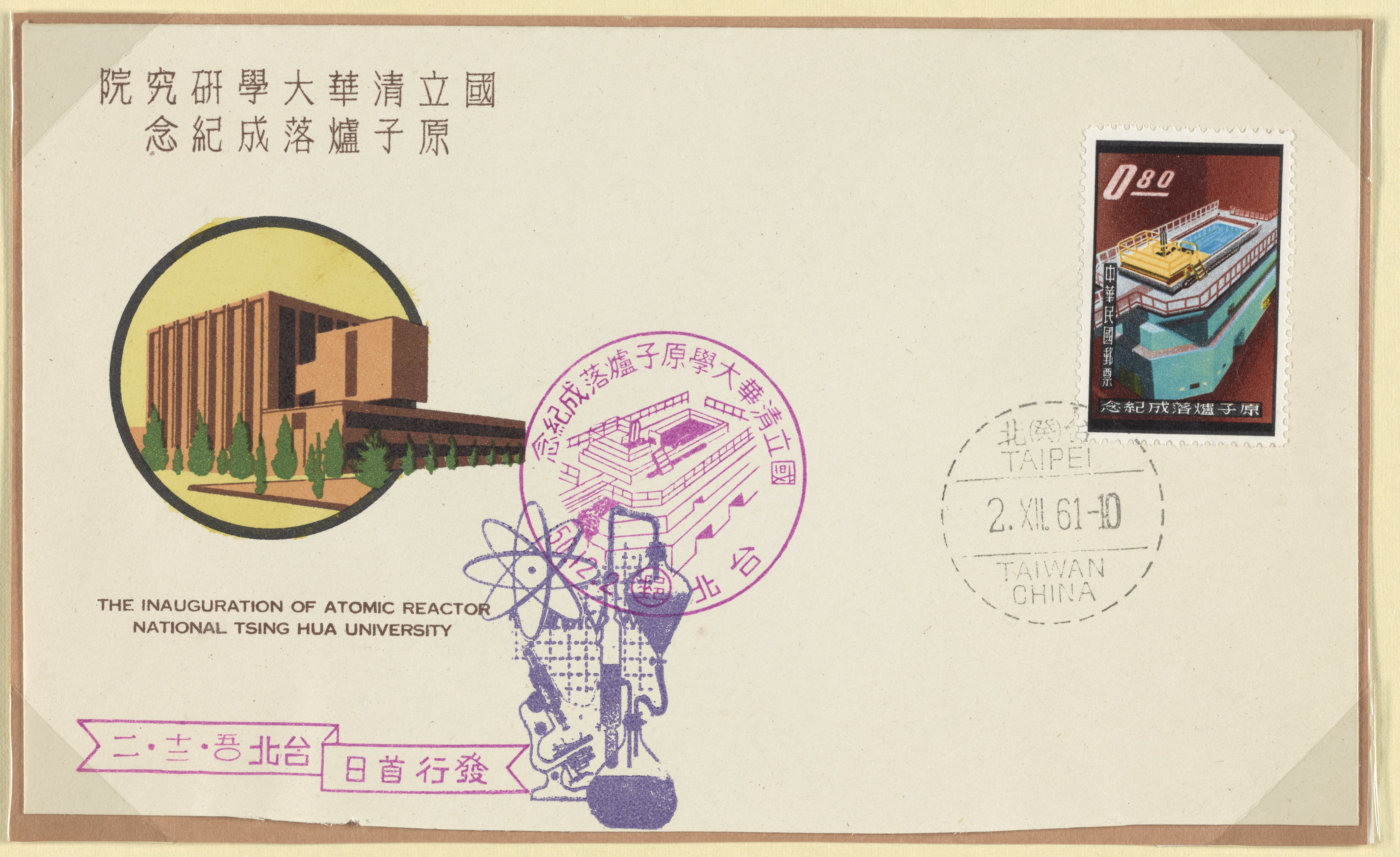 Wen Hsueh-ju. “First Day Cover Commemorating the Inauguration of the Atomic Reactor at National Tsing Hua University.” Taiwan: Japan Printing Bureau of the Ministry of Finance, 1961. Witco Stamp Collection, Box 4. Science History Institute. Philadelphia. https://digital.sciencehistory.org/works/m326m177s.