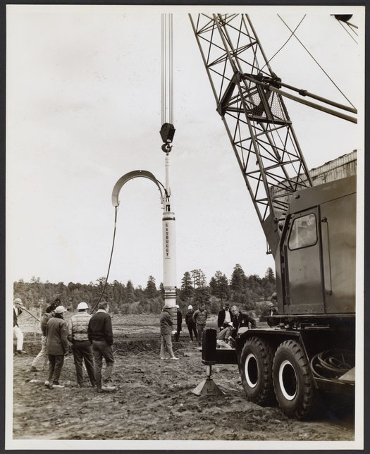 “Lowering Project Gasbuggy Nuclear Device Canister,” December 10, 1967. Papers of Spofford Grady English, Box 1, Folder 40. Science History Institute. Philadelphia. https://digital.sciencehistory.org/works/m42p863.