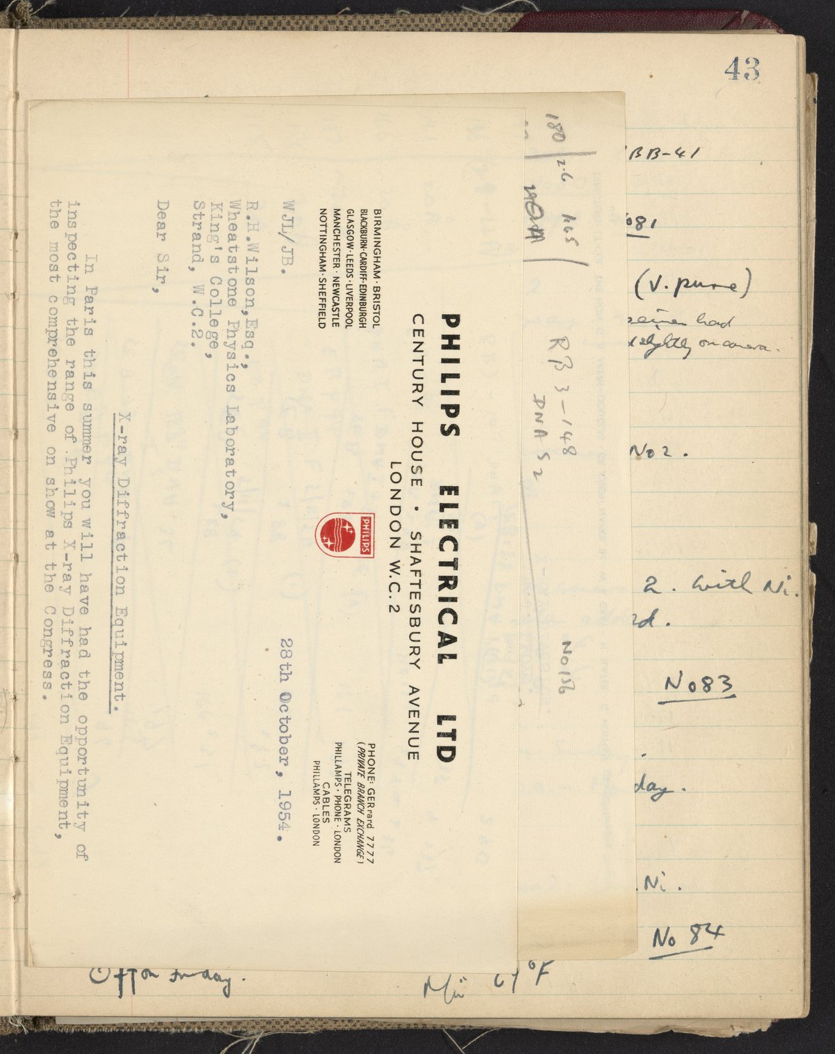 Herbert Wilson's notebook, 1953-1954