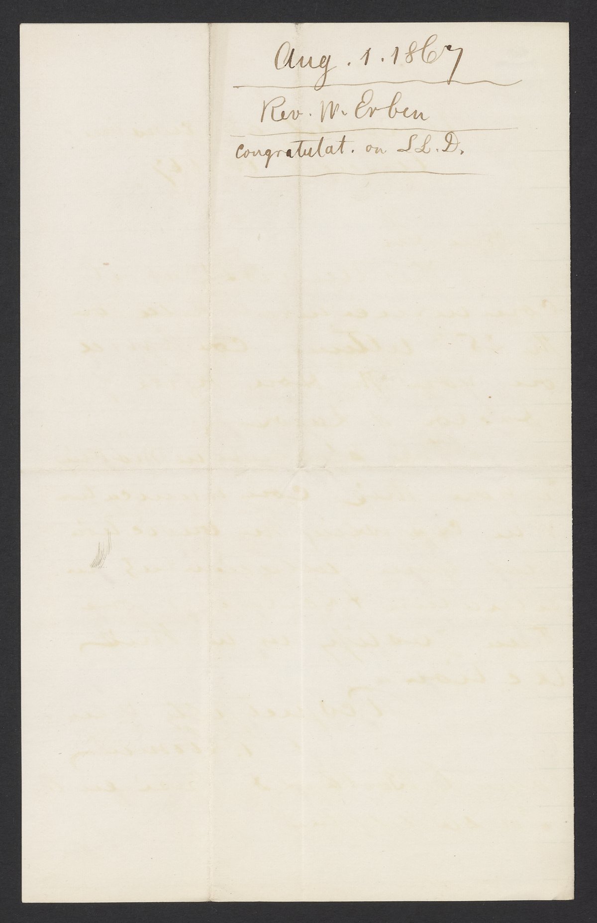 Small JPG1200 x 1851px — 299 KBFull-sized JPG2190 x 3378px — 829 KBOriginal fileTIFF — 2190 x 3378px — 21.2 MBRev. William B. Erben (1833-1892), Rector of the Church of the Redeemer, Philadelphia, writes to James Curtis Booth (1810-1888) to congratulate Booth on his completion of a Legum Doctoral (LL.D.) degree