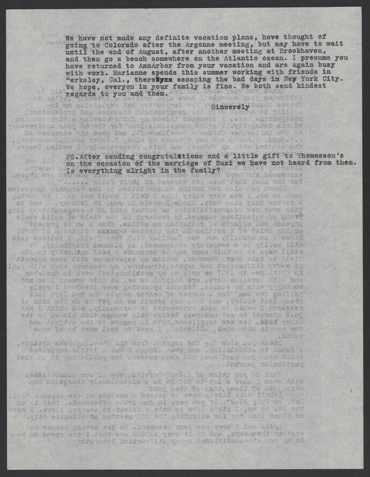 The letter ends with personal and professional updates from Bredig to Fajans.