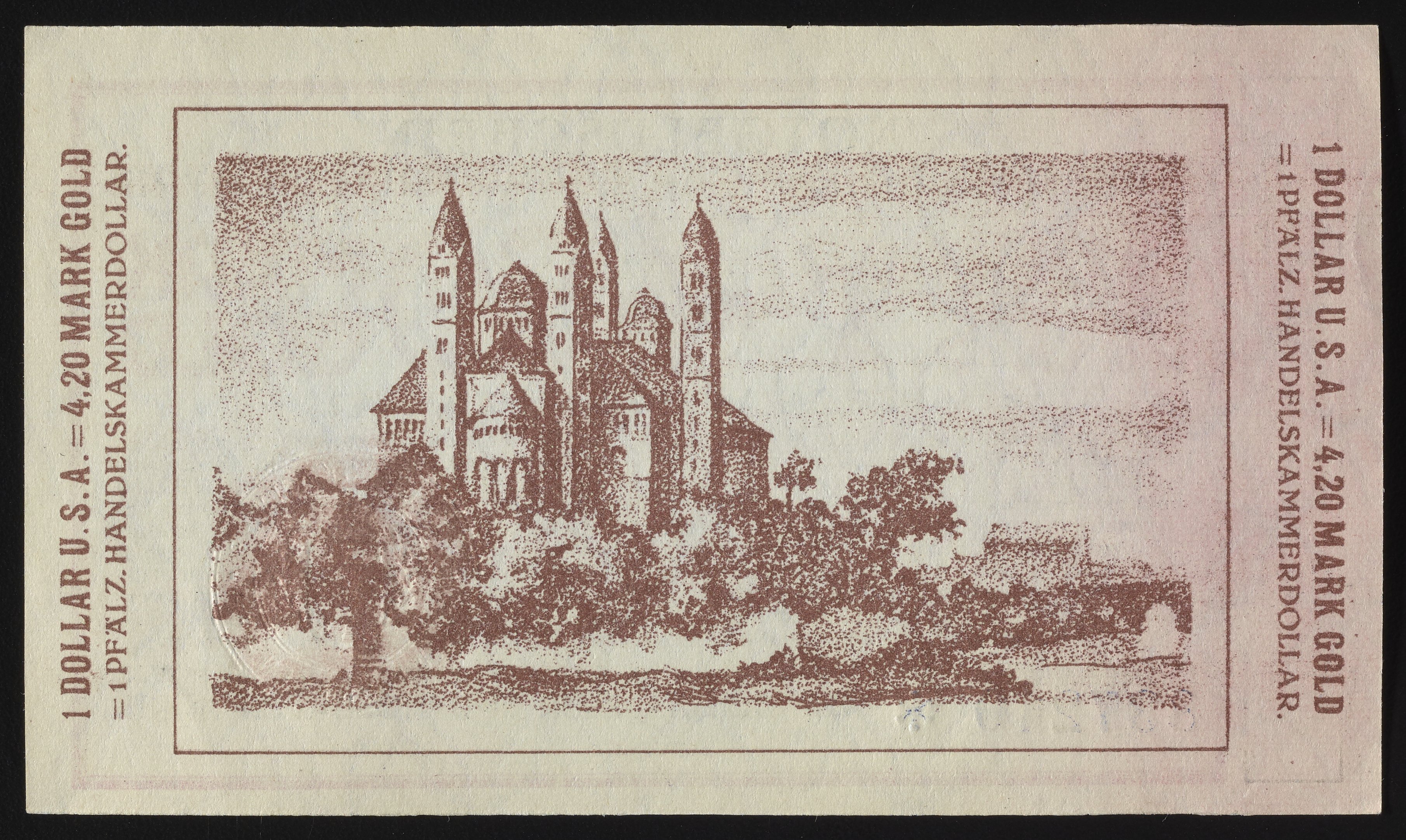 • Ludwigshafen Chamber of Commerce 1 Dollar = 4.20 Goldmark emergency money bill