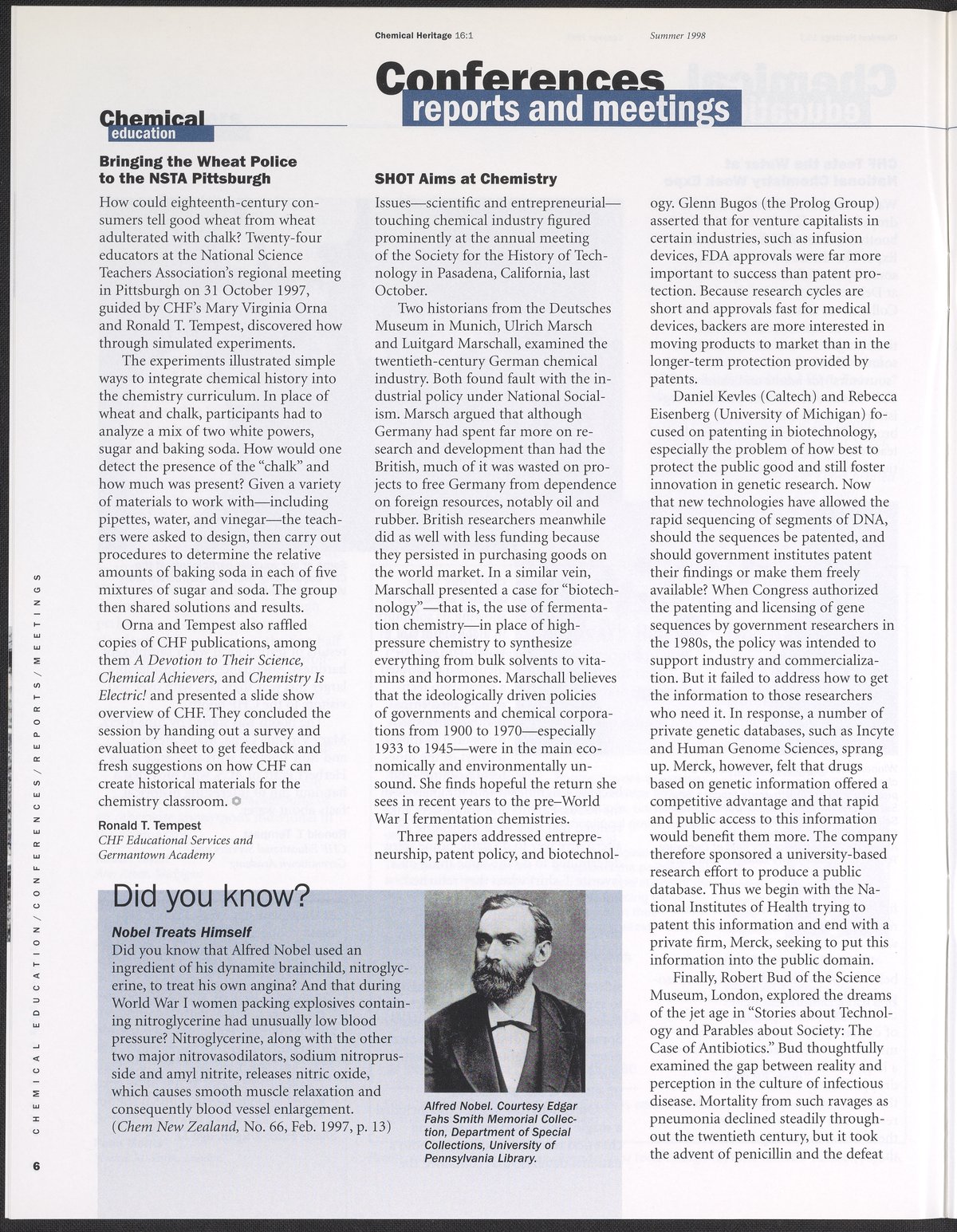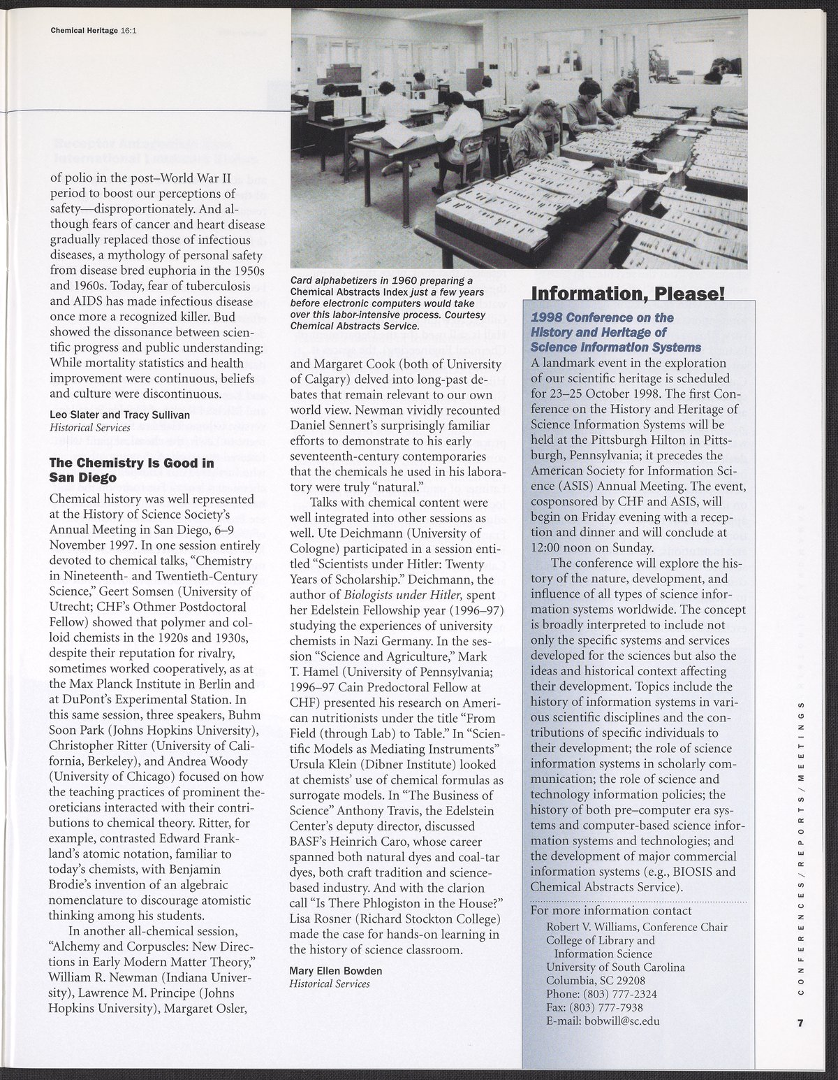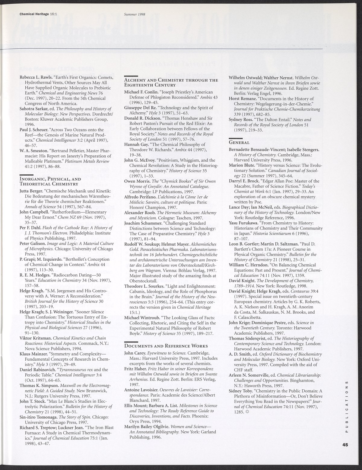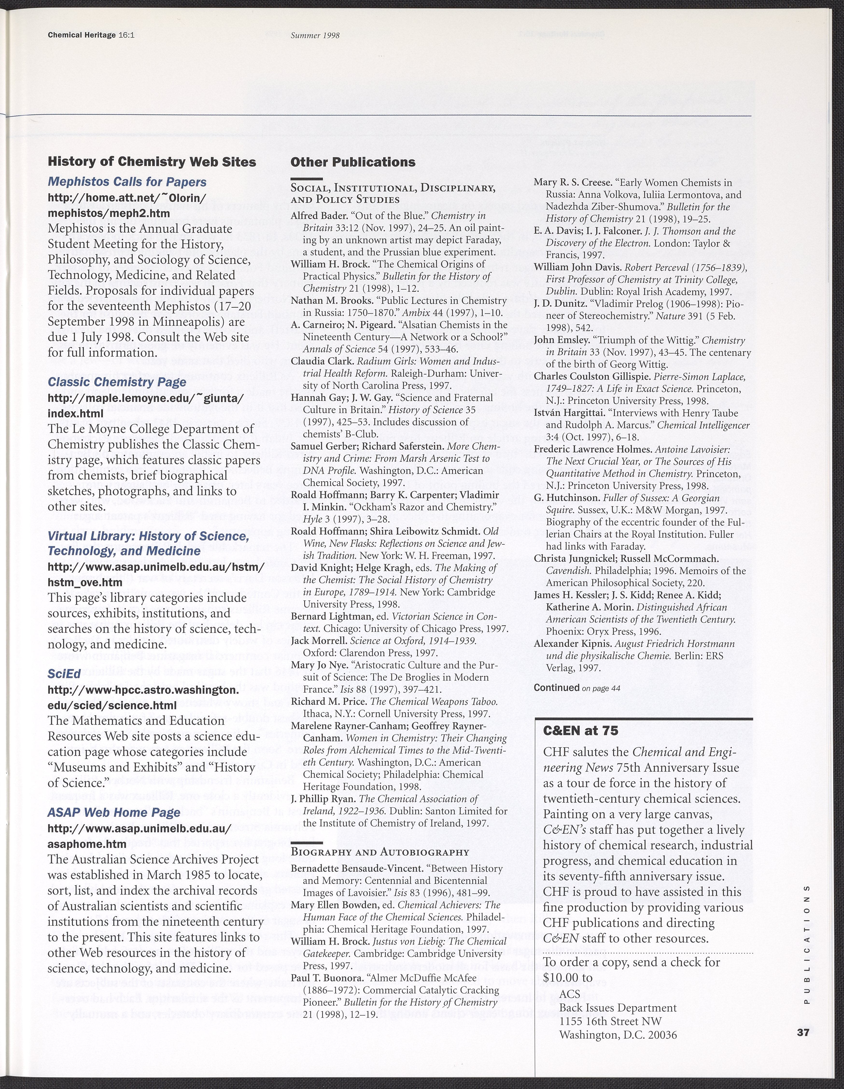 Chemical Heritage, Volume 16 Number 1