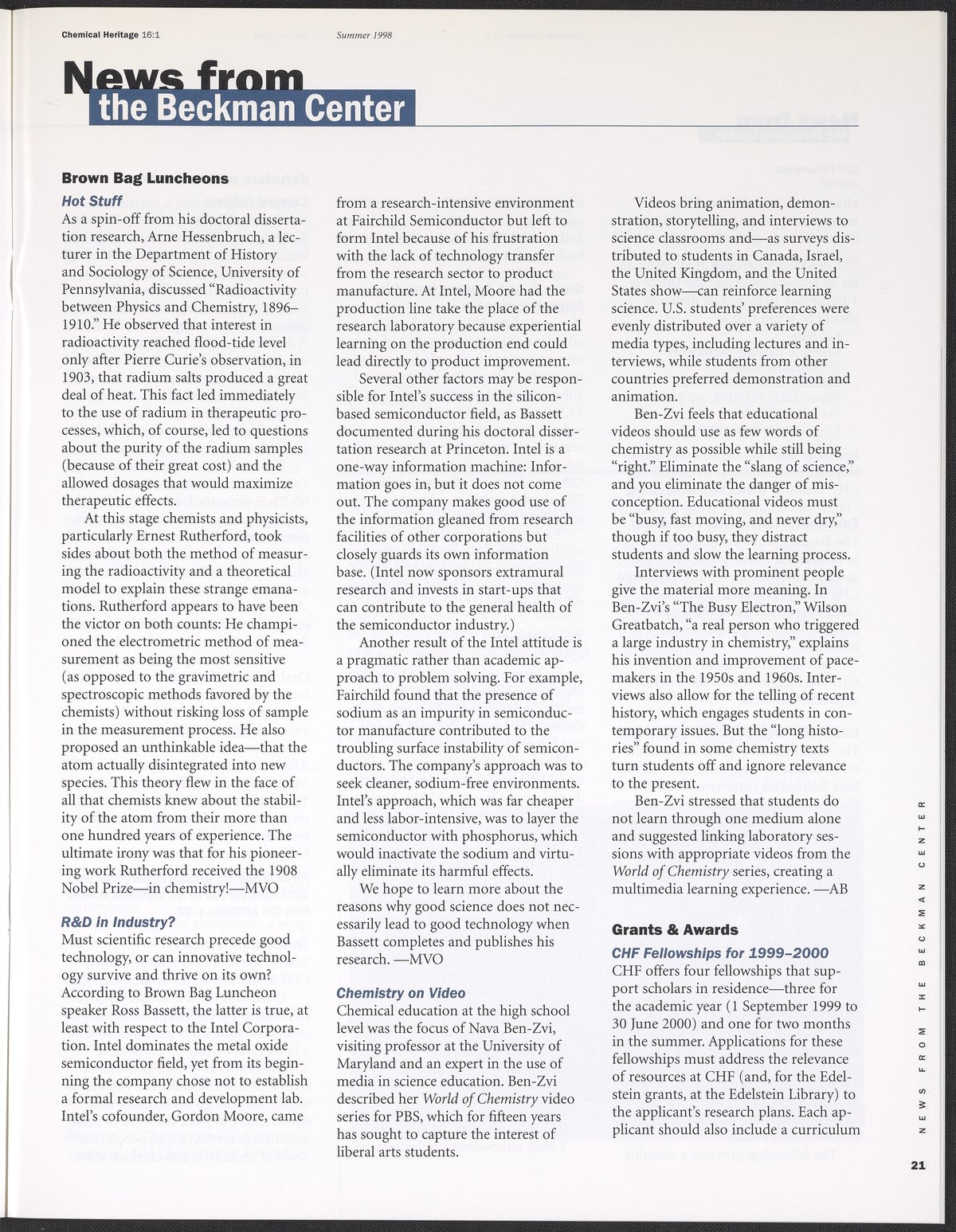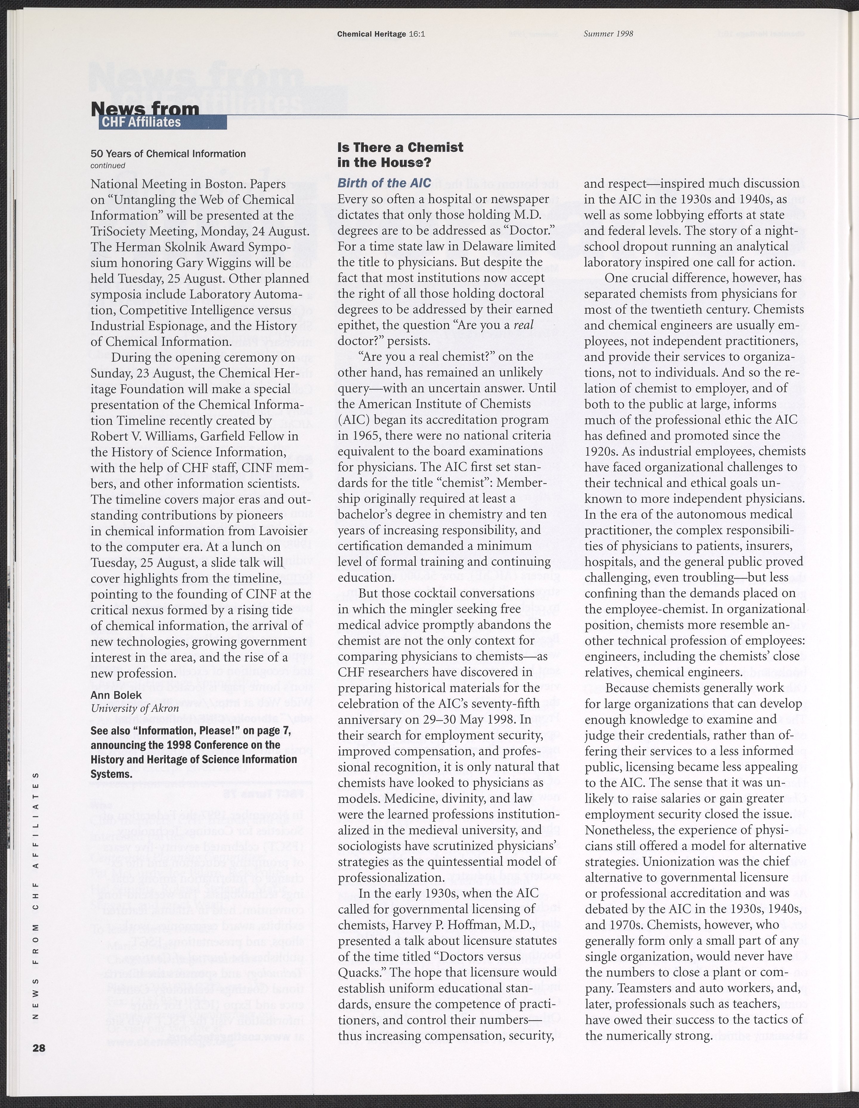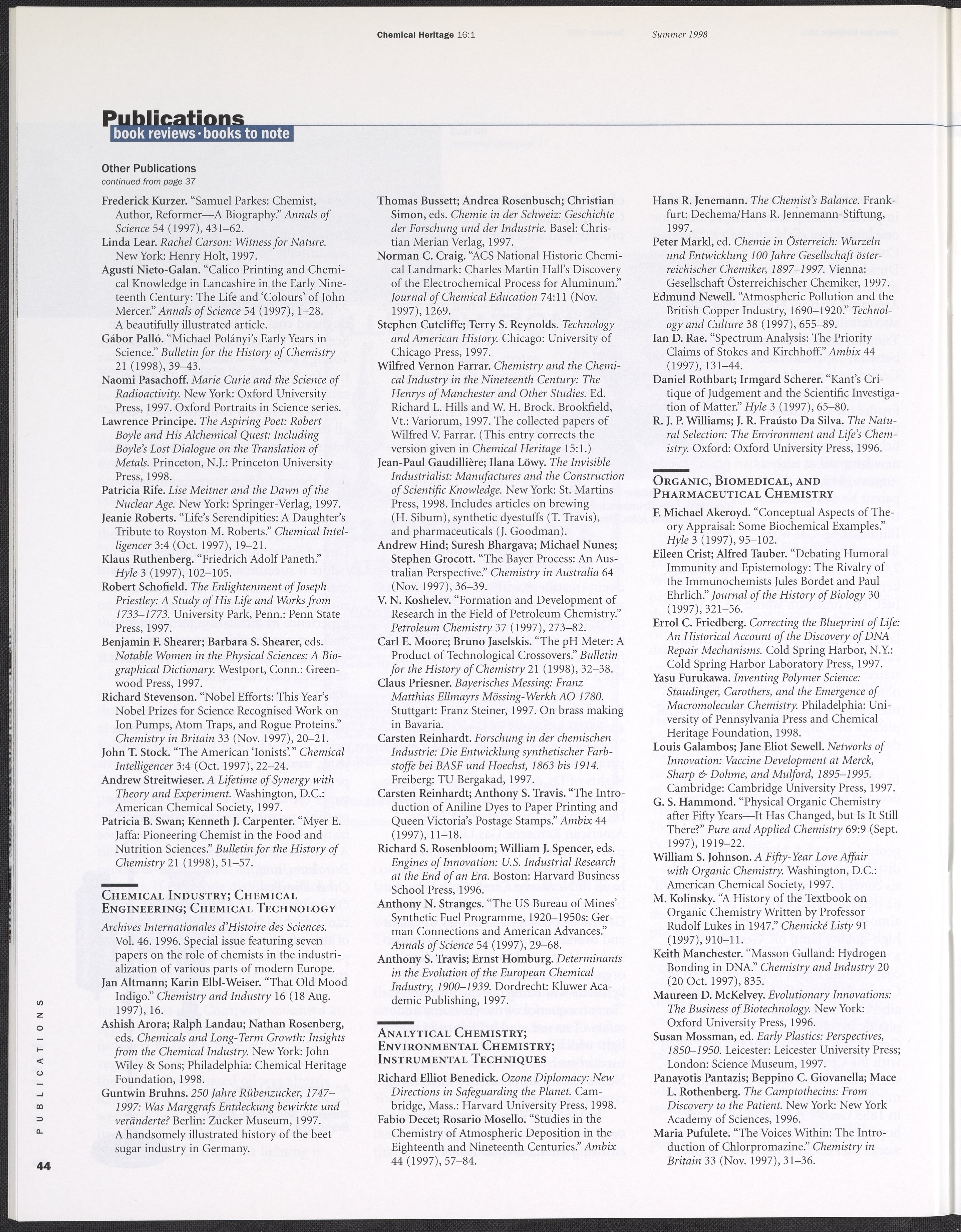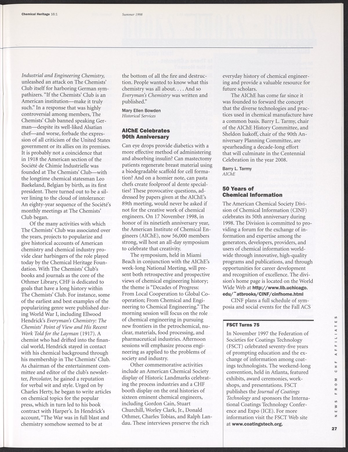 Chemical Heritage, Volume 16 Number 1