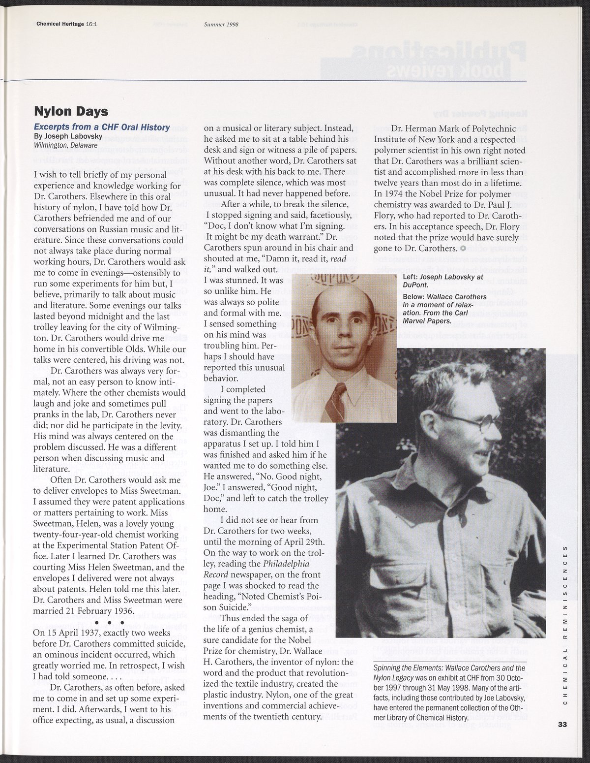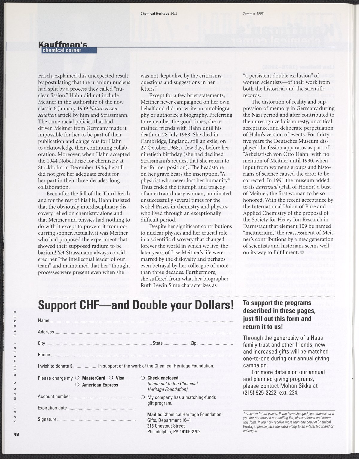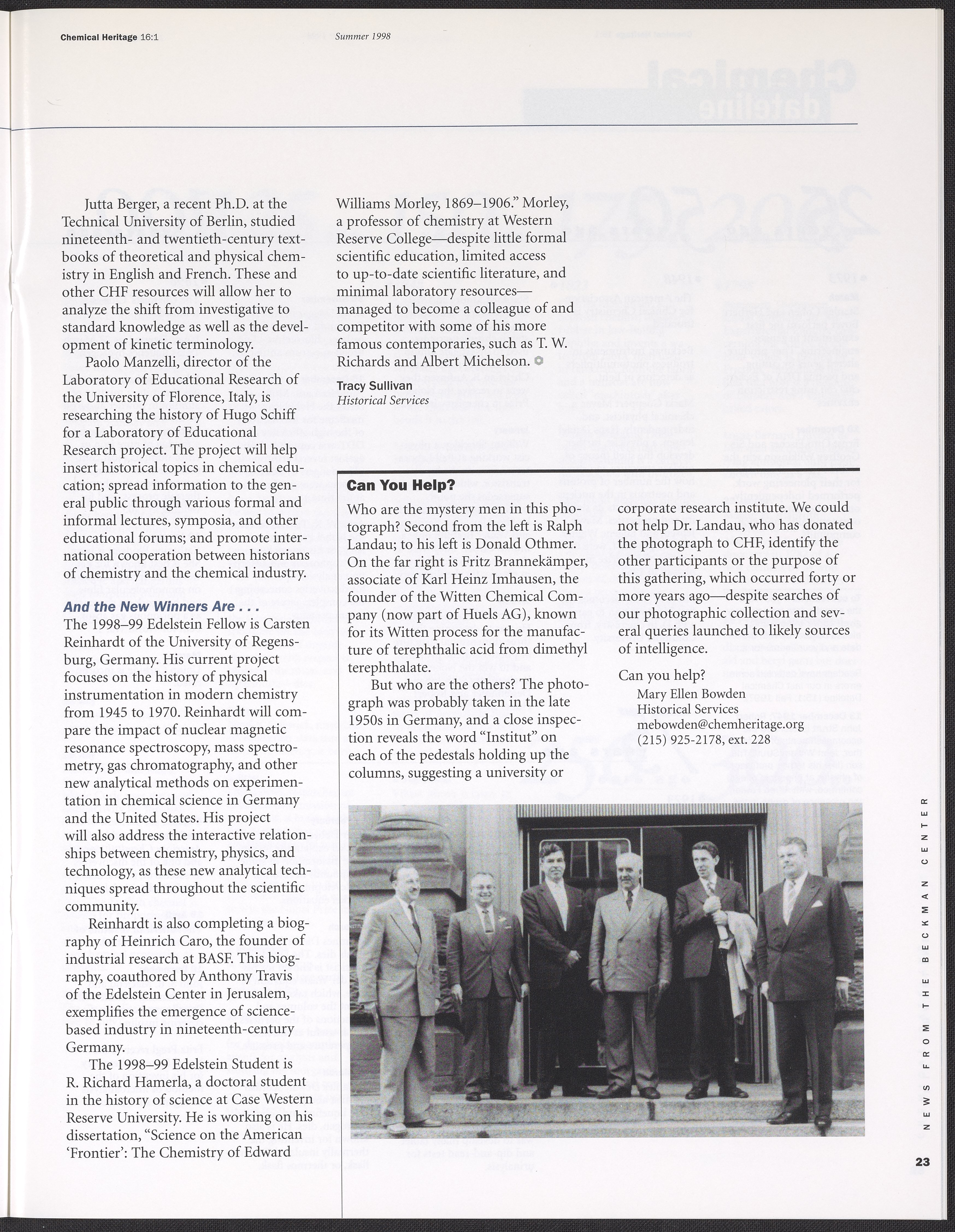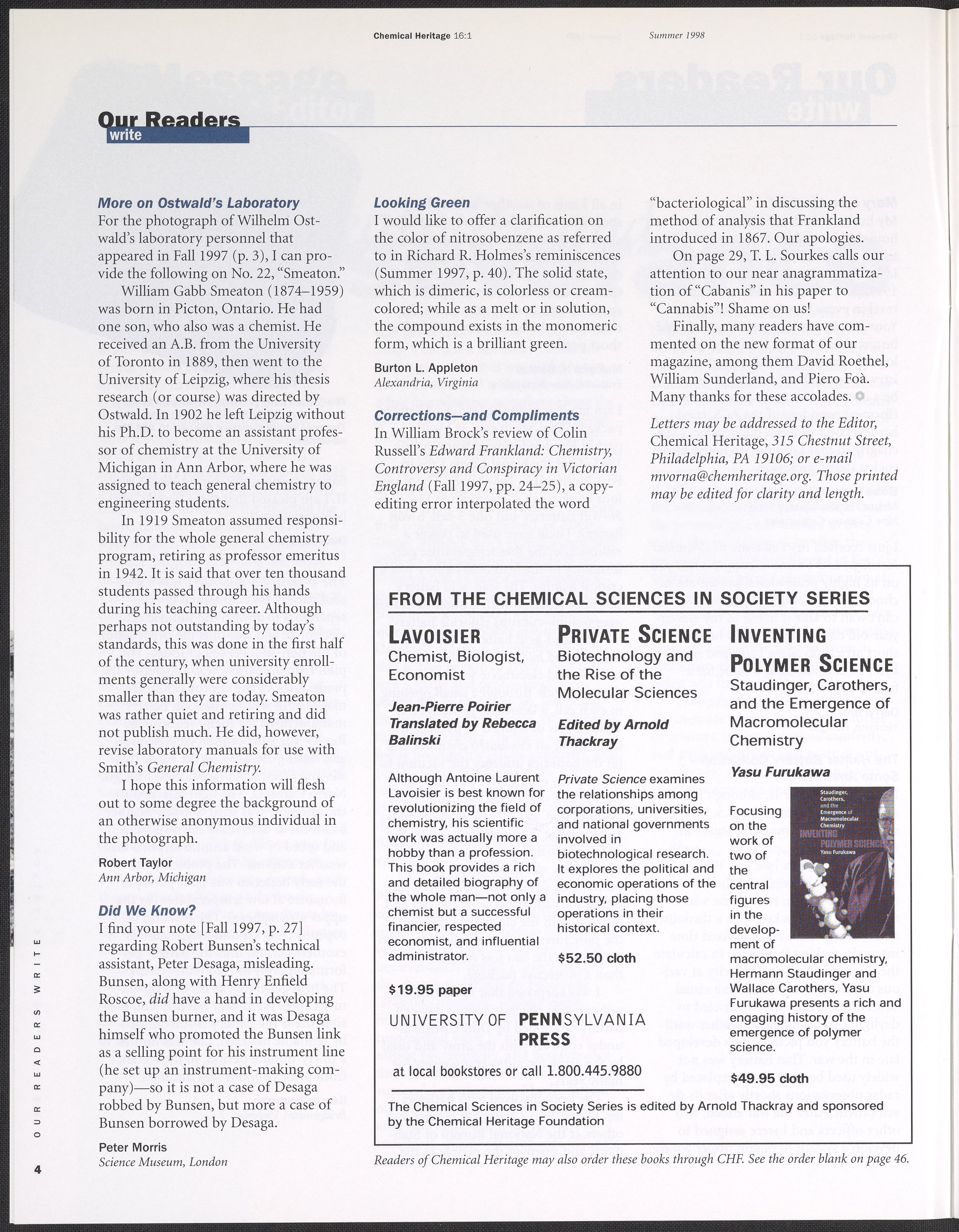 Chemical Heritage, Volume 16 Number 1
