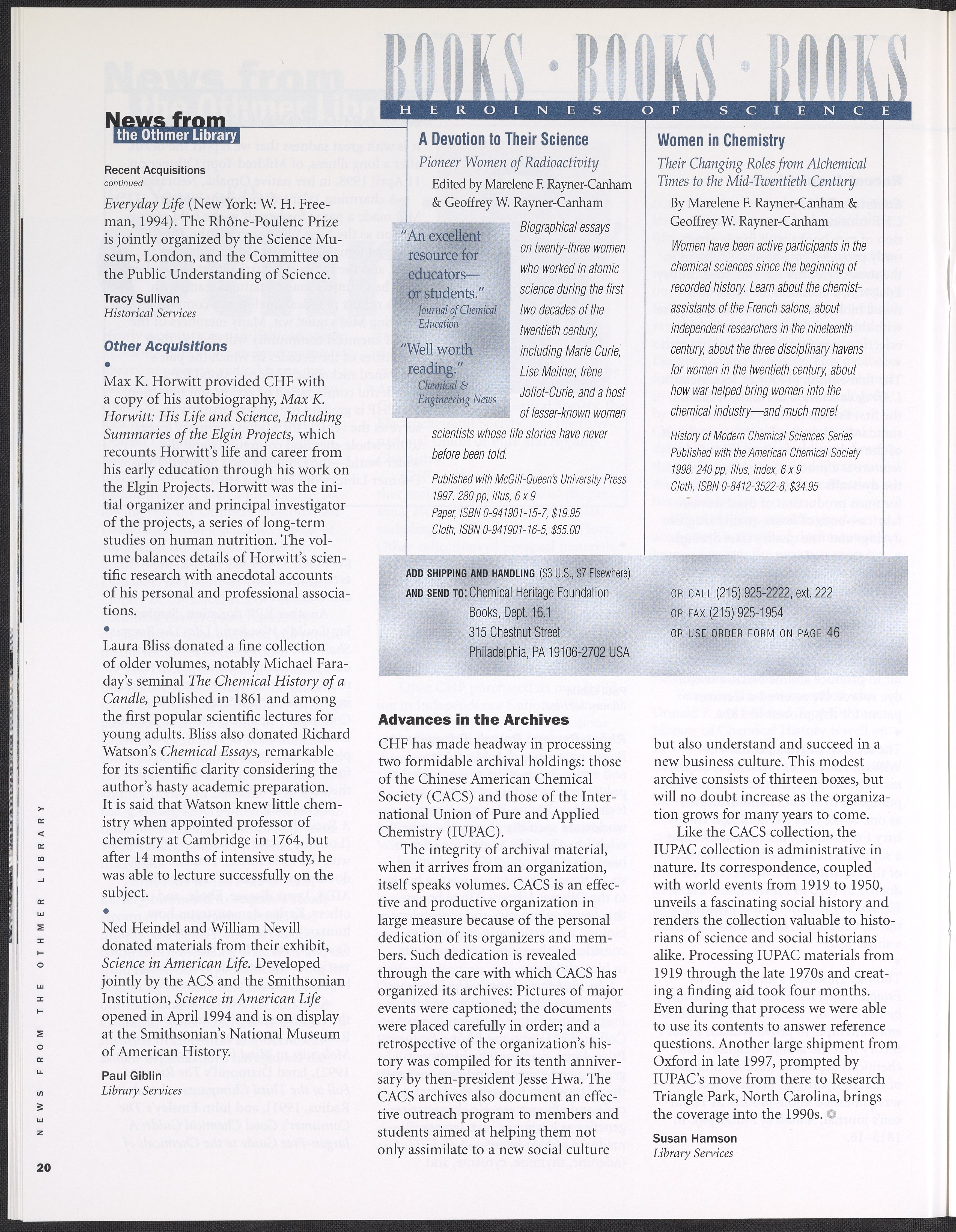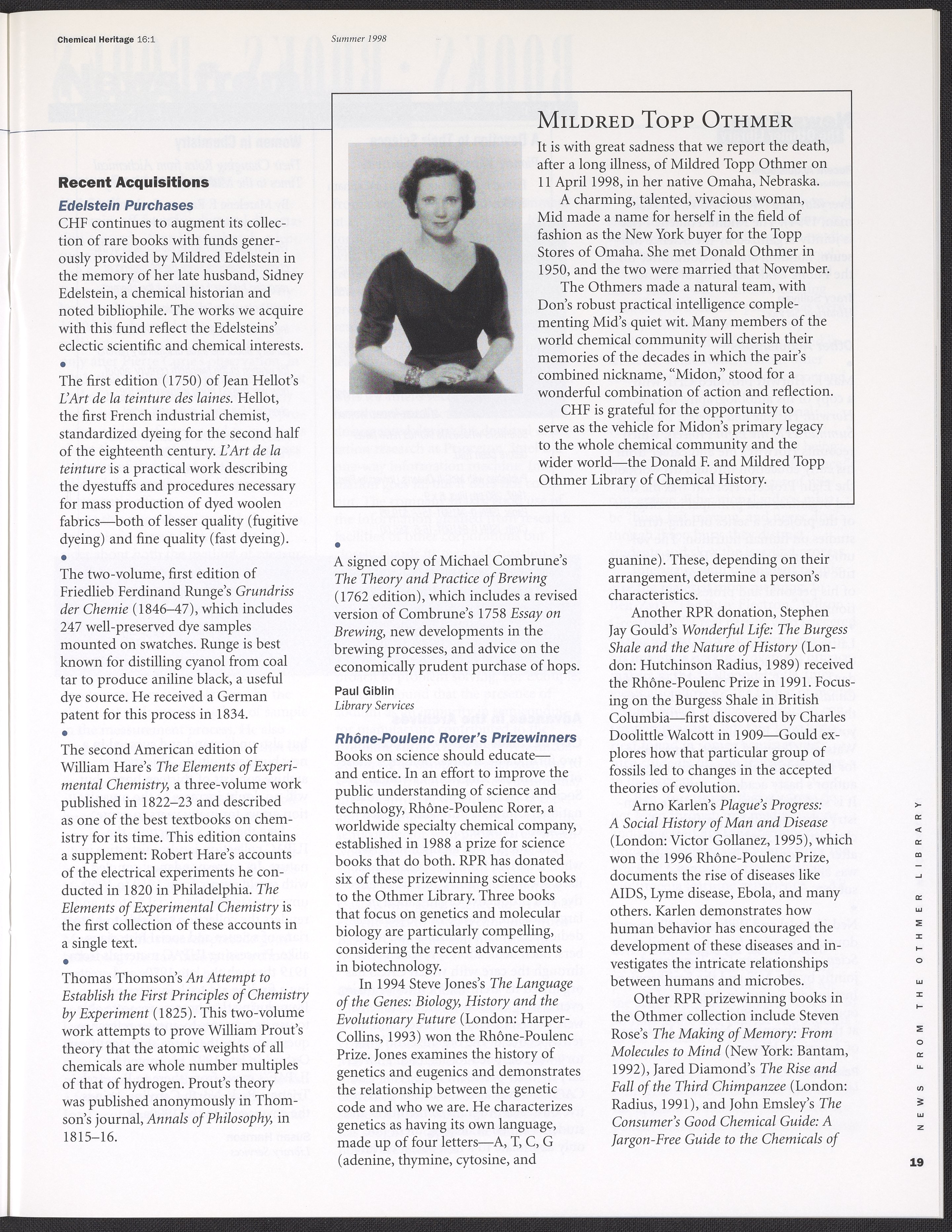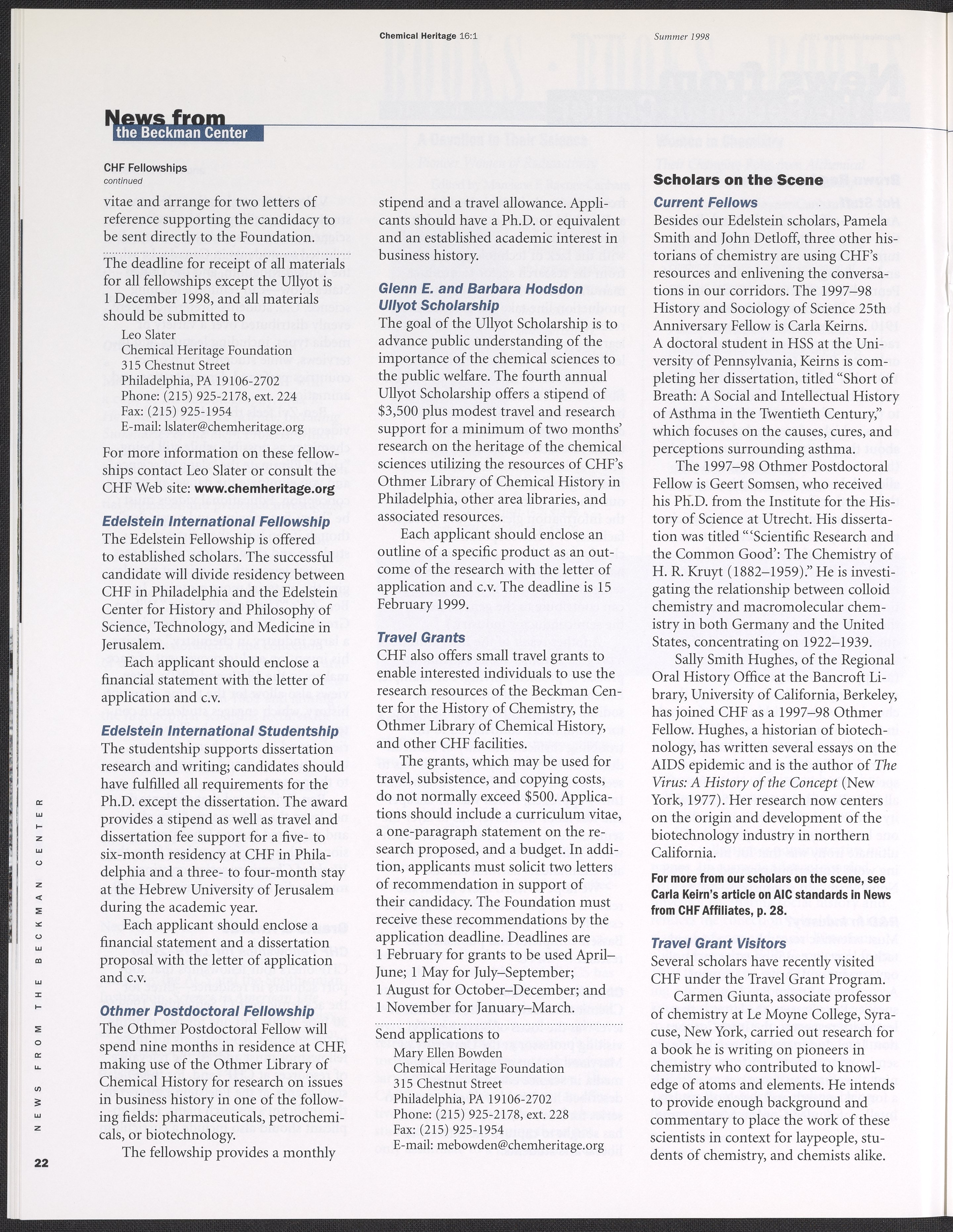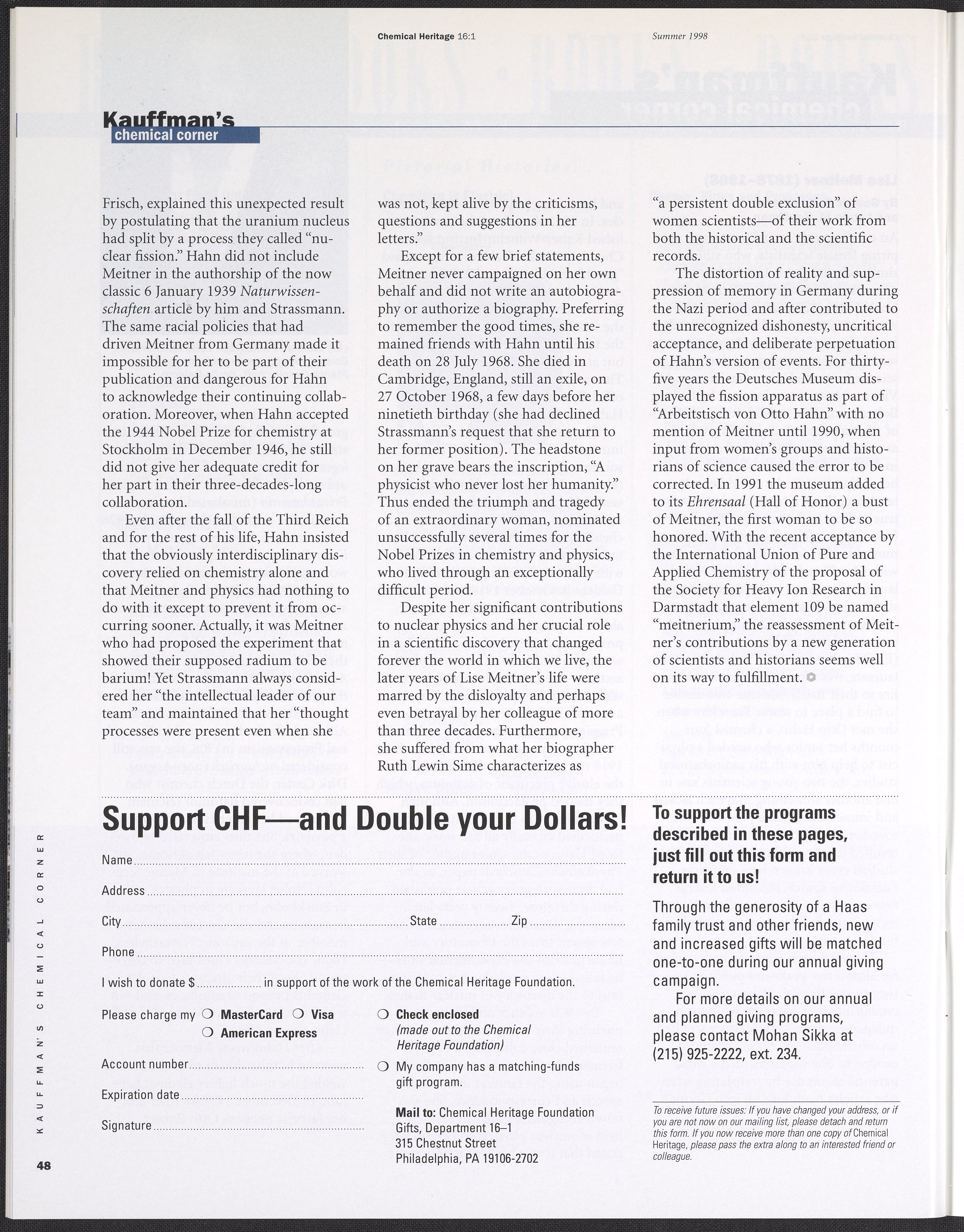 Chemical Heritage, Volume 16 Number 1