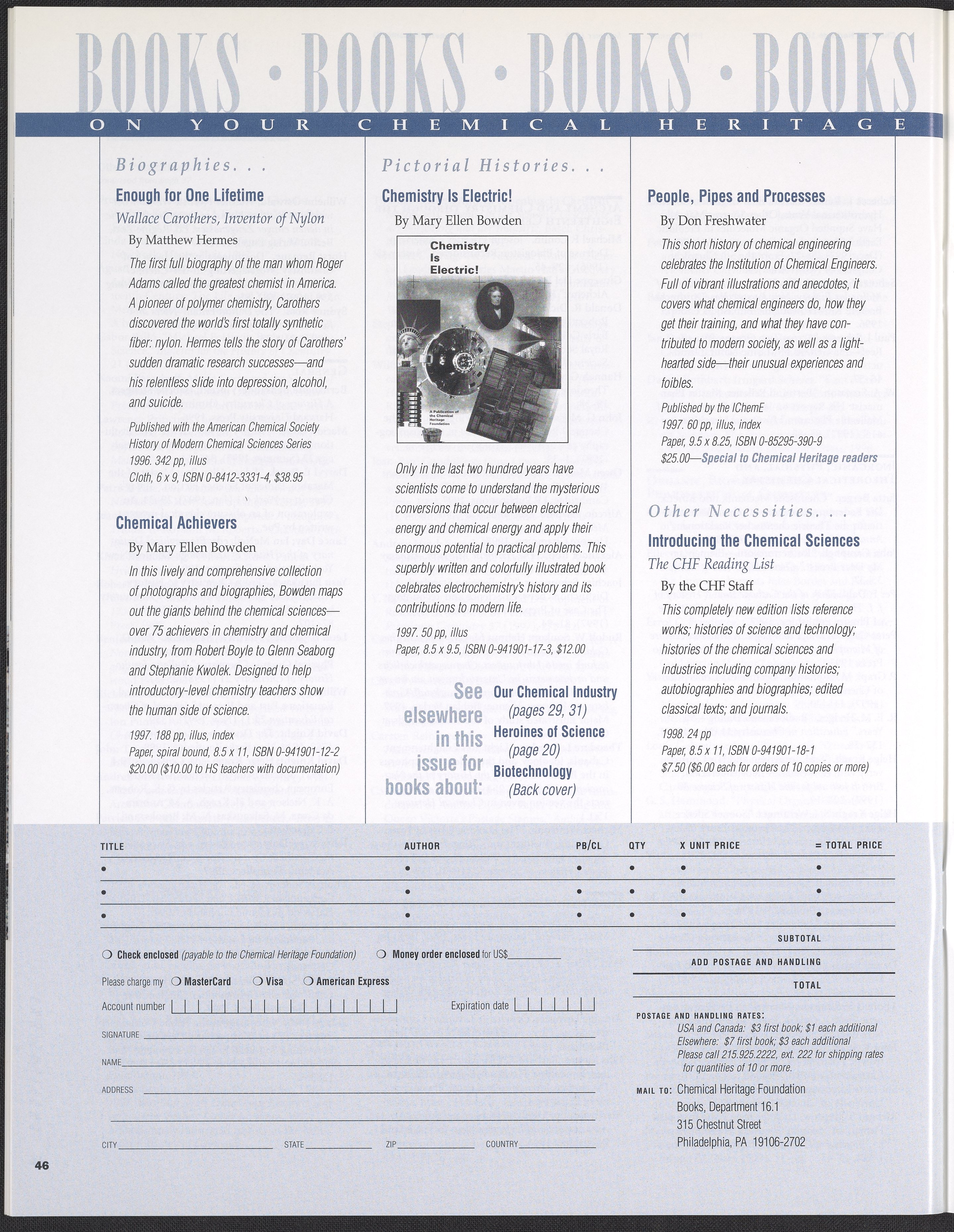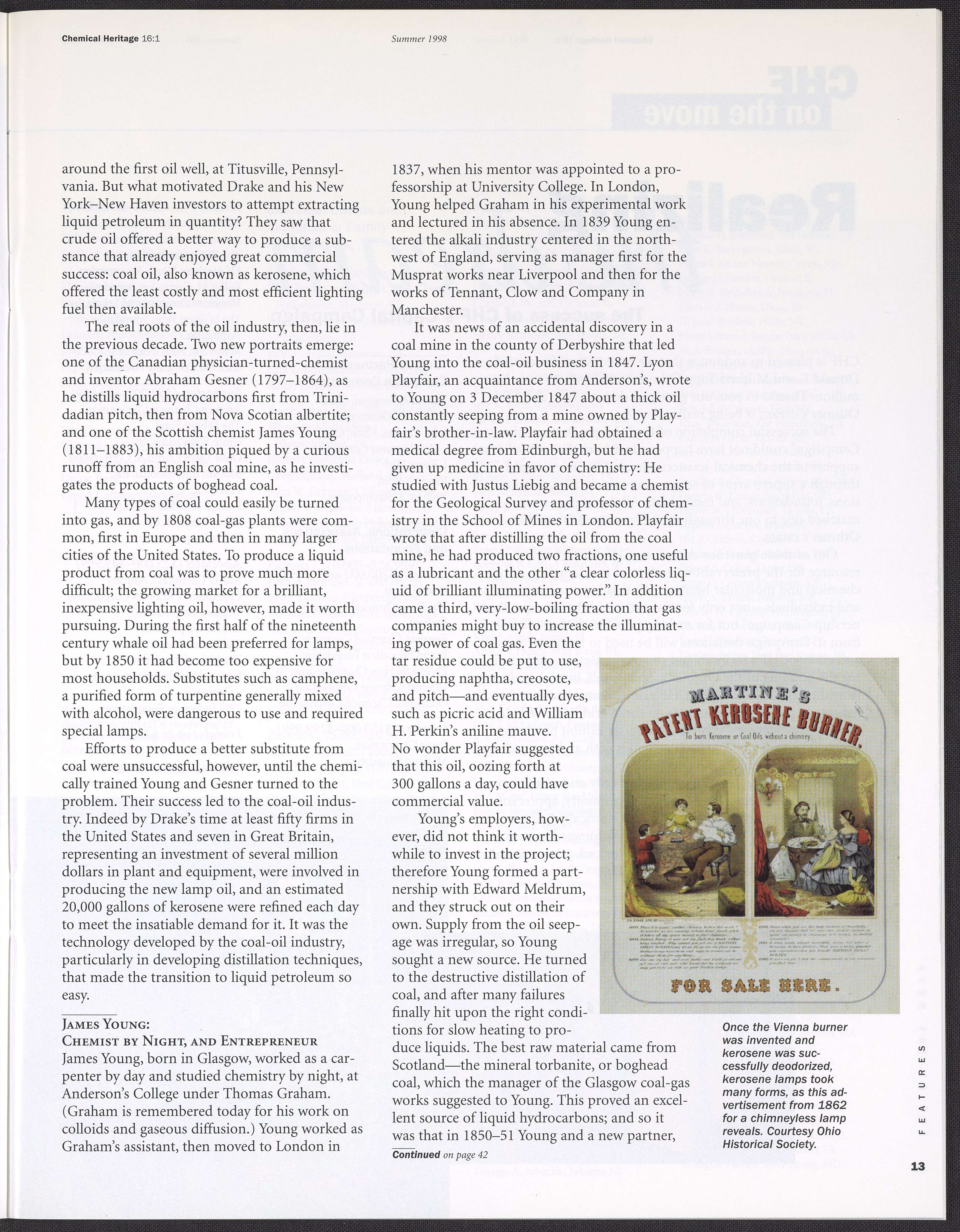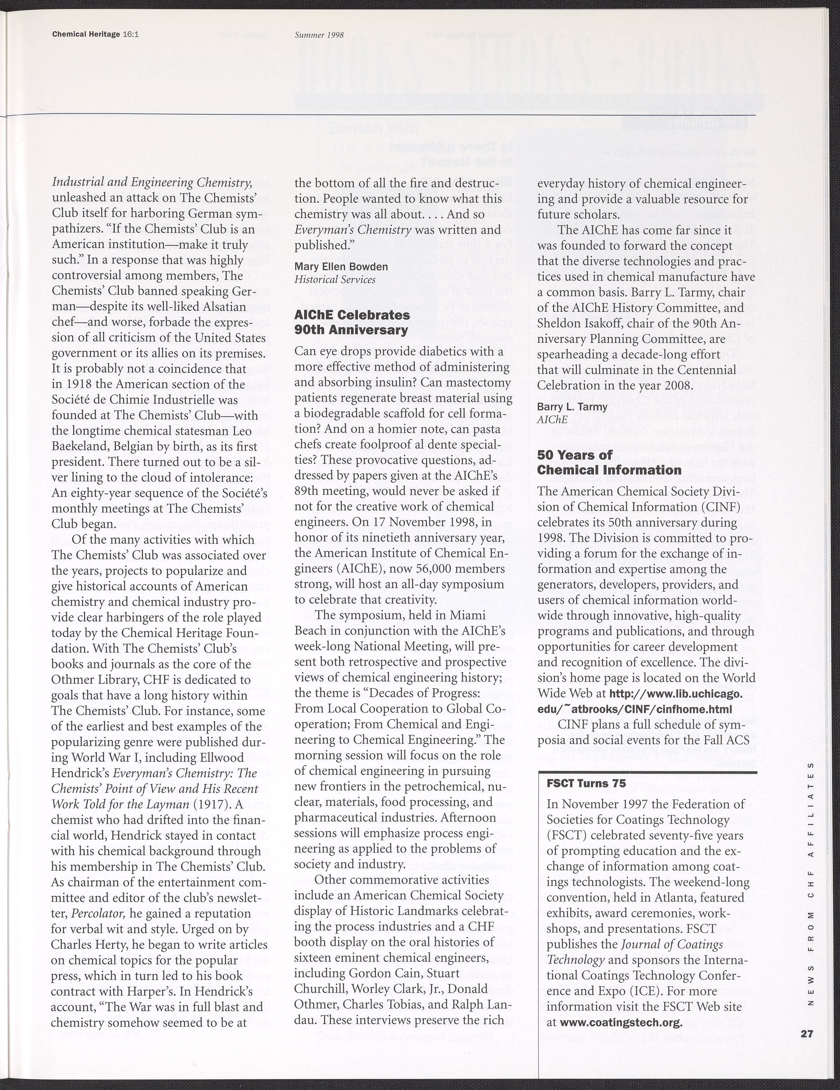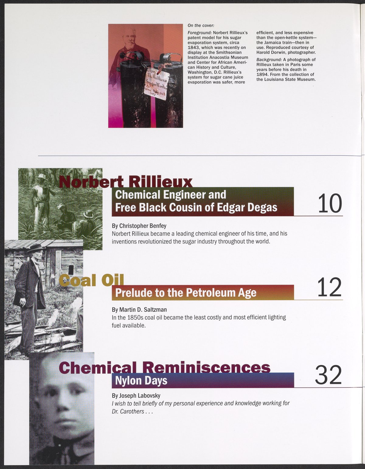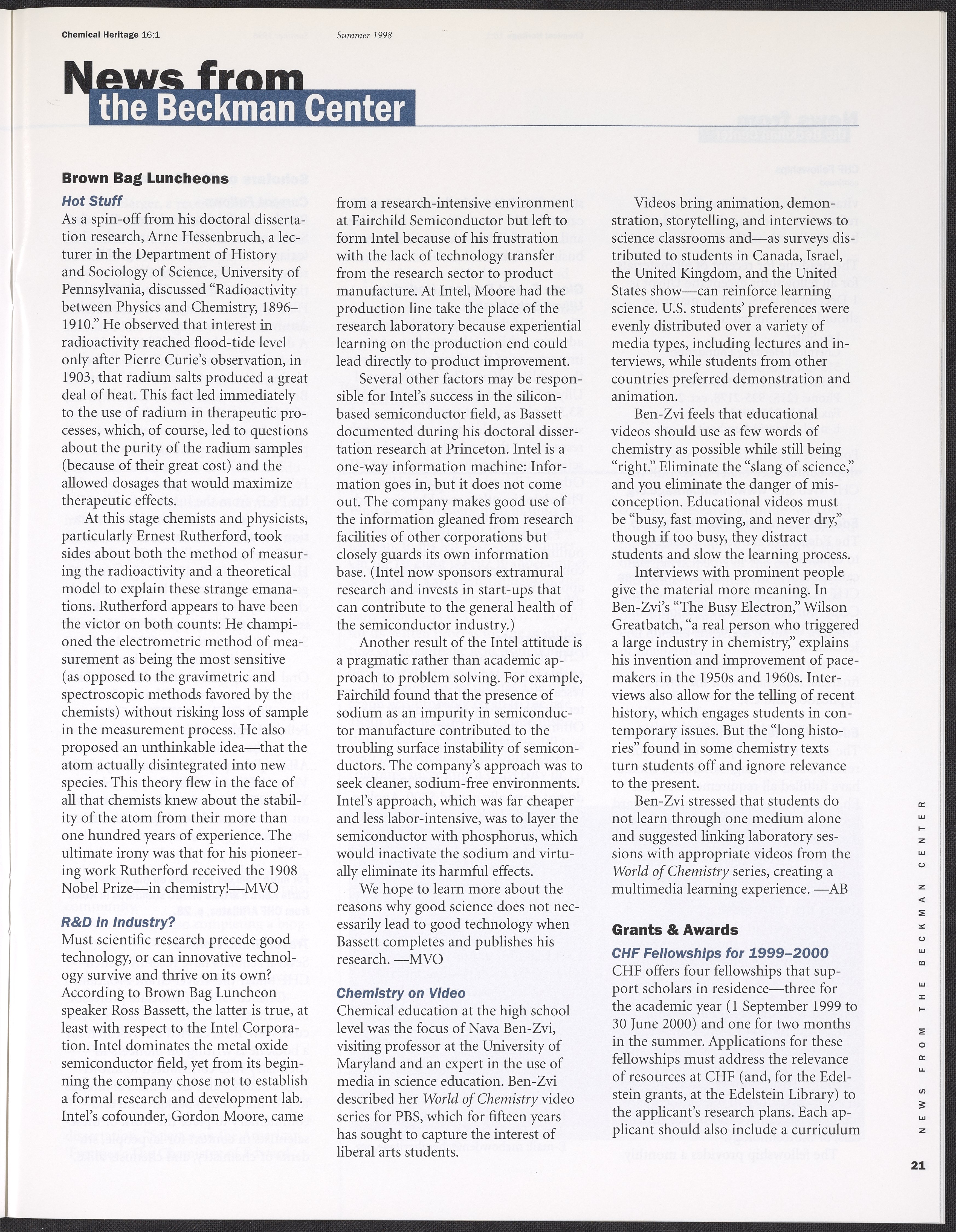 “Chemical Heritage, Volume 16 Number 1.” Philadelphia, Pennsylvania: Chemical Heritage Foundation, 1998. 099C001. Science History Institute. Philadelphia. https://digital.sciencehistory.org/works/ml0gd3o.