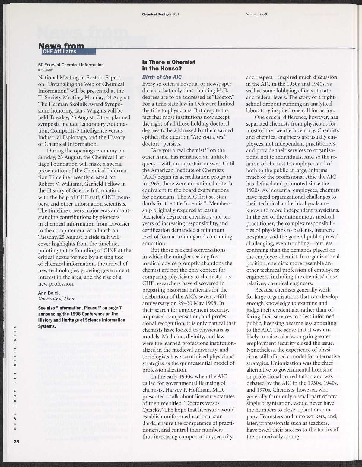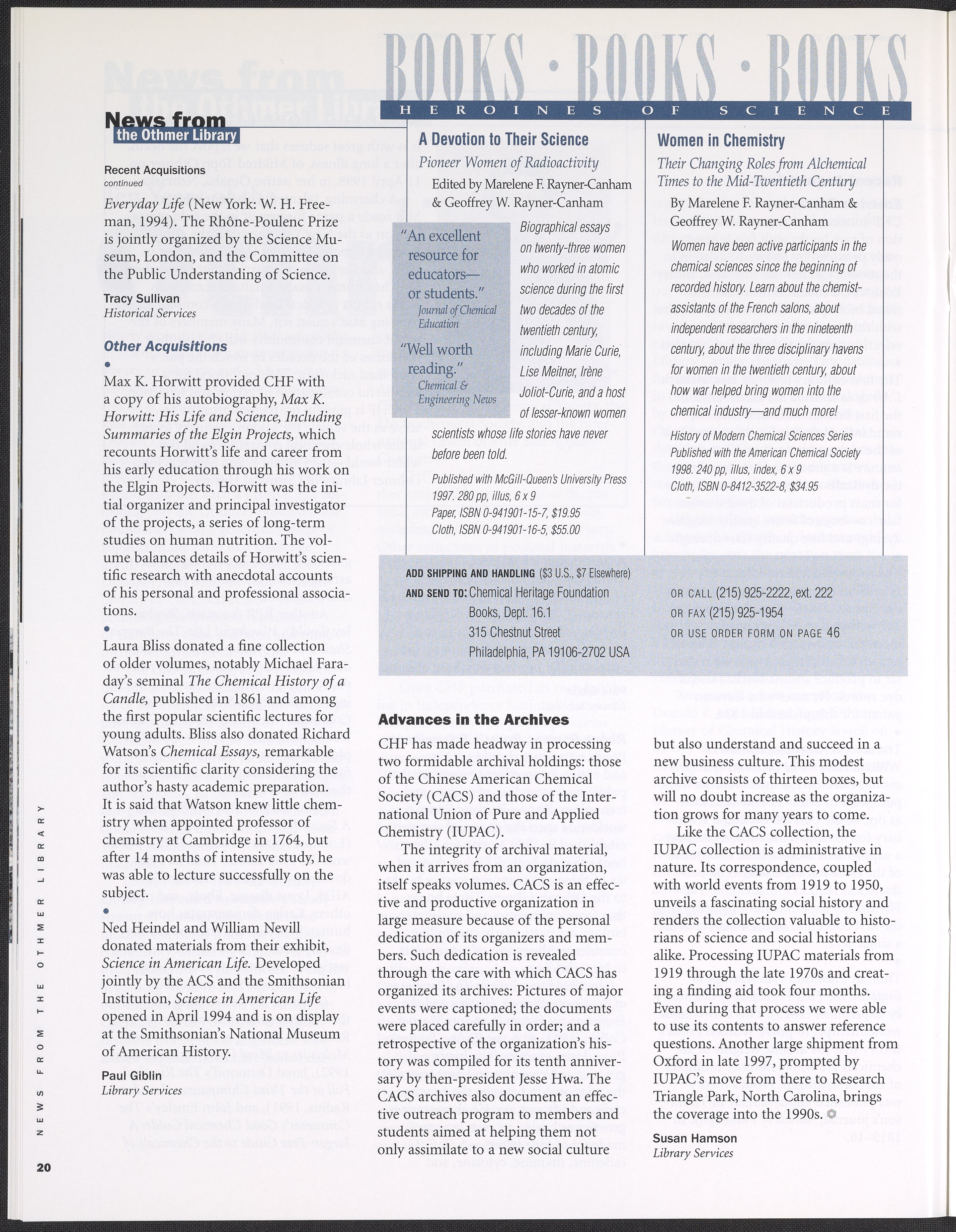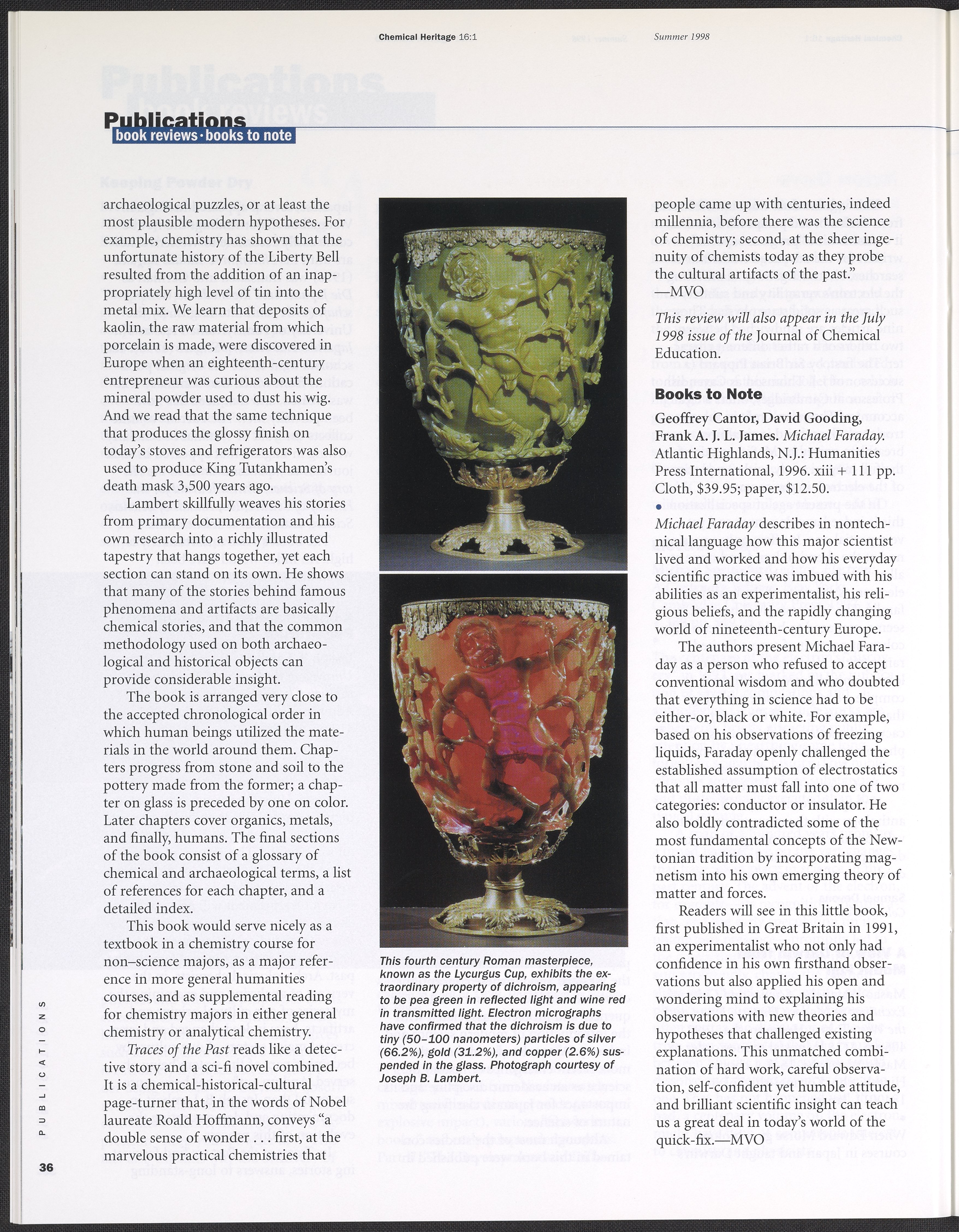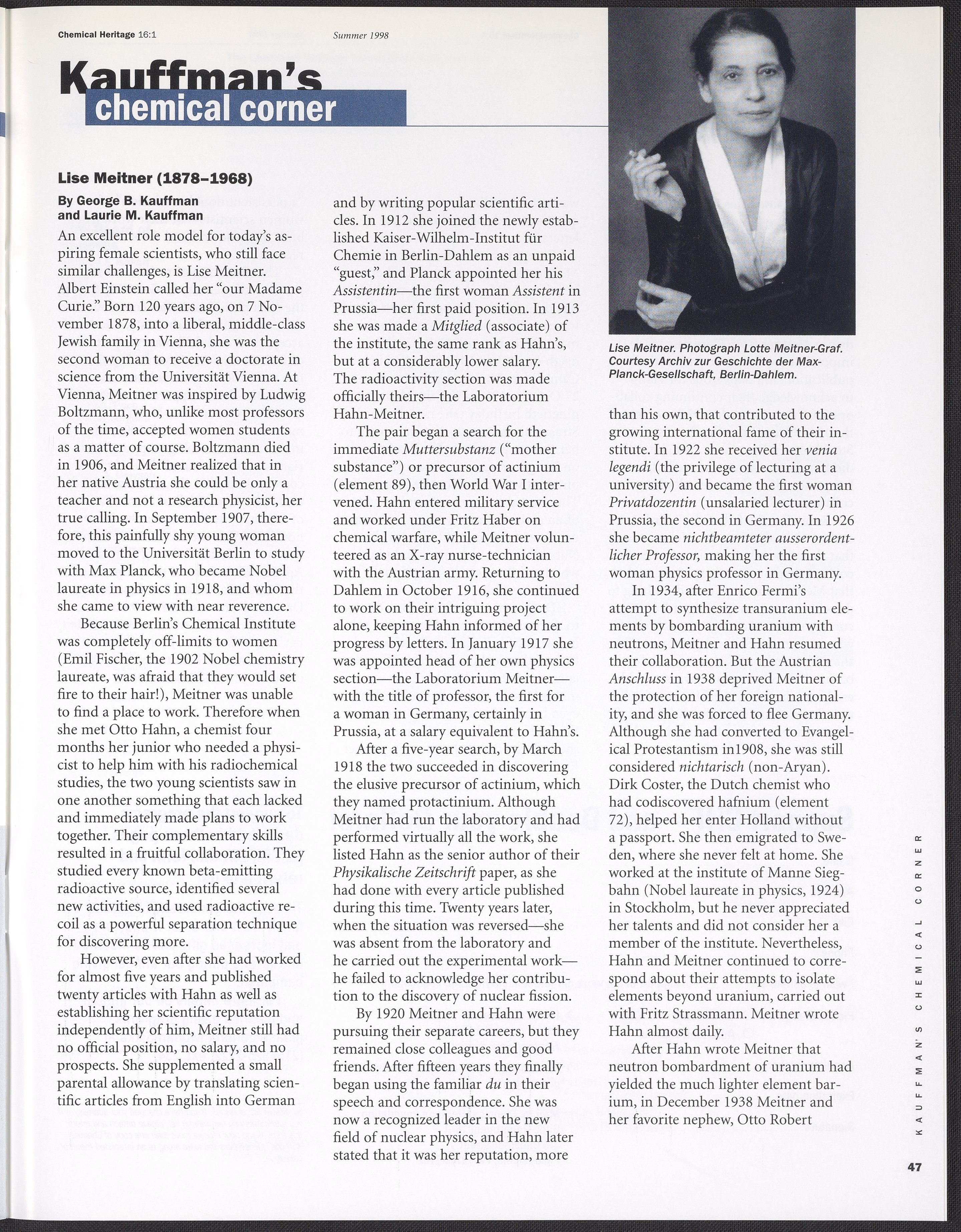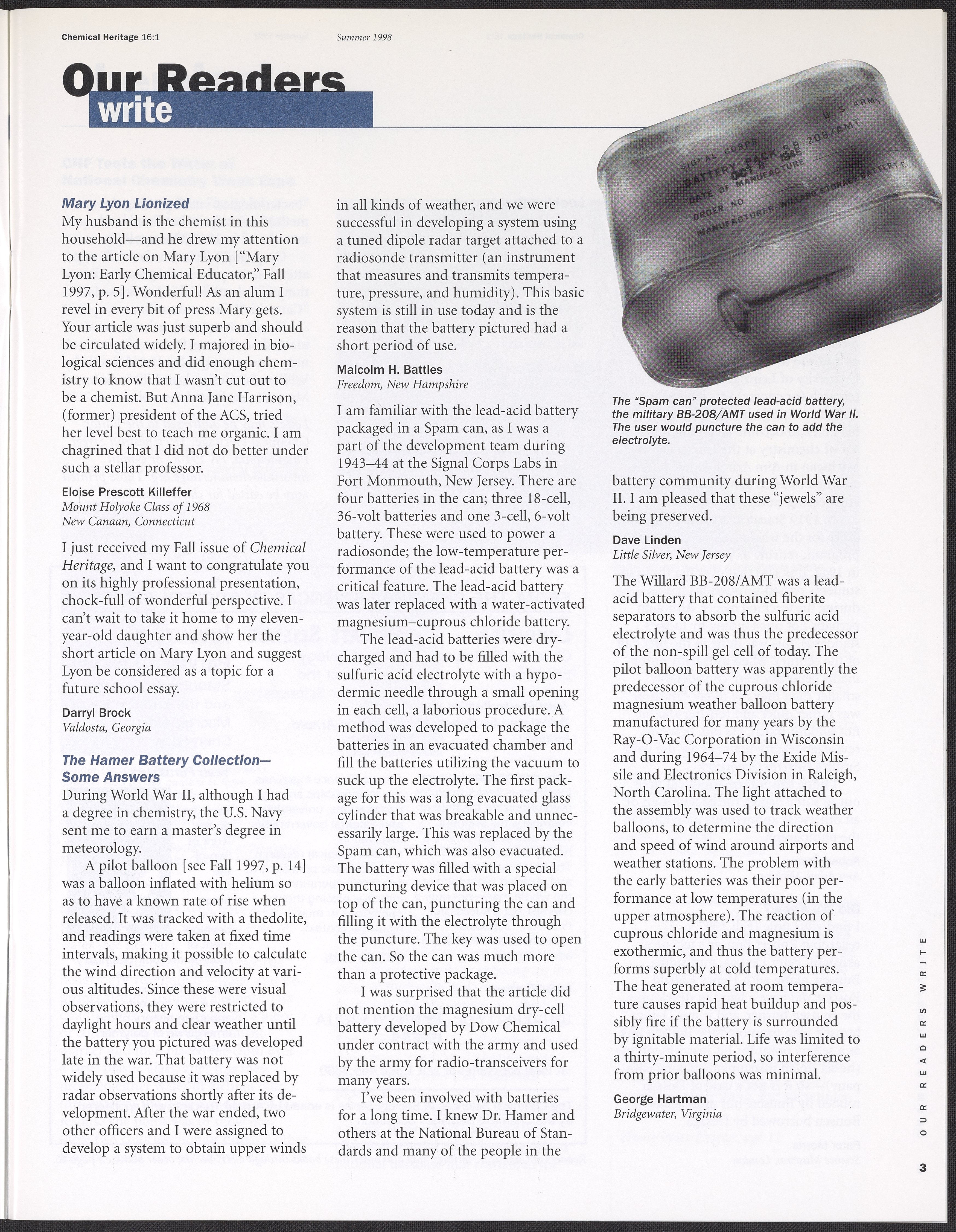 “Chemical Heritage, Volume 16 Number 1.” Philadelphia, Pennsylvania: Chemical Heritage Foundation, 1998. 099C001. Science History Institute. Philadelphia. https://digital.sciencehistory.org/works/ml0gd3o.