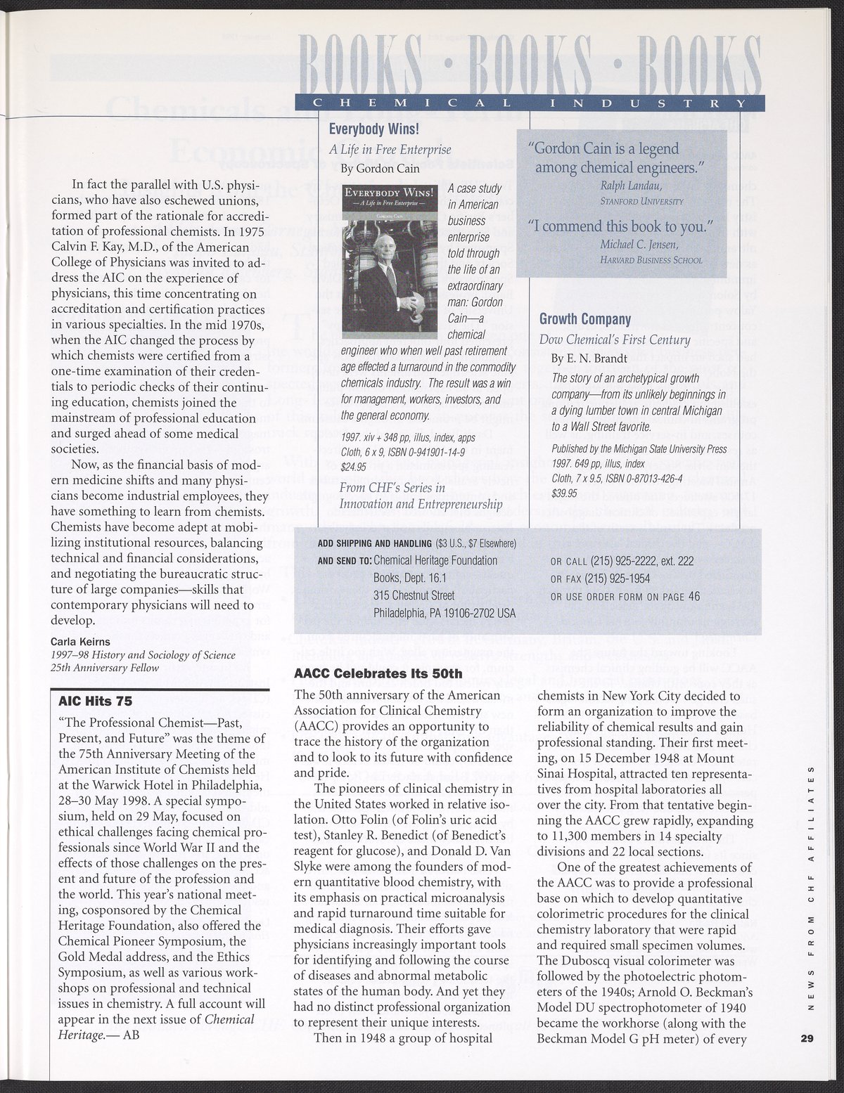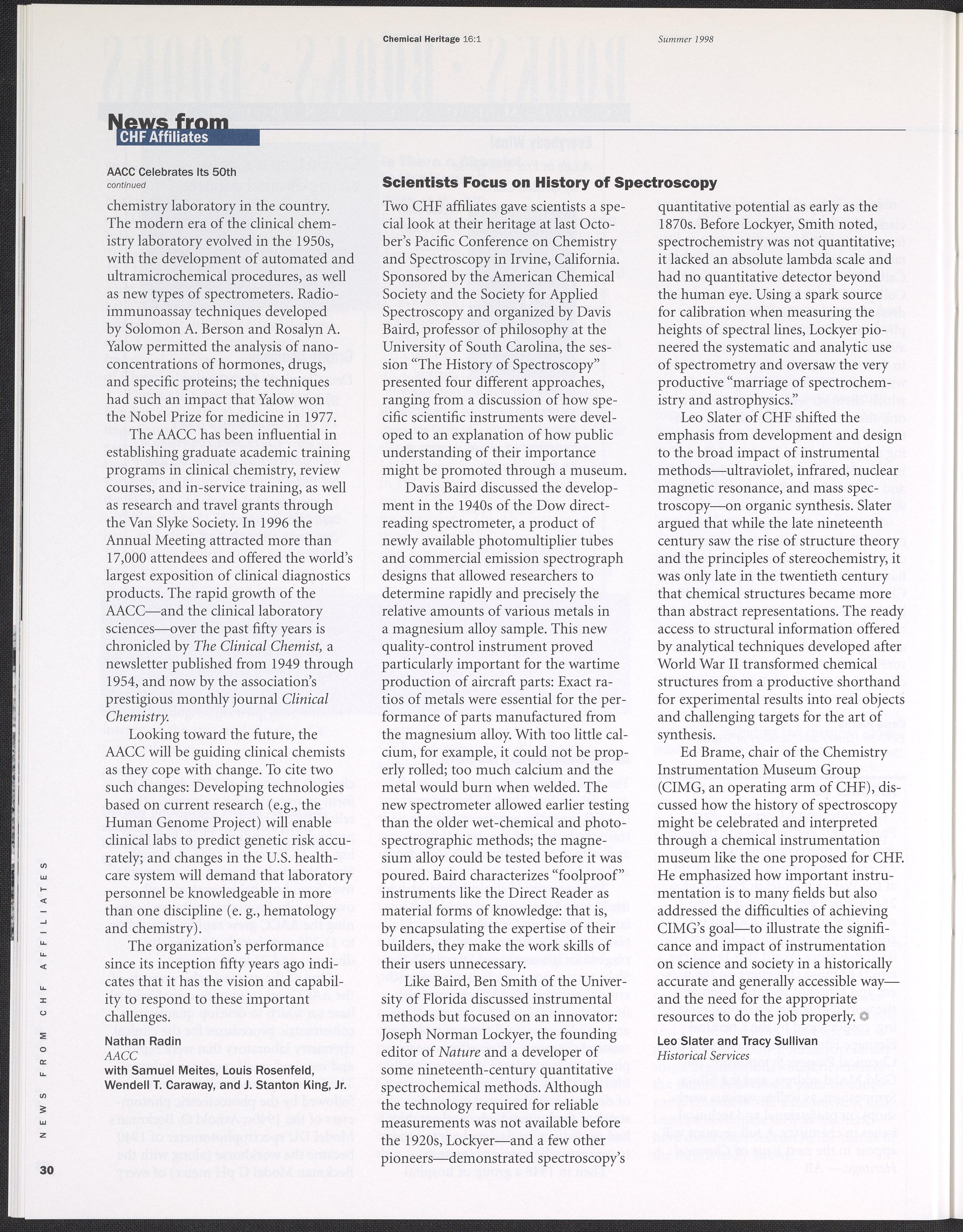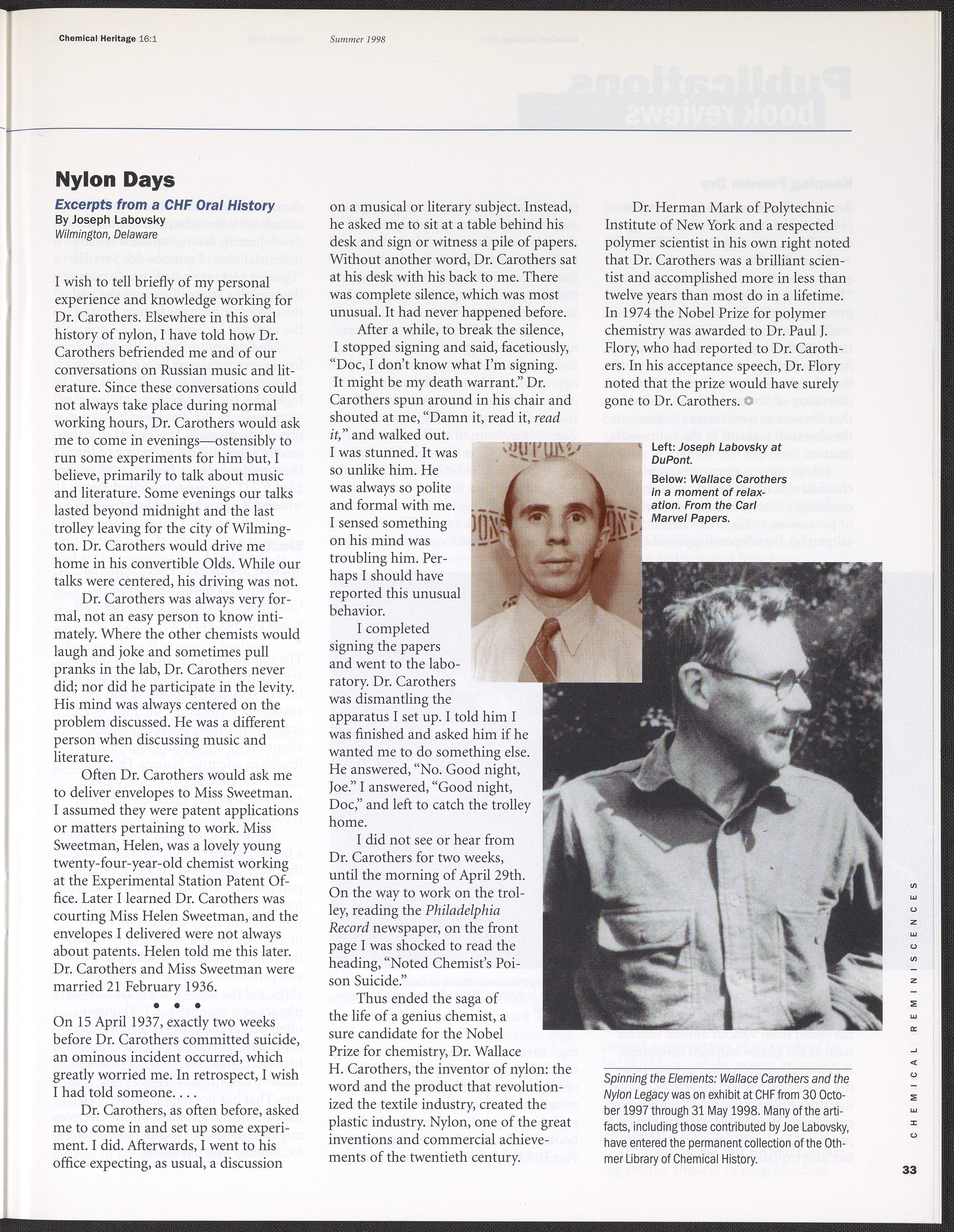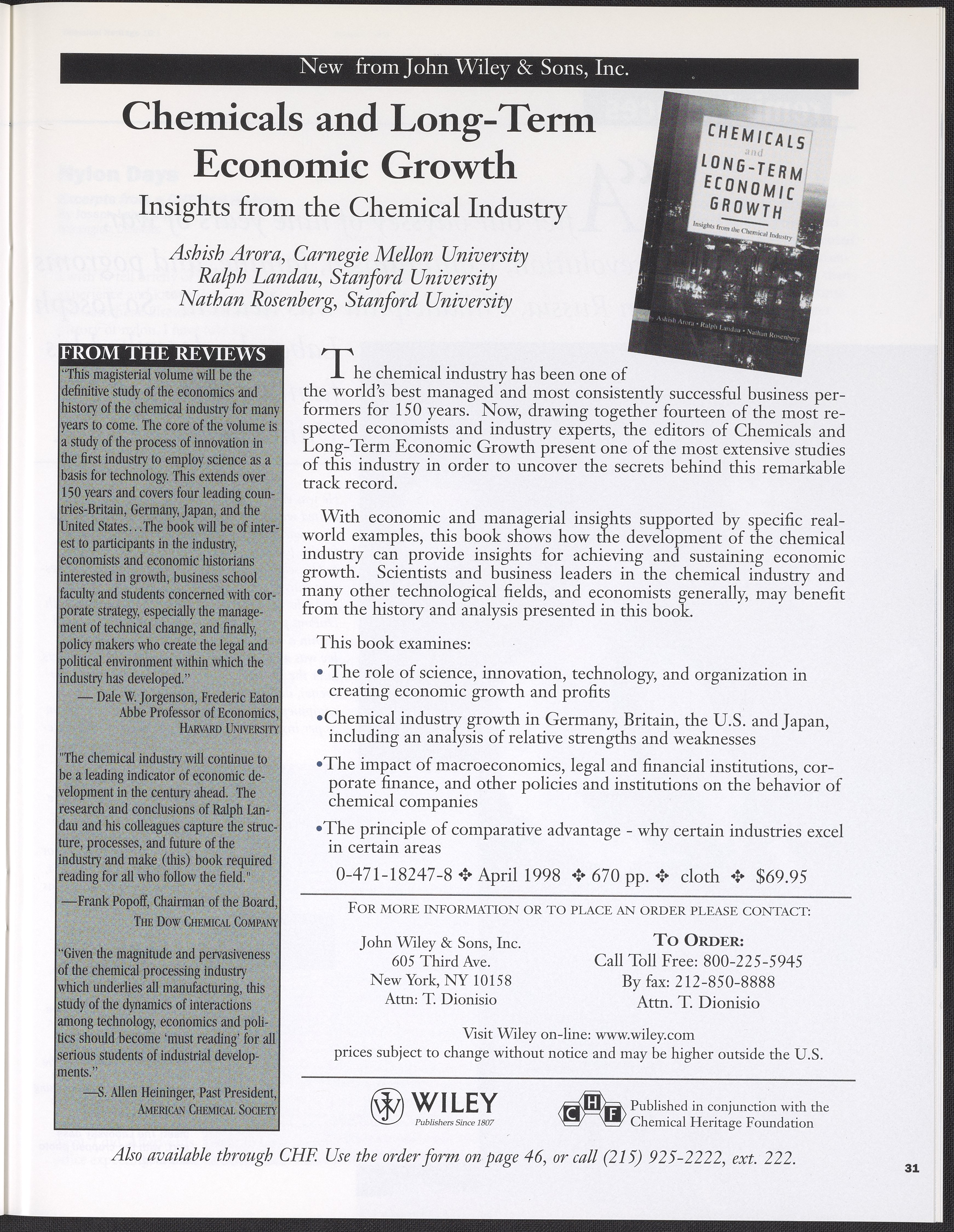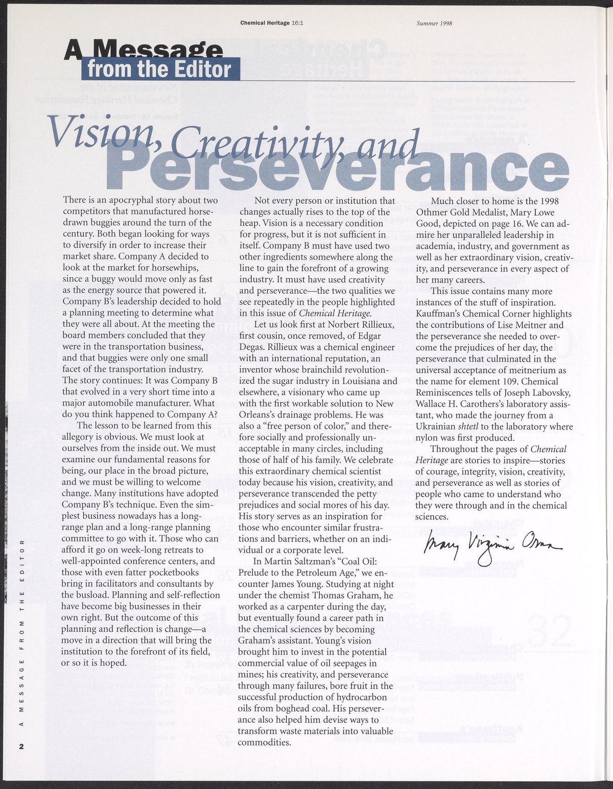 “Chemical Heritage, Volume 16 Number 1.” Philadelphia, Pennsylvania: Chemical Heritage Foundation, 1998. 099C001. Science History Institute. Philadelphia. https://digital.sciencehistory.org/works/ml0gd3o.