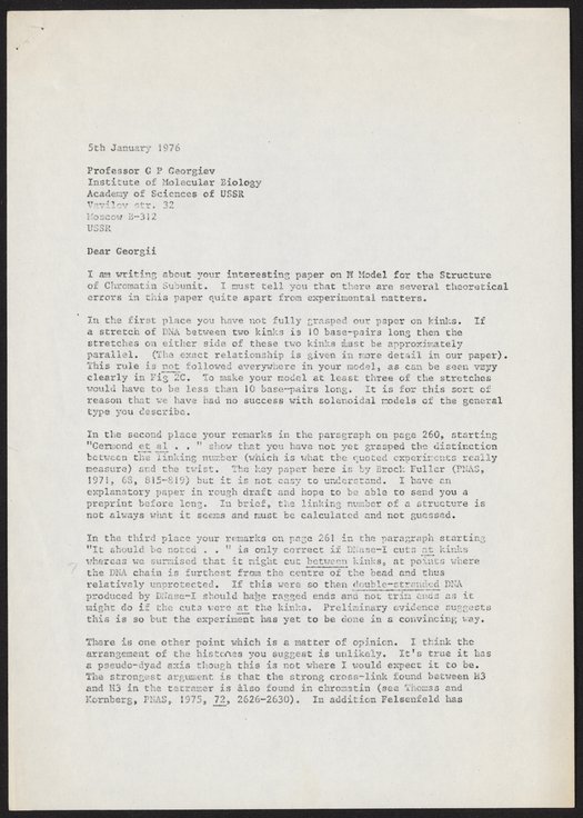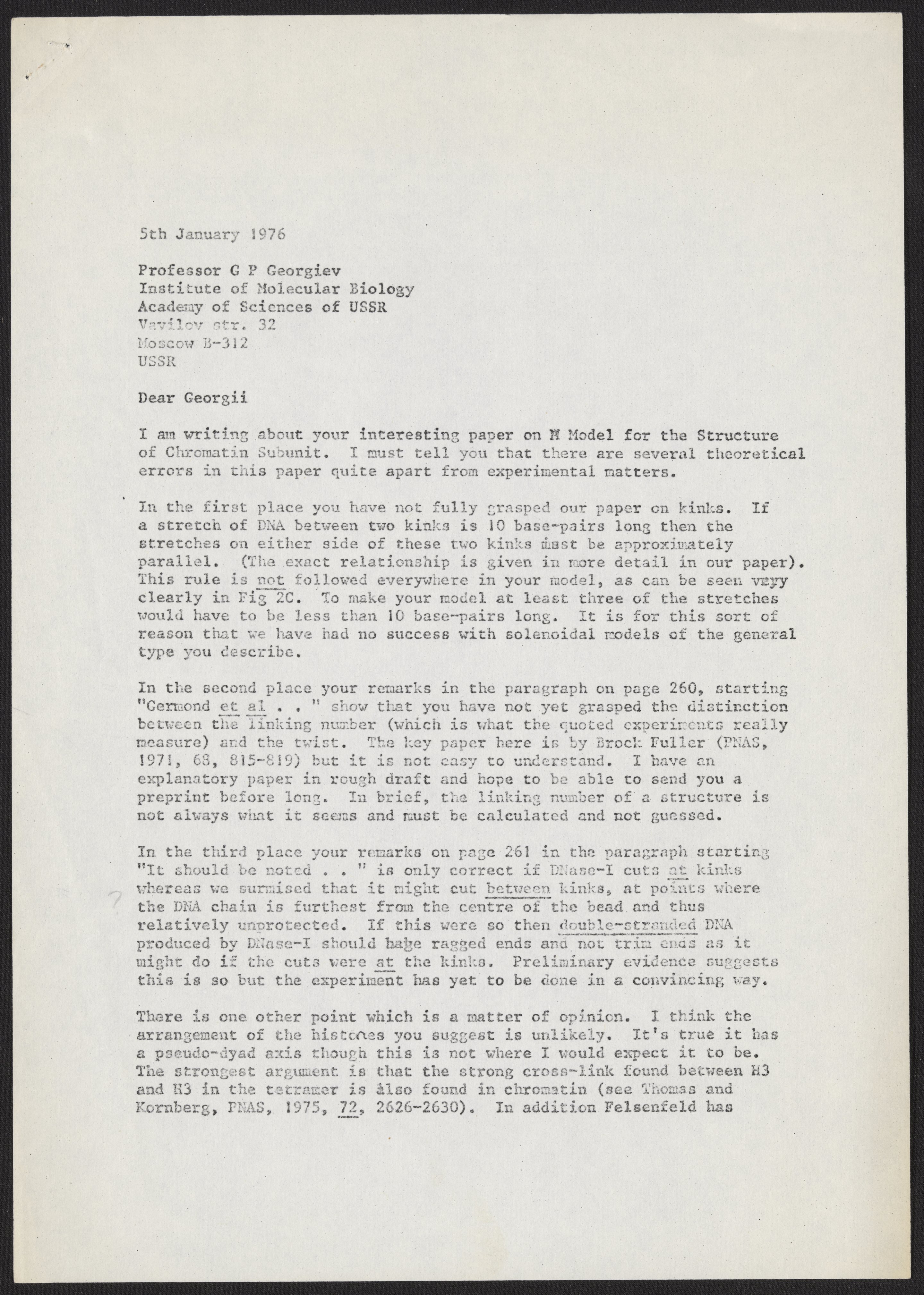 Letter from Francis Crick to Georgii Georgiev, January 5, 1976