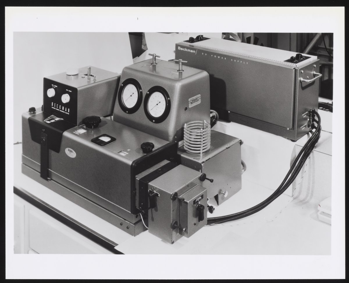 “Beckman Model DU Ultraviolet Spectrophotometer,” 1960. Beckman Historical Collection, Box 55, Folder 161. Science History Institute. Philadelphia. https://digital.sciencehistory.org/works/ms35t864j.