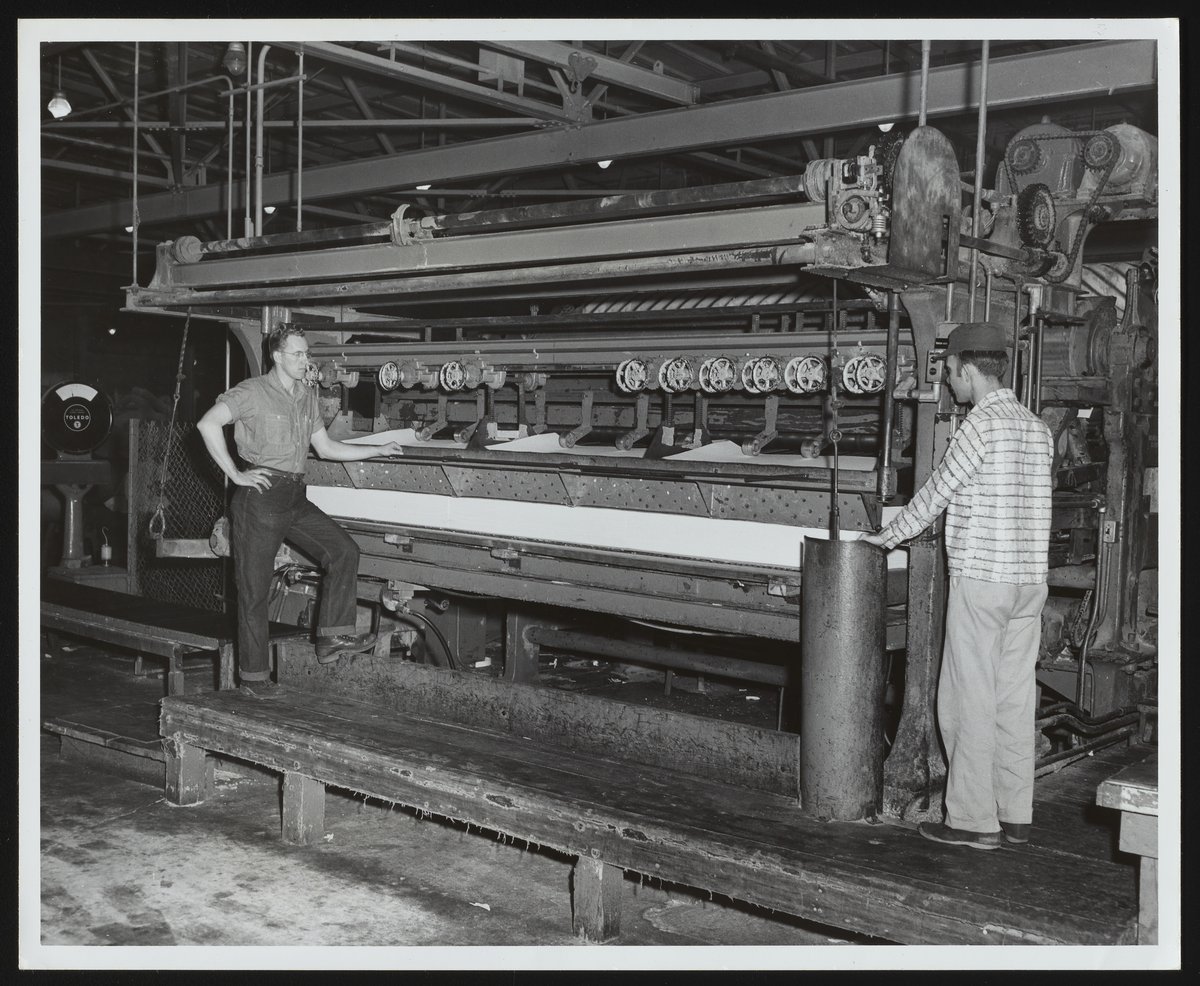 Hercules Incorporated. “Employees at Work in Sheeting Department at Hercules Hopewell Plant,” 1957. Photographs from the Records & Ephemera of Hercules Incorporated, Box 1, Folder 37. Science History Institute. Philadelphia. https://digital.sciencehistory.org/works/ms35t9448.