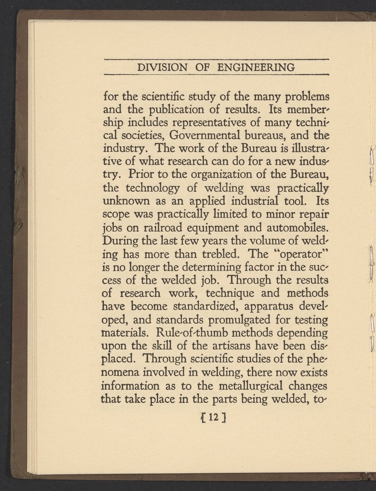 Small JPG1200 x 1578px — 207 KBFull-sized JPG2004 x 2636px — 517 KBOriginal fileTIFF — 2004 x 2636px — 15.2 MBPamphlet providing an introduction the the Division of Engineering and Industrial Research of the National Research Council. Describes the division's promotional activities, projects, international relations, and policies and expectations. Work is fully digitized.