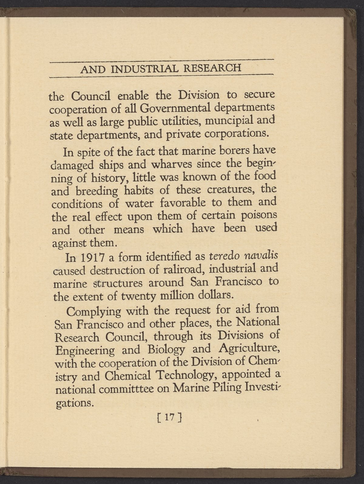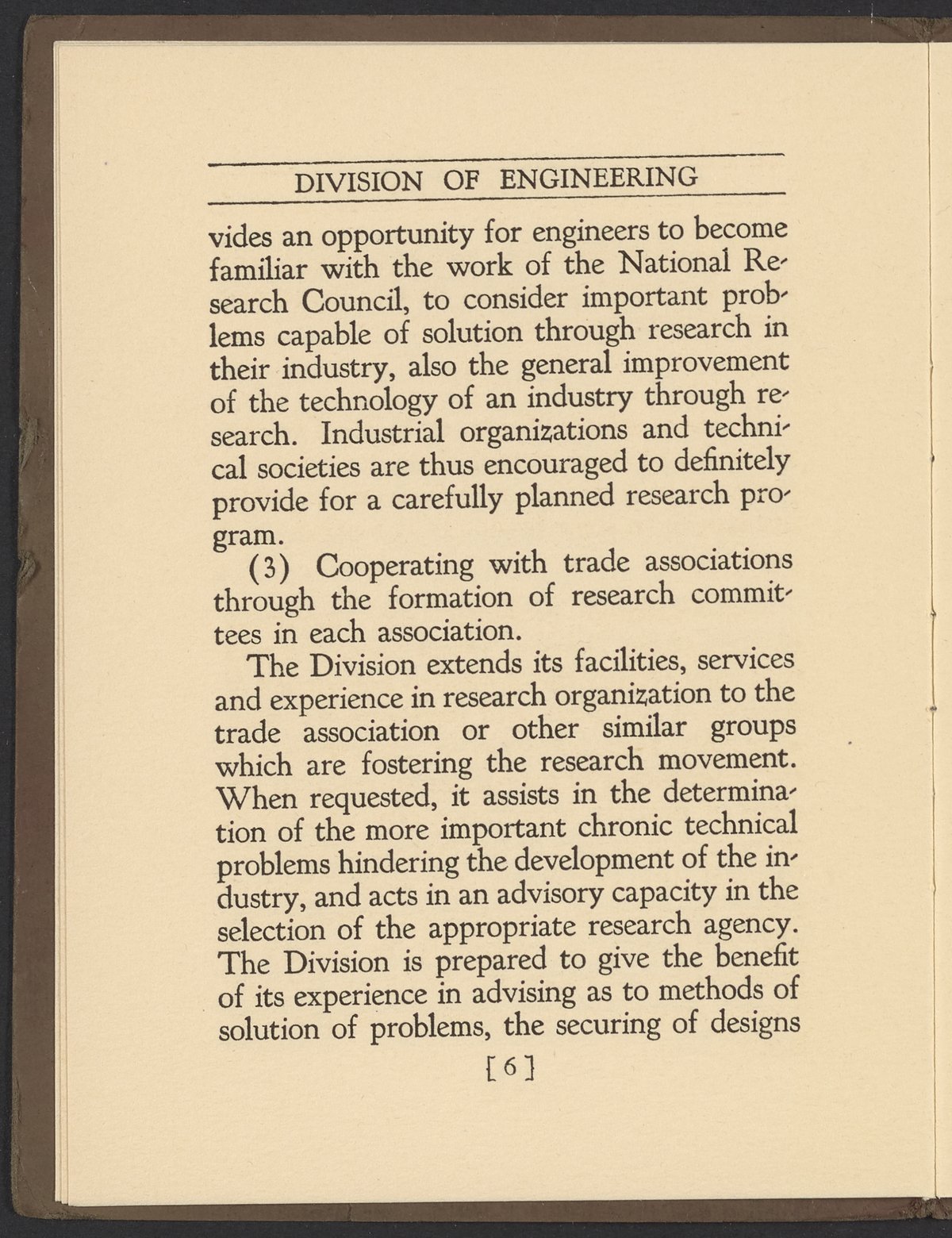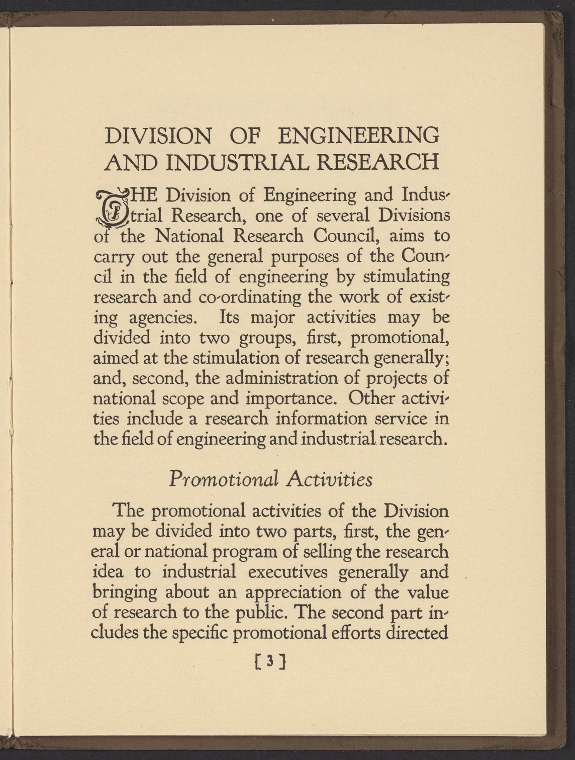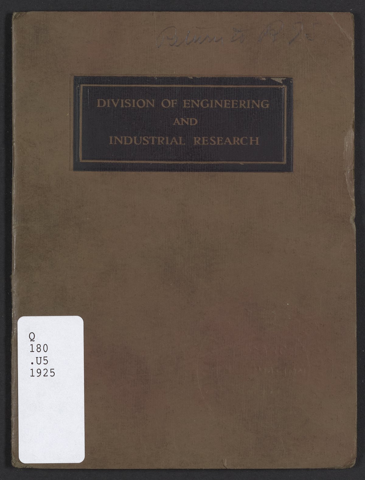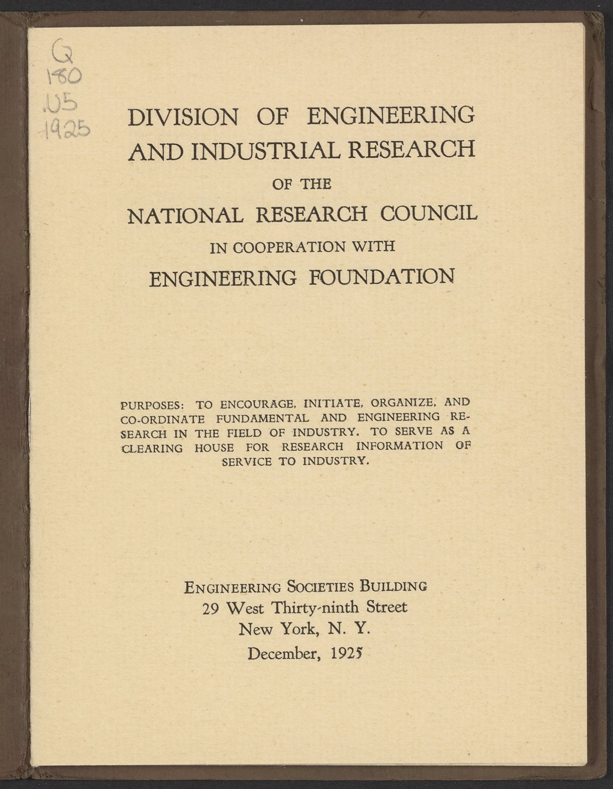 National Research Council (U.S.). Division of Engineering and Industrial Research, and Ambrose Swasey. “Division of Engineering and Industrial Research of the National Research Council in Cooperation with Engineering Foundation.” New York, New York: National Research Council (U.S.), 1925. Q180 .U5 1925. Science History Institute. Philadelphia. https://digital.sciencehistory.org/works/n4sjpmp.