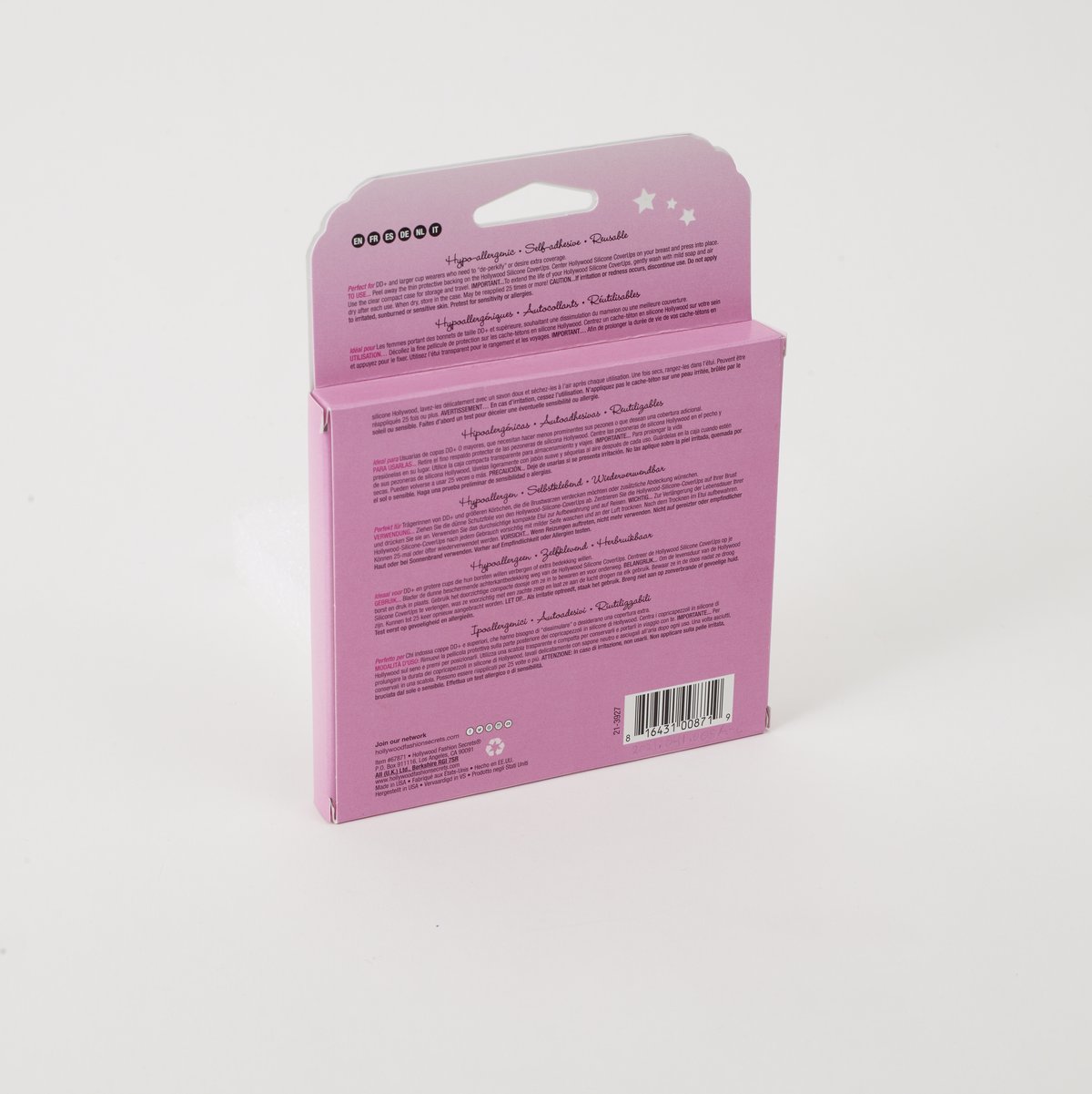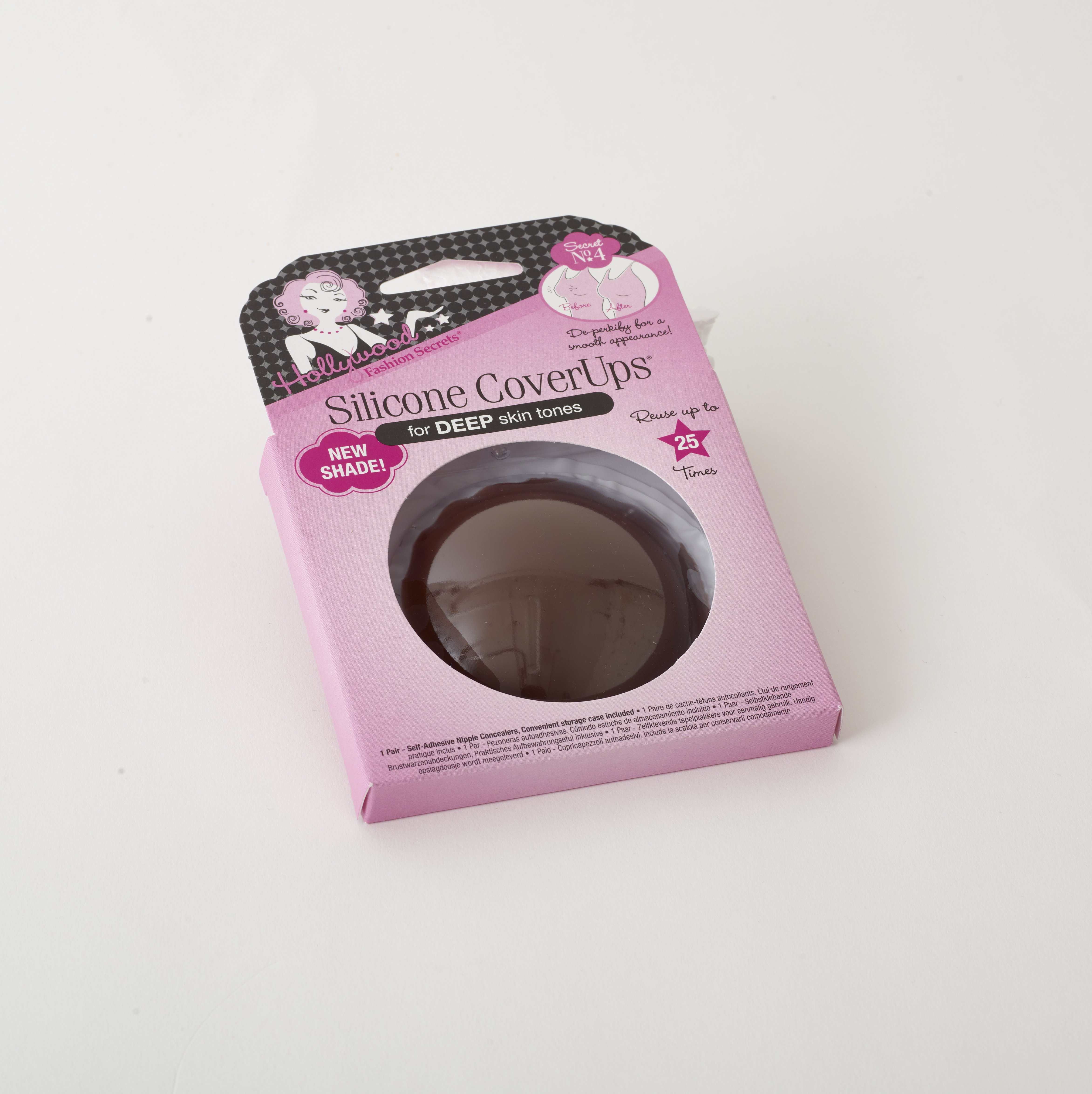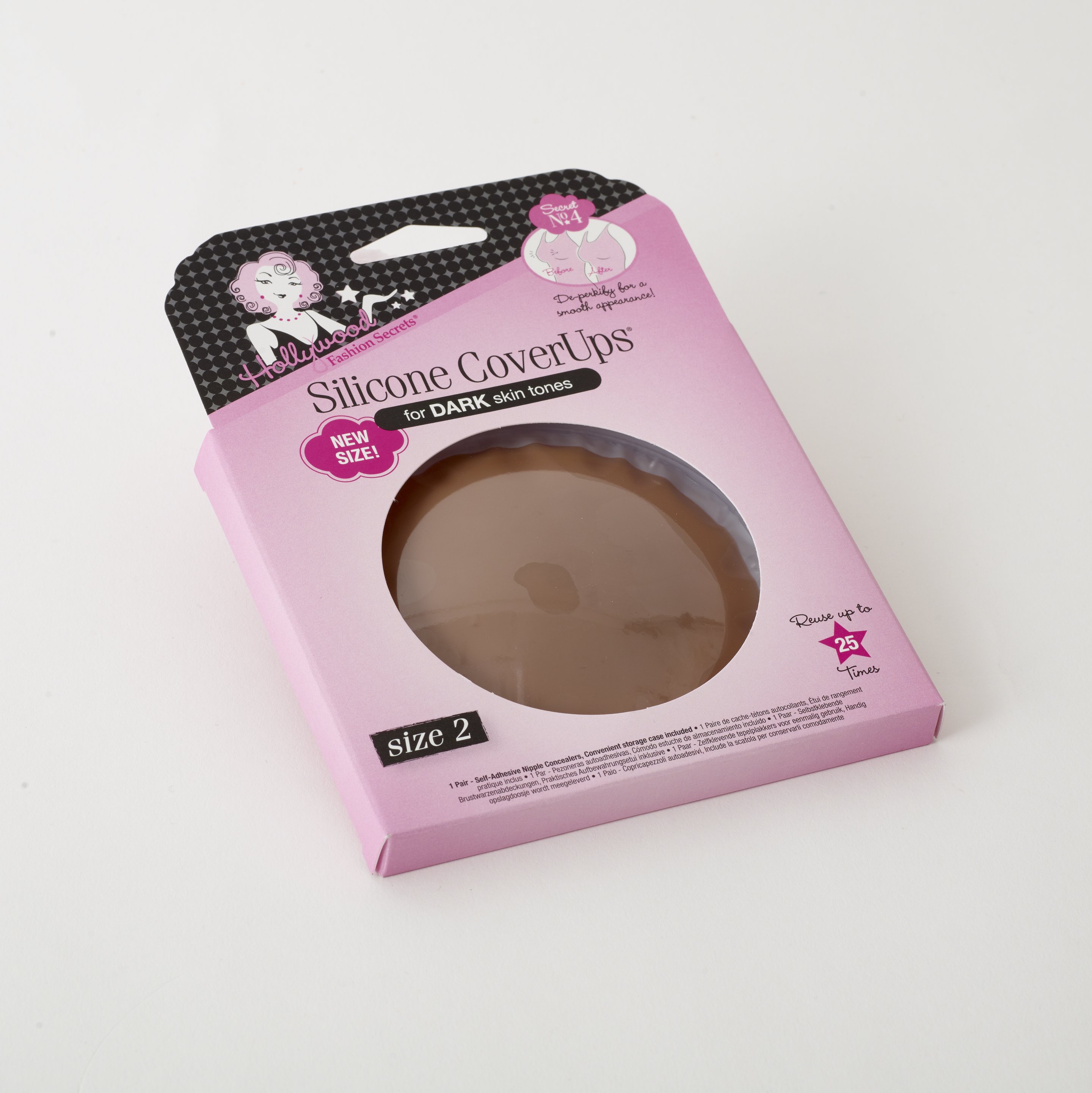 Small JPG1200 x 1202px — 96.3 KBLarge JPG2880 x 2884px — 509 KBFull-sized JPG4689 x 4696px — 1.4 MBOriginal fileTIFF — 4689 x 4696px — 63.1 MBThree varieties of circular cover-up pasties for skin tones "dark," "deep," and "light" produced by the Hollywood Fashion Secrets Company. Each product is encased in pink cardboard packaging with a clear plastic window. Two pasties are size 1 and the other is size 2.