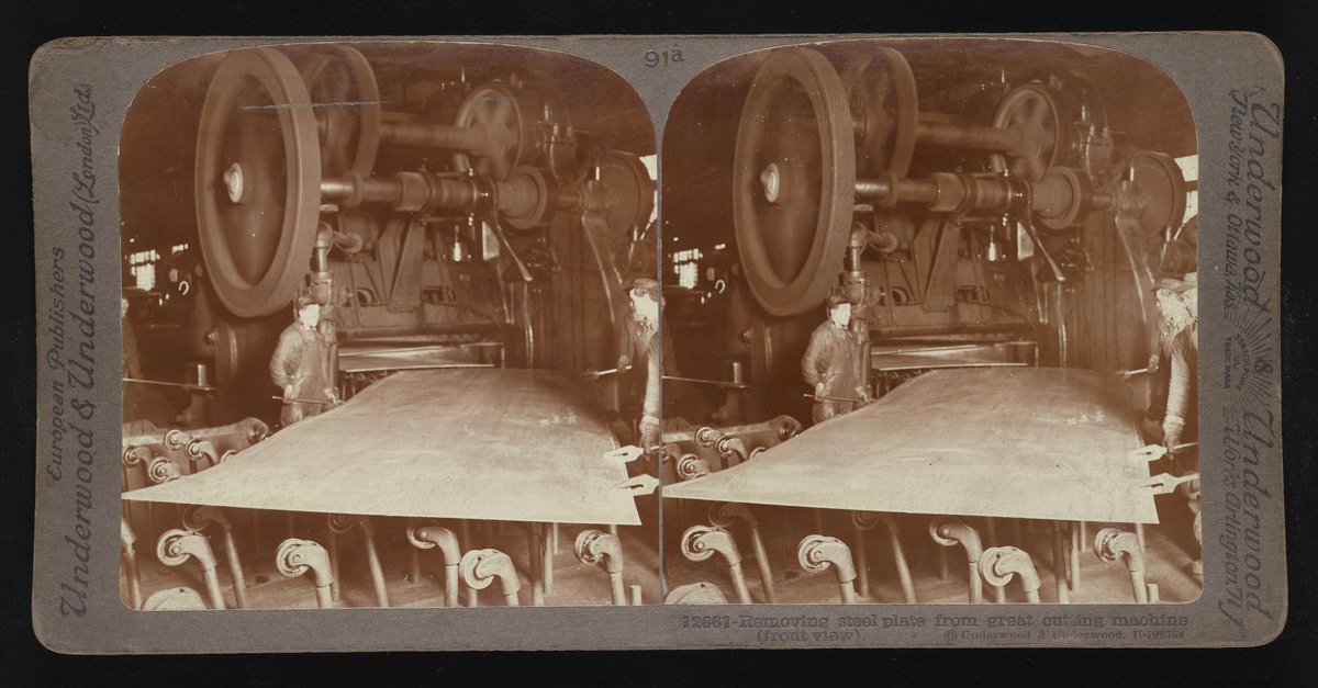 Removing steel plate from great cutting machine (front view)