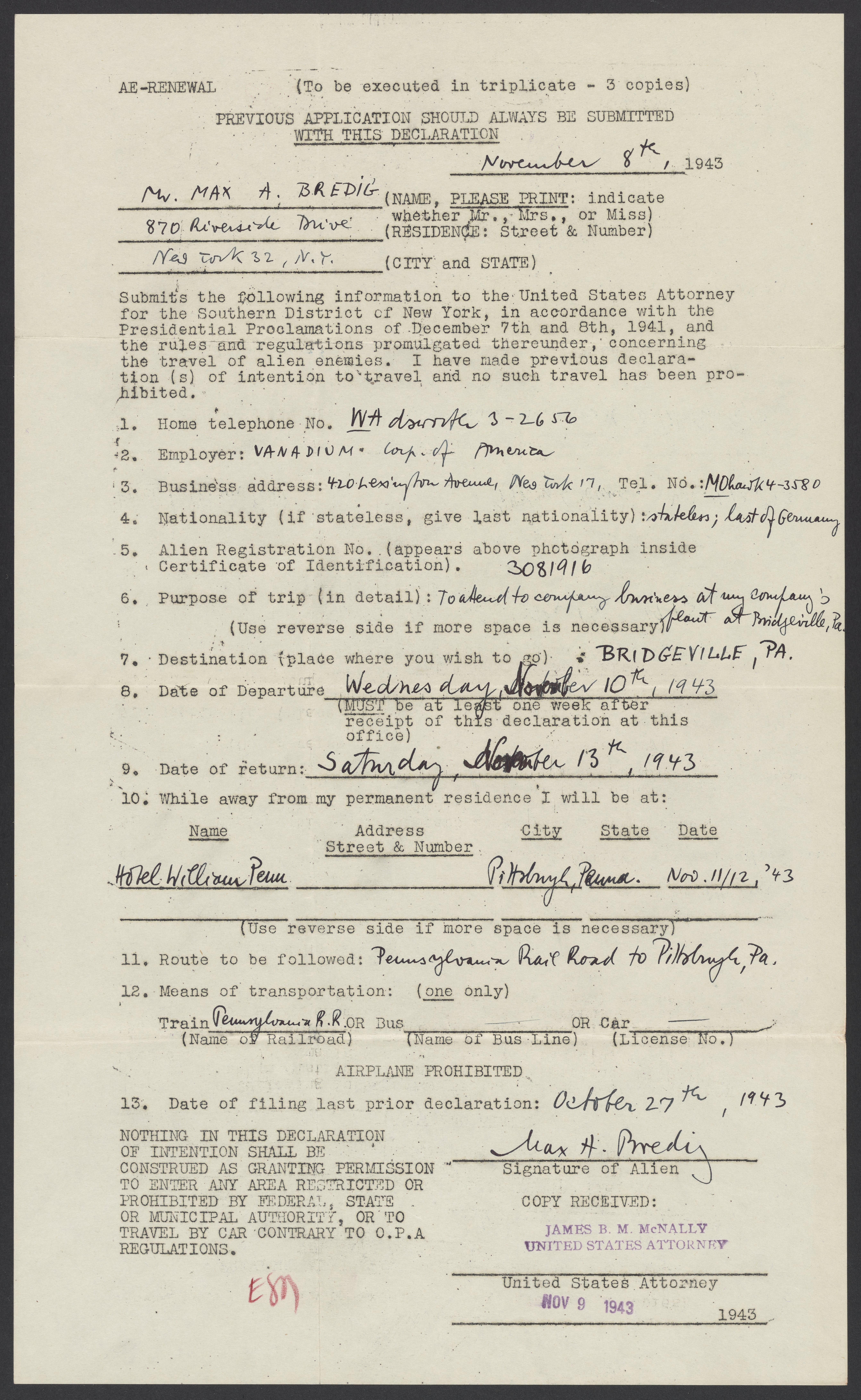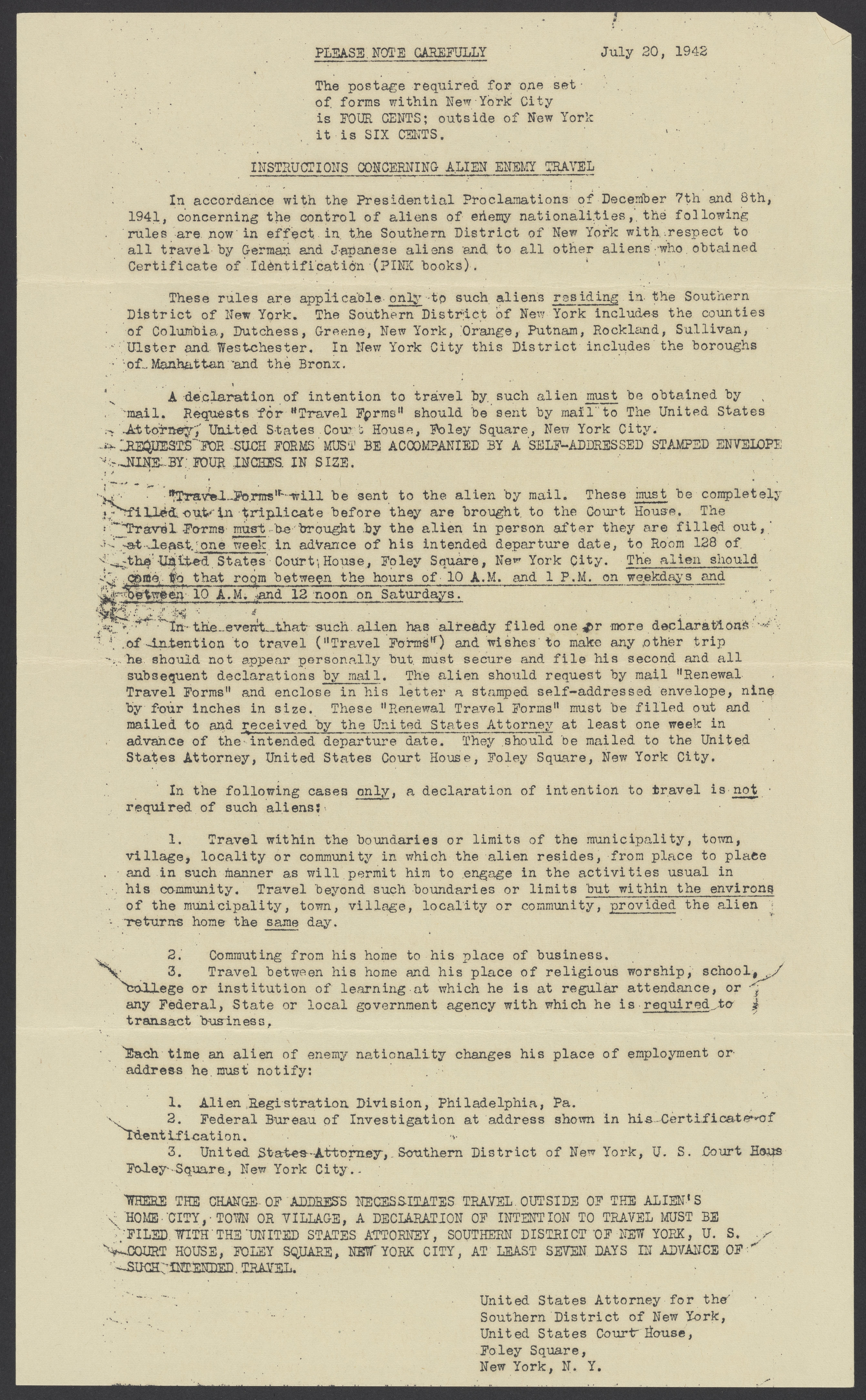 Instructions Concerning Alien Enemy Travel