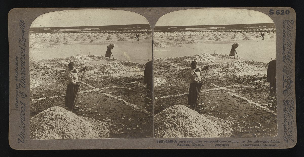 “A Reservoir after Evaporation – Turning up the Salt – Salt Fields, Solinen, Russia.” Underwood & Underwood, n.d. Underwood & Underwood Stereographs of Manufacturing Industries. Science History Institute. Philadelphia. https://digital.sciencehistory.org/works/nc580m649.