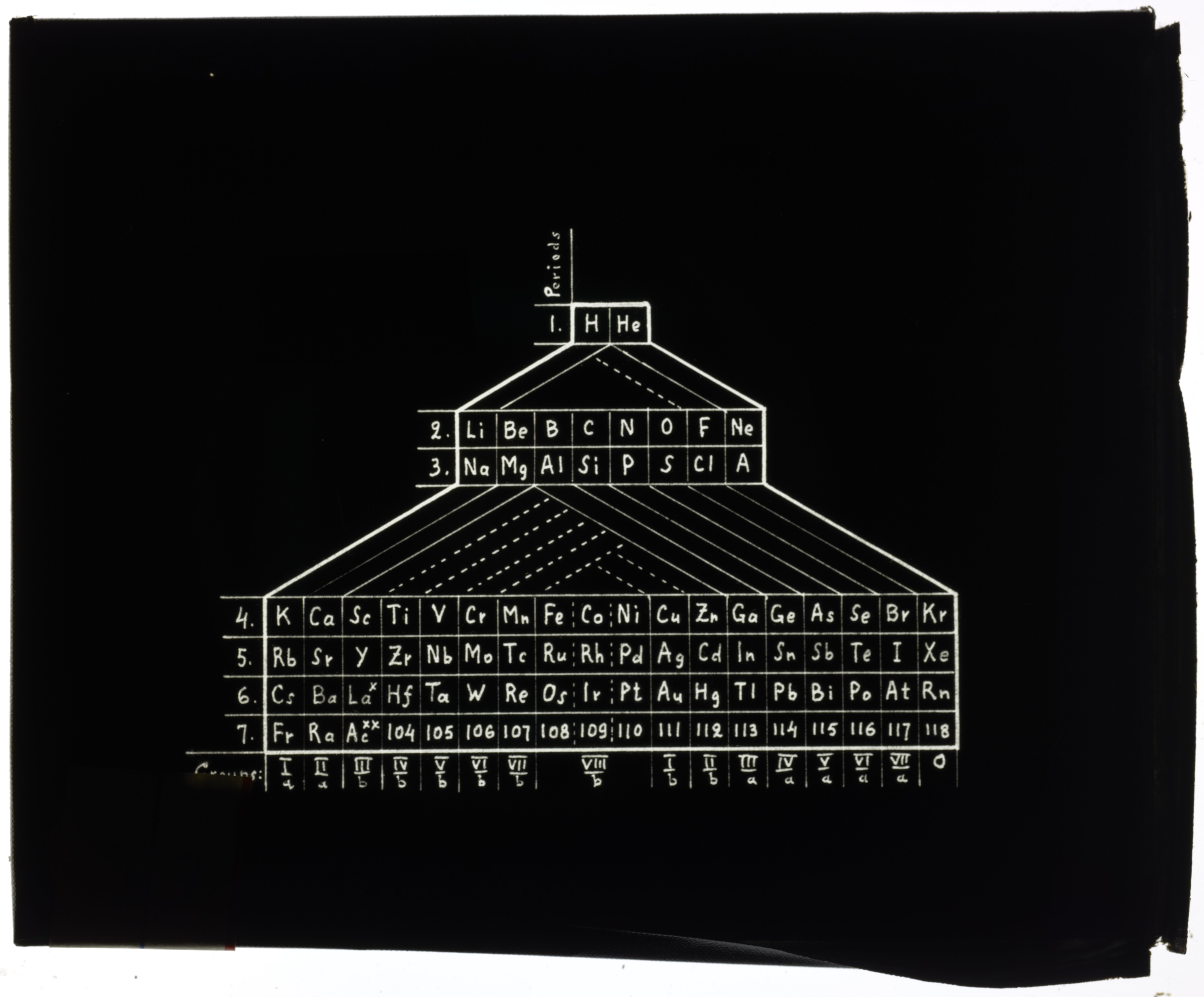 Periodic table in style of a zigzag (George Woodiwiss, 1906)1906 (Original design), Circa 1957 (Date attributed to slide)