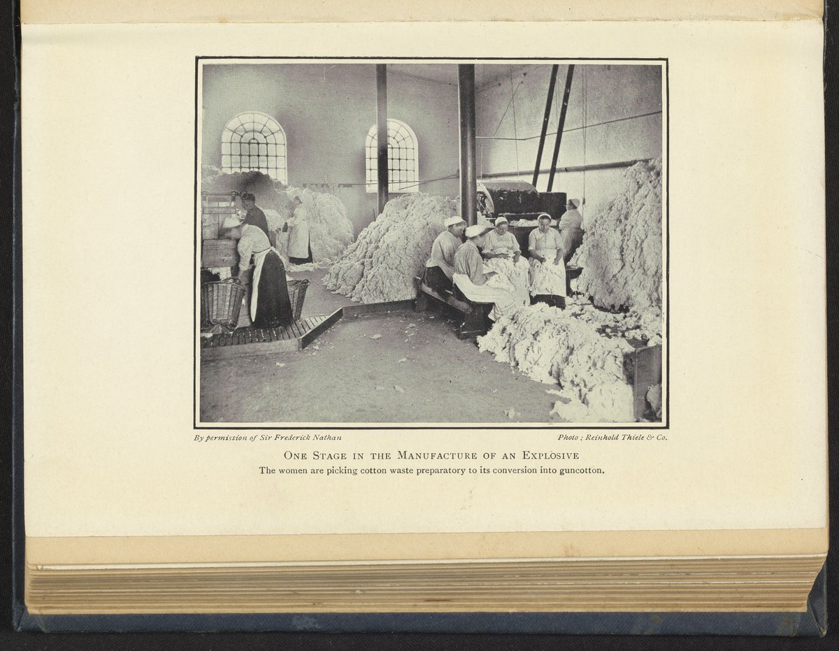Nathan, Frederick, and Reinhold Thiele & Company. “Women Picking Cotton Waste for Use in Explosive Manufacturing.” The Romance of Modern Chemistry. London, England, 1909. https://digital.sciencehistory.org/works/nc580n71x.